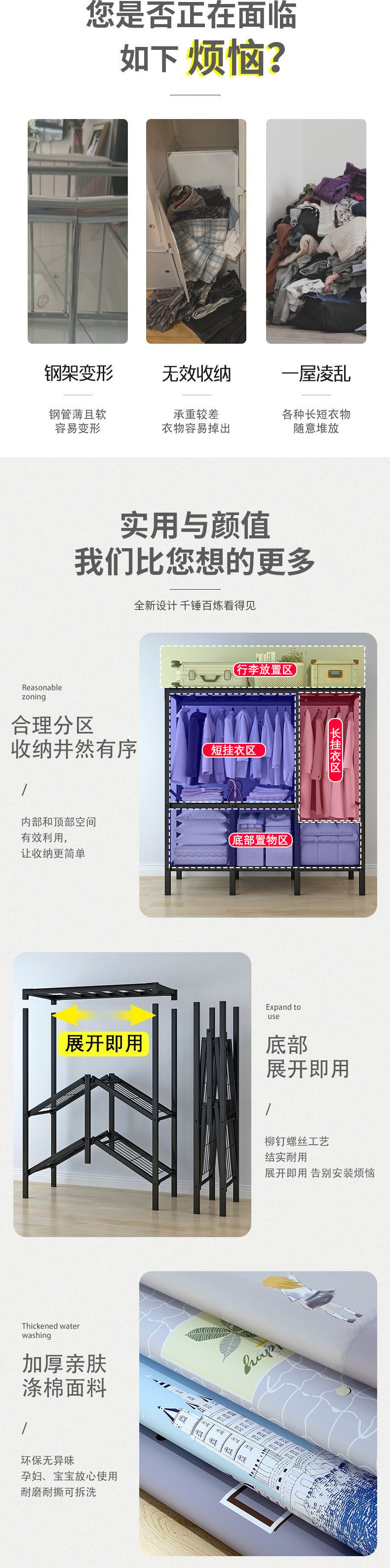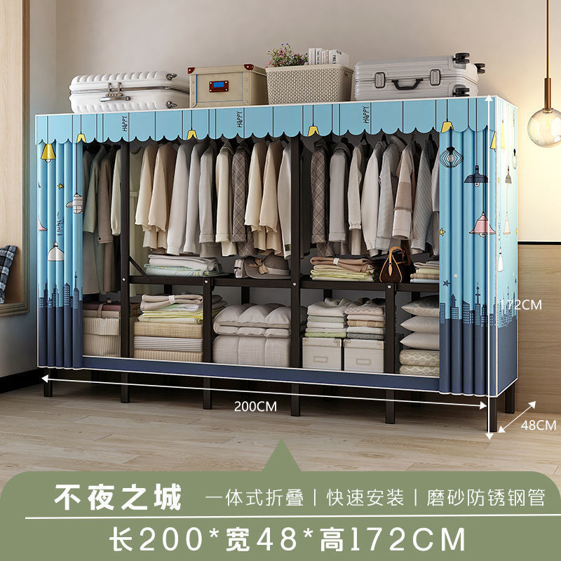 가정용 천 옷장 2022 간단한 옷장 설치가 필요없는 접이식 전체 강철 프레임 강한 두꺼운 간단한 옷장