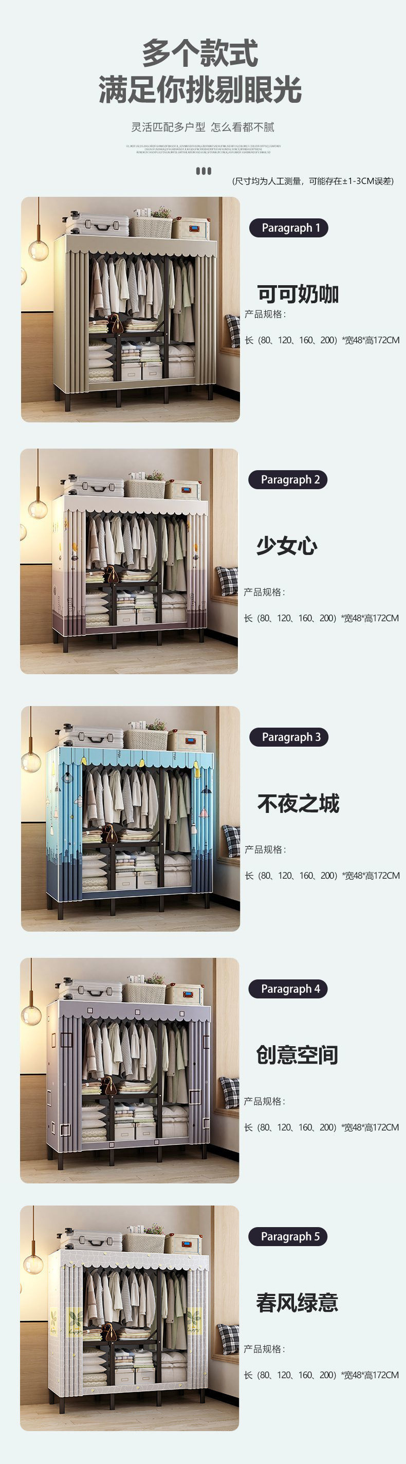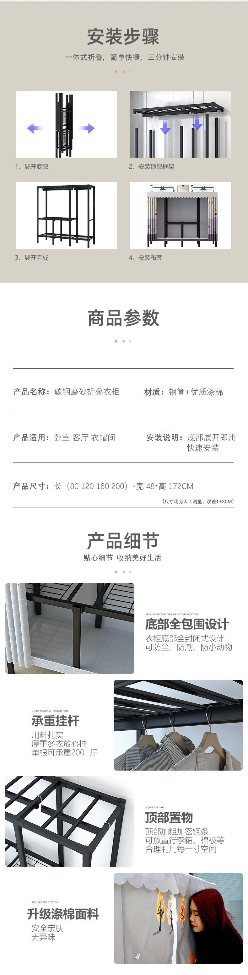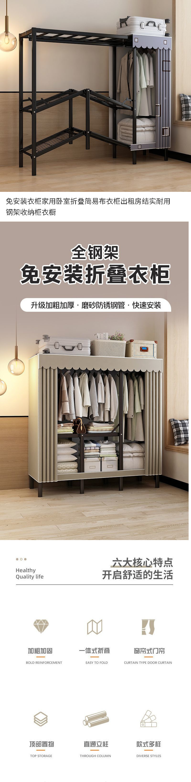 가정용 천 옷장 2022 간단한 옷장 설치가 필요없는 접이식 전체 강철 프레임 강한 두꺼운 간단한 옷장스토어 가기