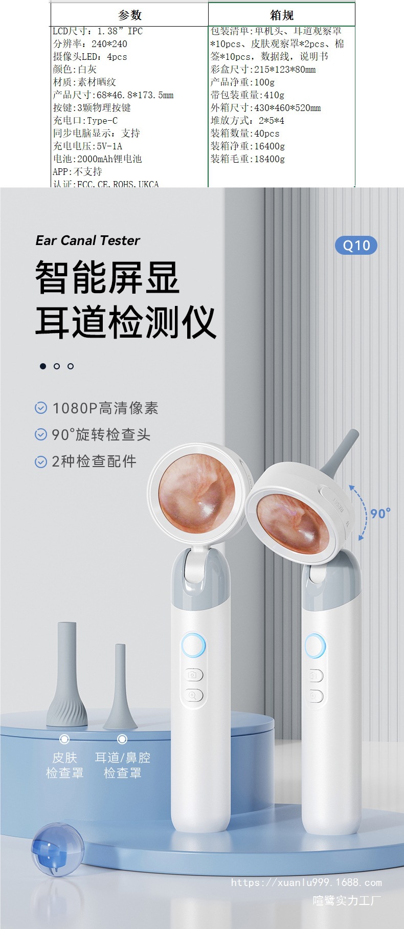 국경 간 고화질 외이도 내시경 개인 관리 지능형 스크린 디스플레이 외이도 감지 귀 기기 검사 도구스토어 가기