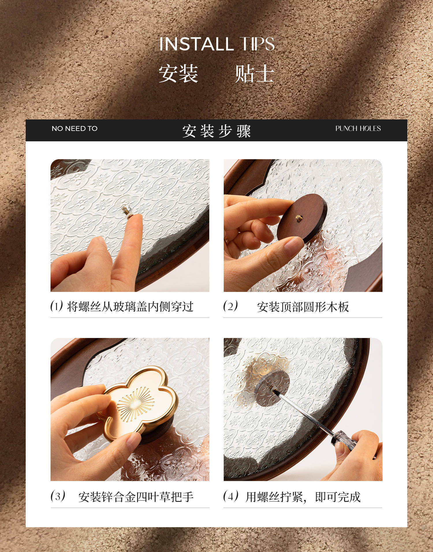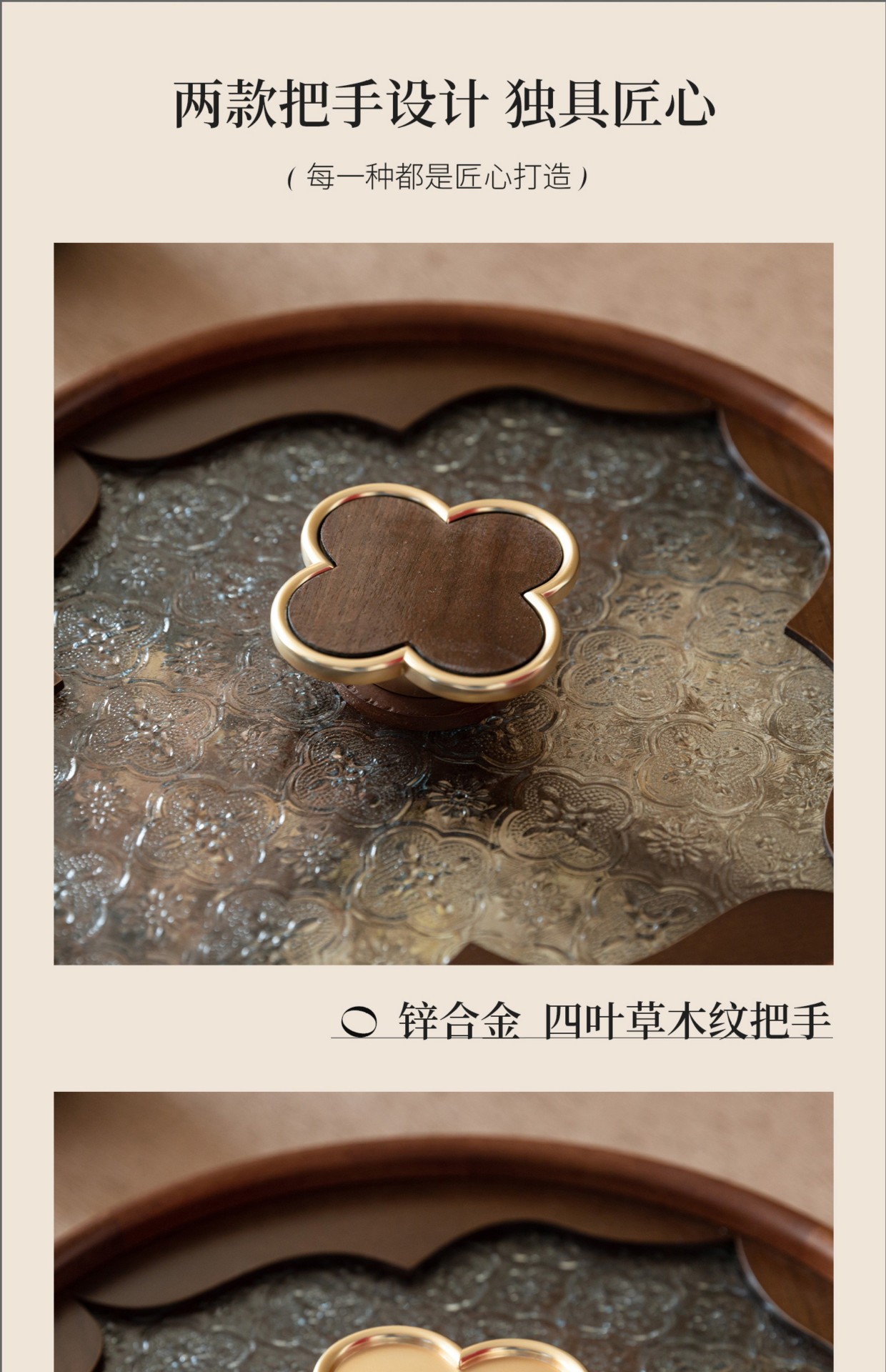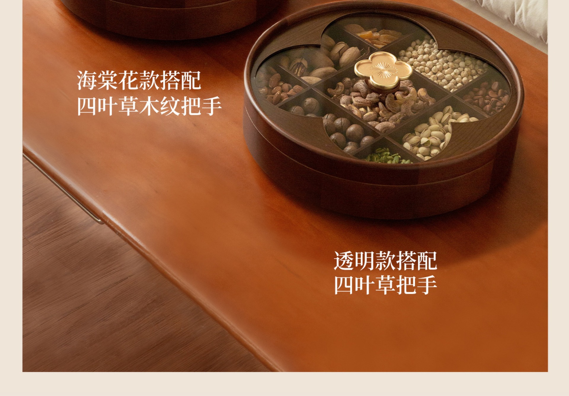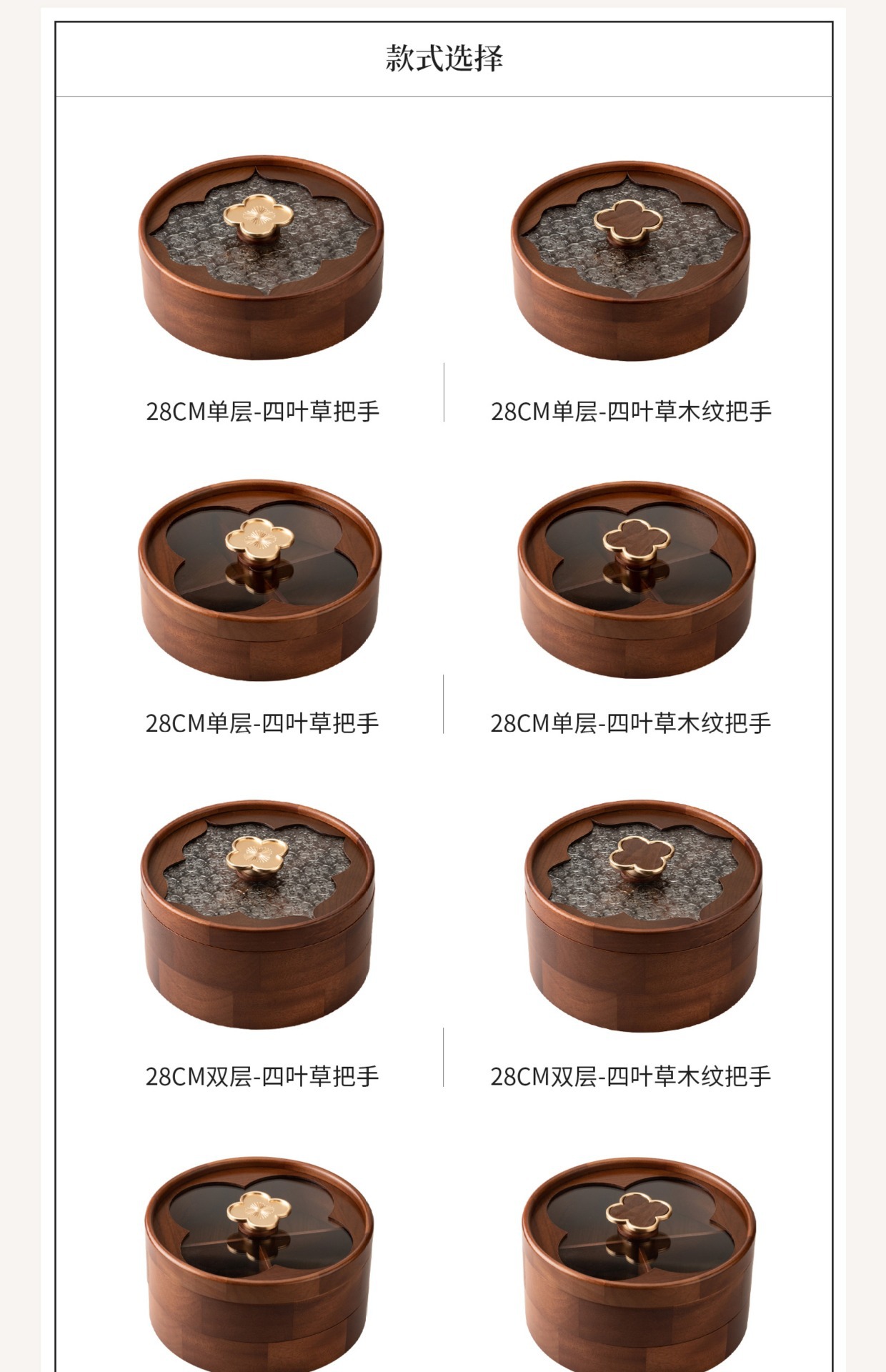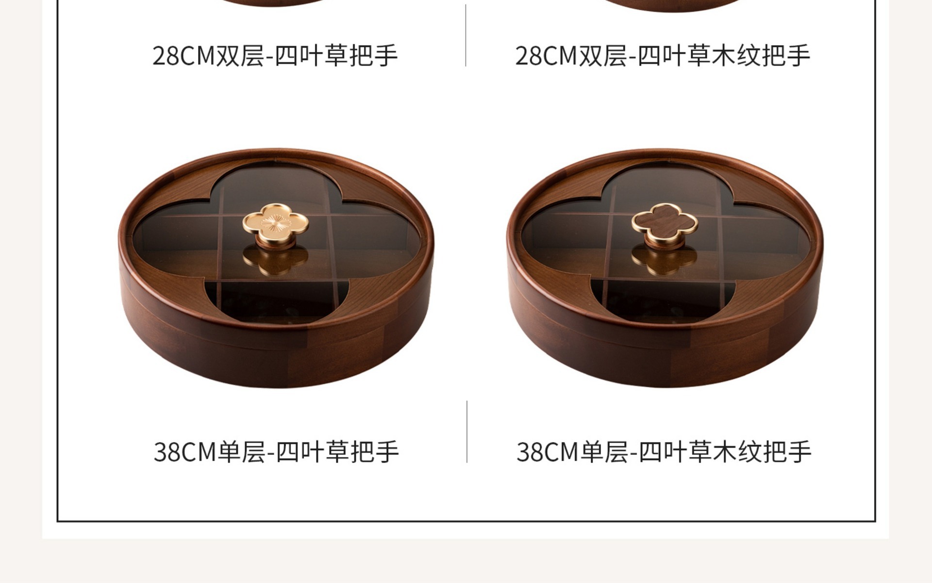 • 이중 원형 투명 과일 접시 - 네잎 클로버 손잡이 - 28cm