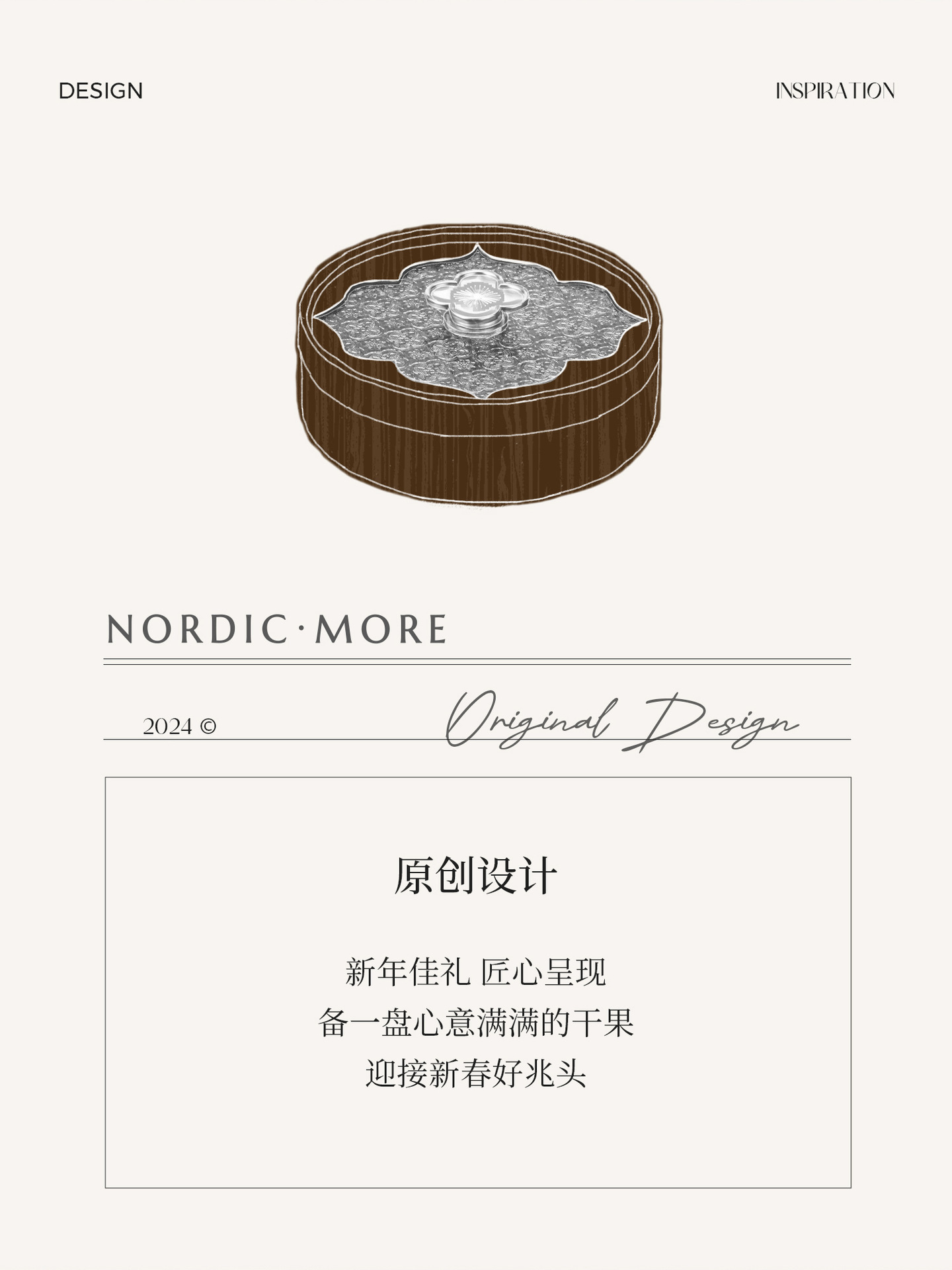 • 단층 원형 베고니아 꽃과 과일 접시 - 나뭇결 손잡이 - 28cm