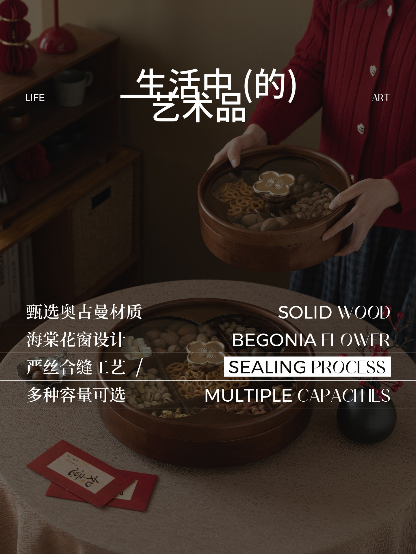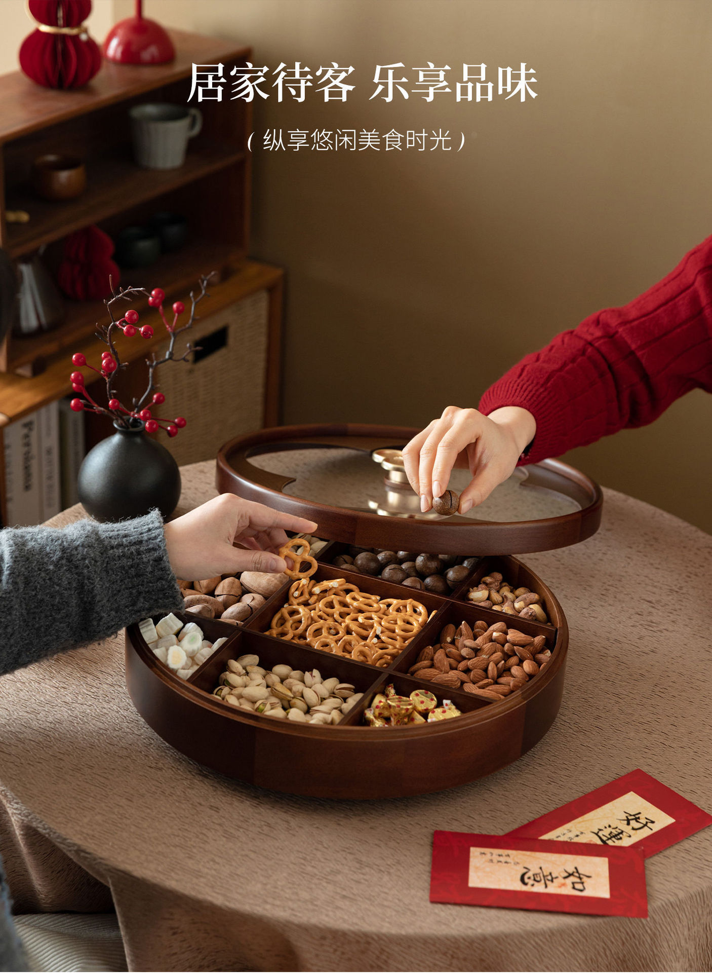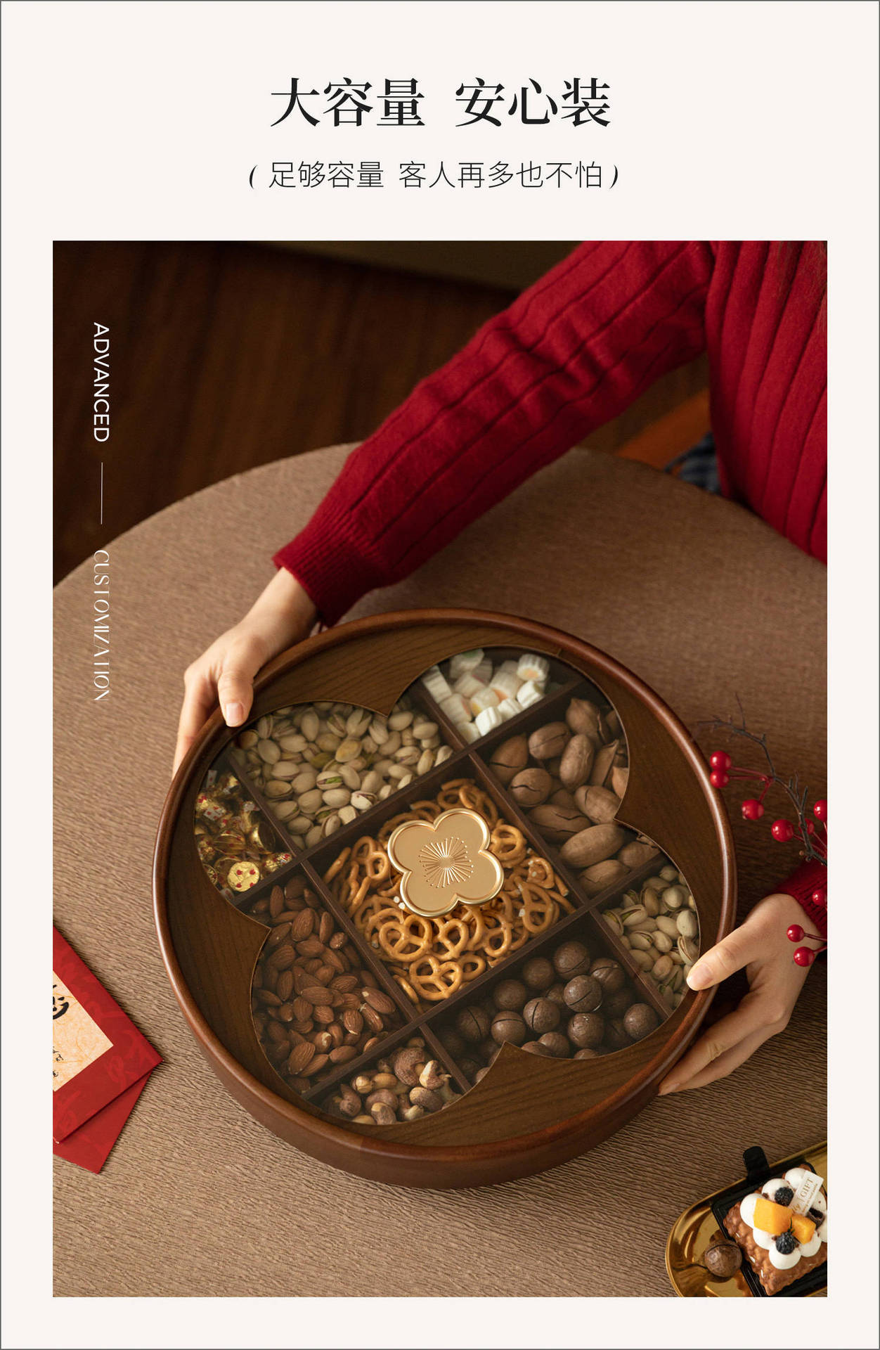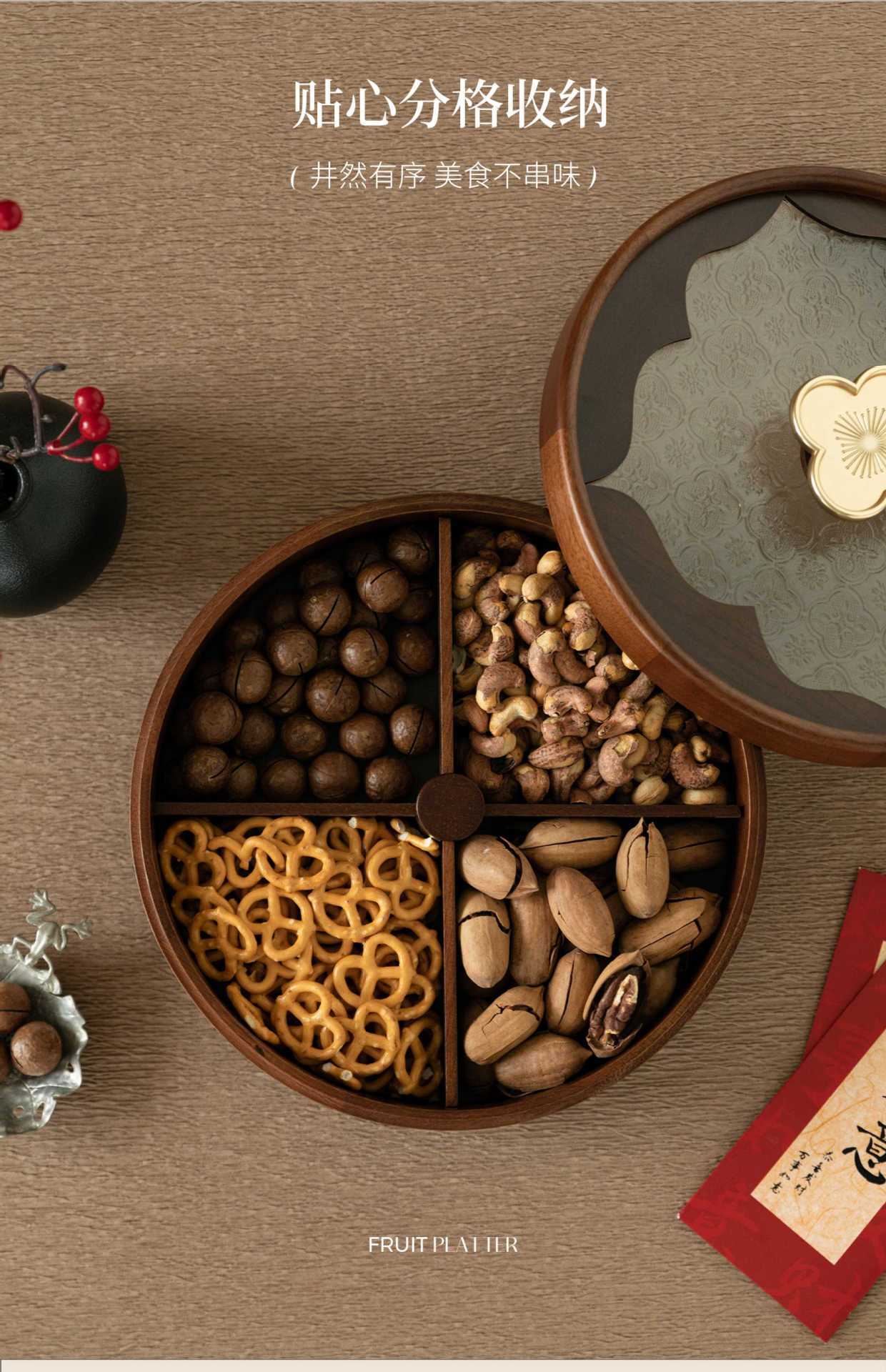 단단한 나무 사각형 격자 말린 과일 접시 거실 홈 커피 테이블 집들이 과일 접시 사탕 스낵 보관 상자스토어 가기