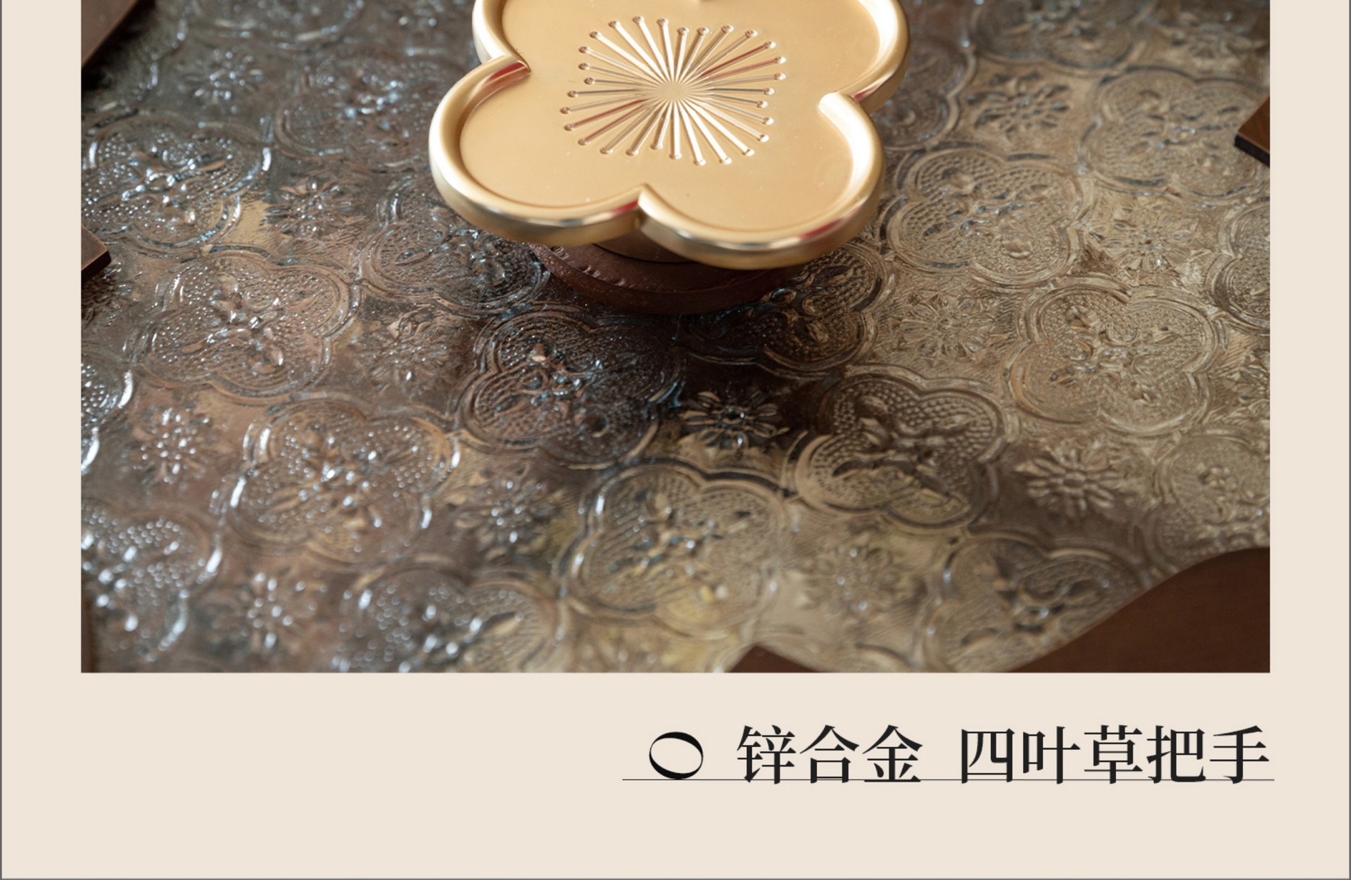• 단층 원형 투명 과일 접시 - 네잎 클로버 손잡이 - 38cm