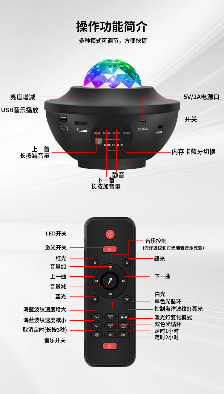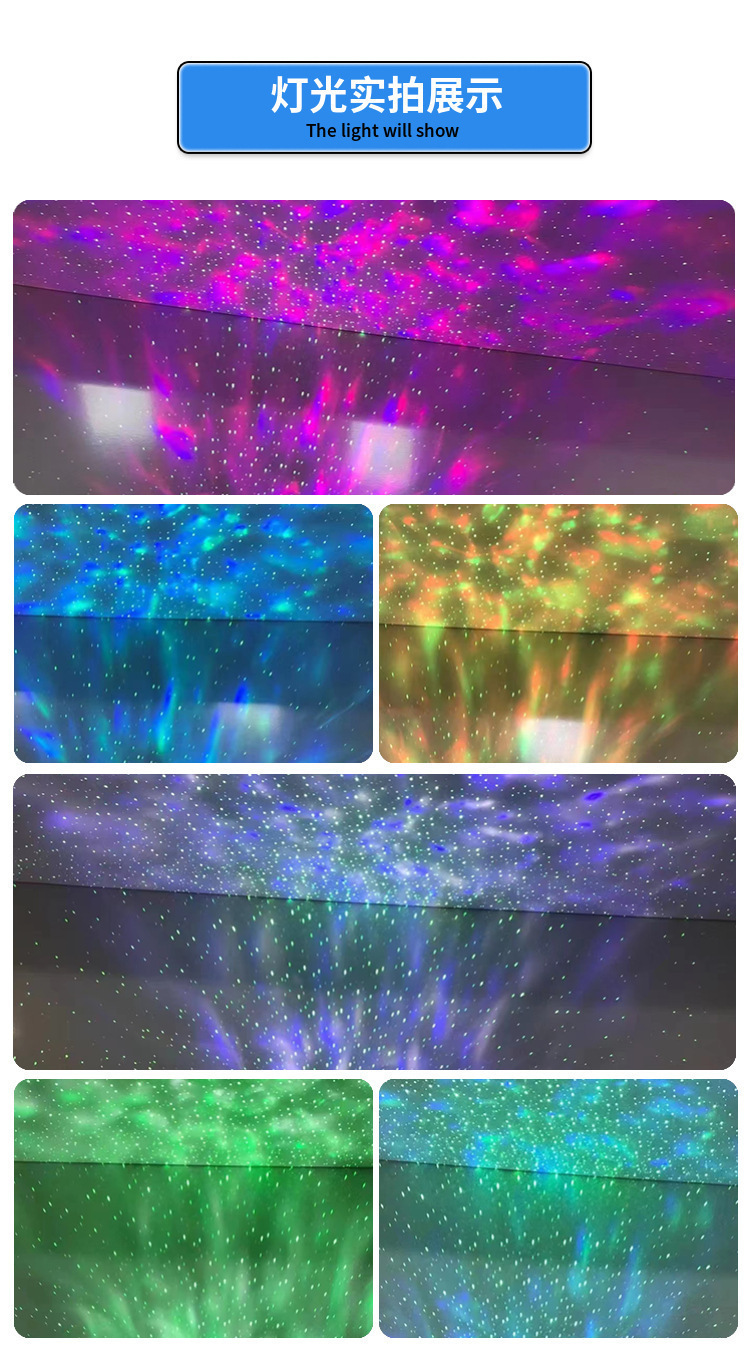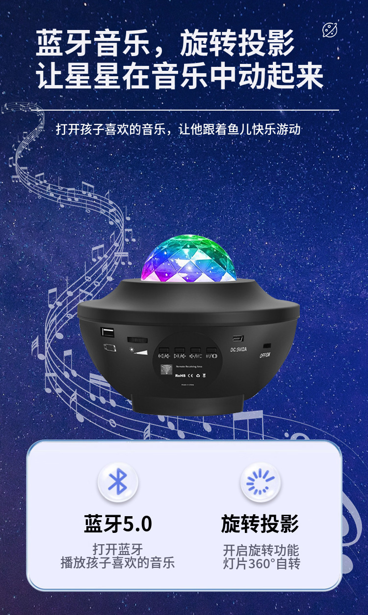 국경 간 대형 별이 빛나는 하늘 램프 USB 블루투스 음악 프로젝션 램프 물 리플 회전 분위기 램프 침실 야간 조명
