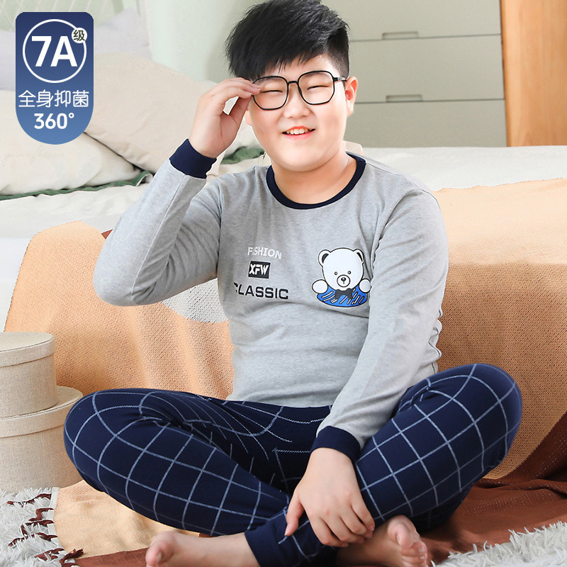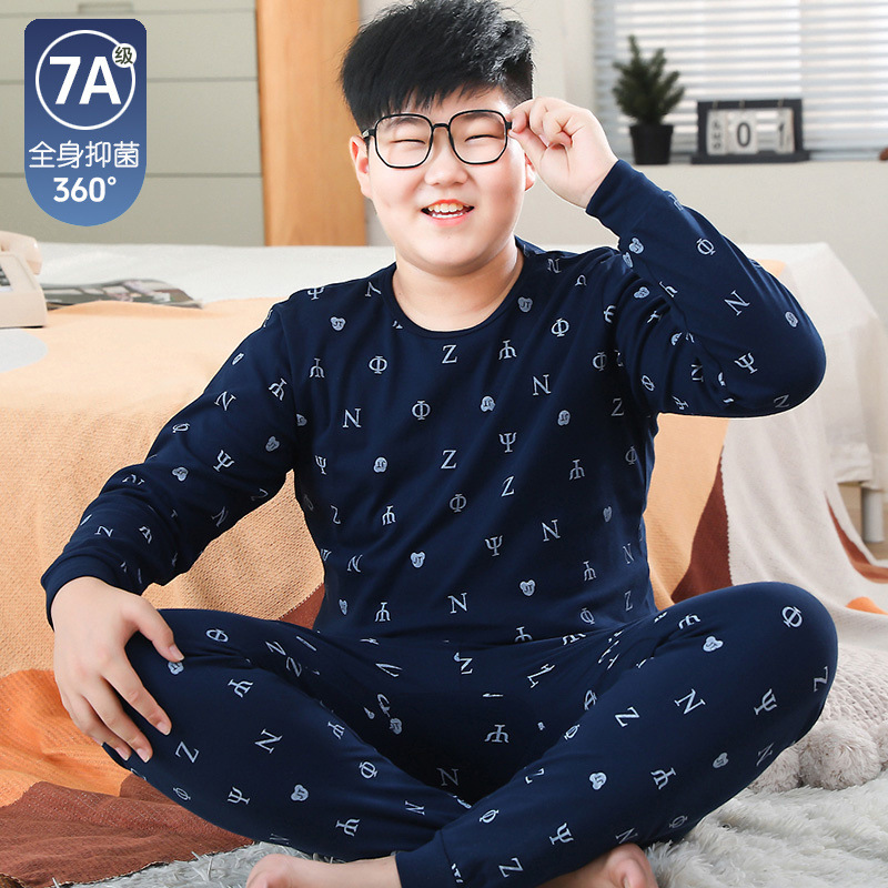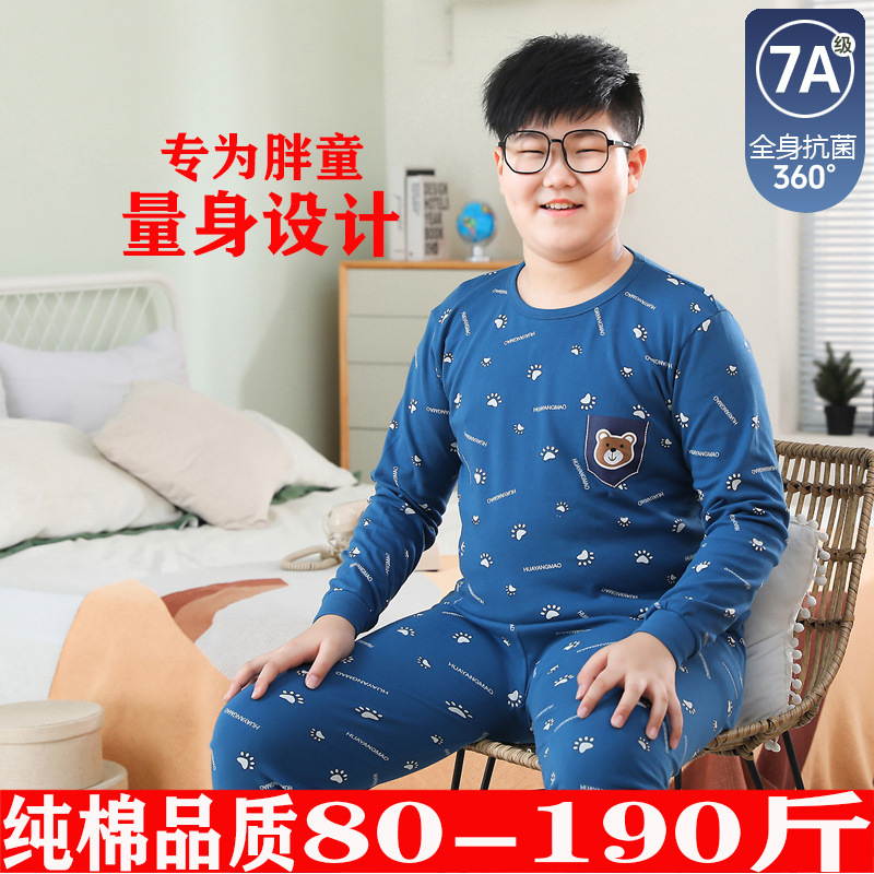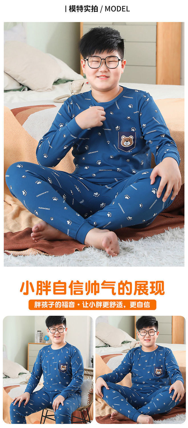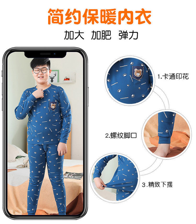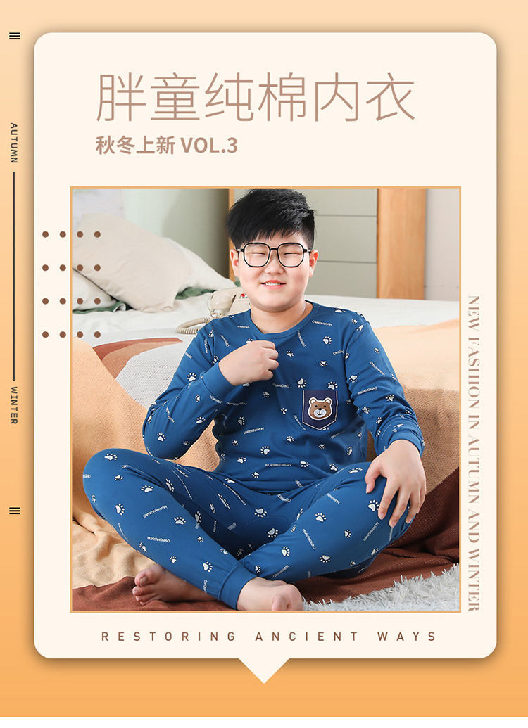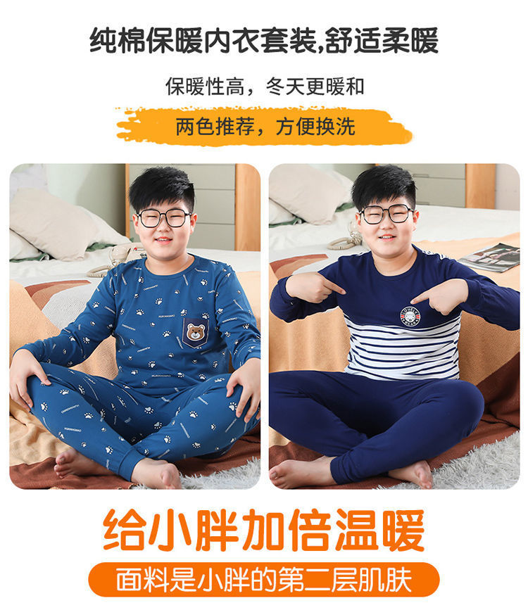 뚱뚱한 어린이 가을 옷과 긴 내복 세트 어린이 기본 순면 플러스 뚱뚱한 가을 겨울 소년 잠옷 및 가정복스토어 가기