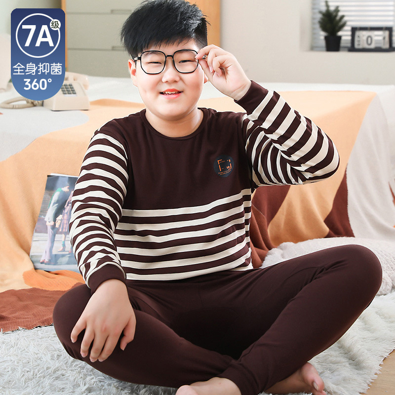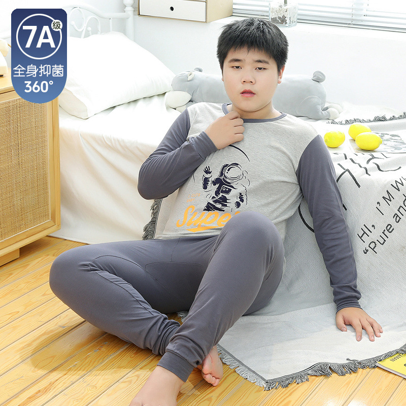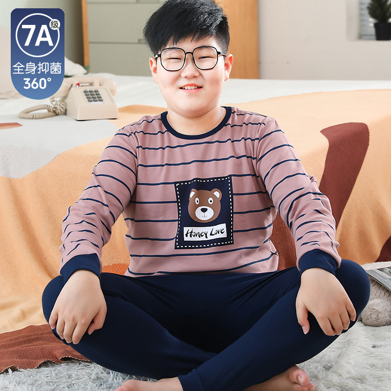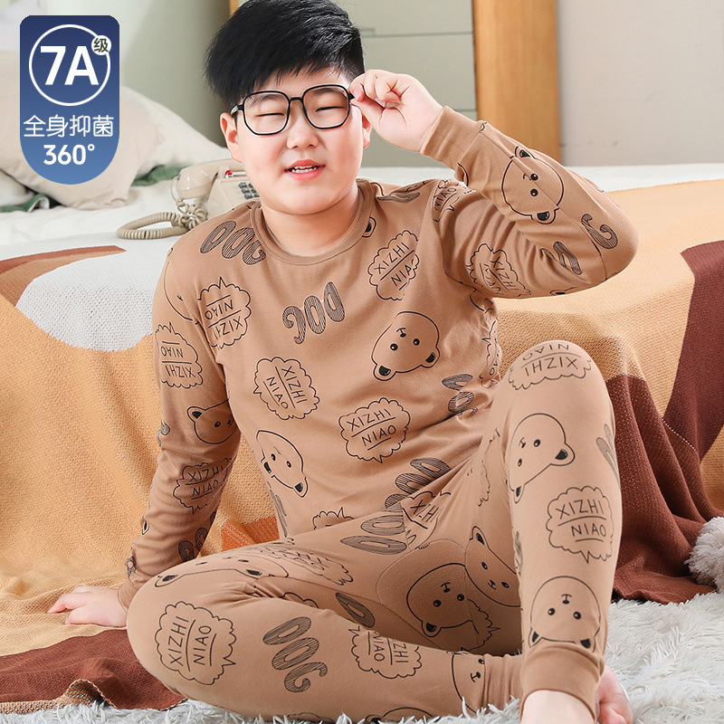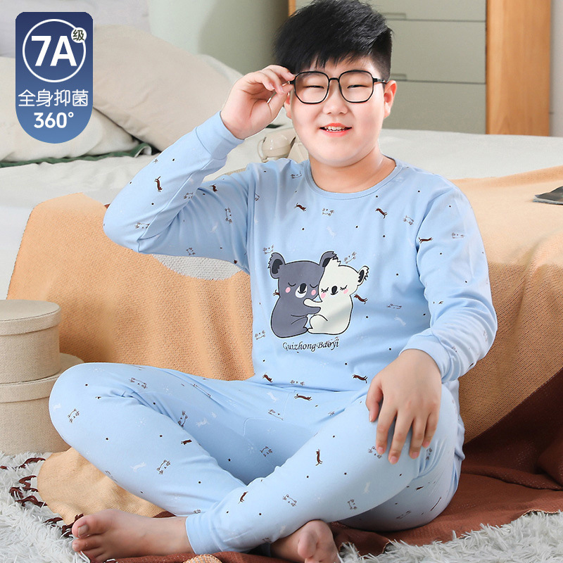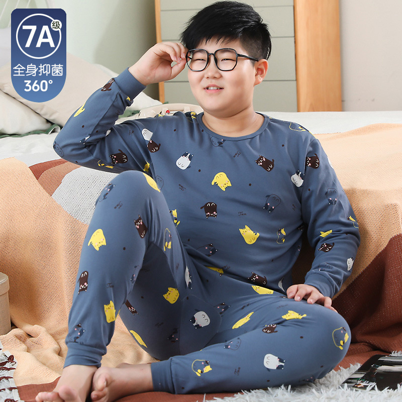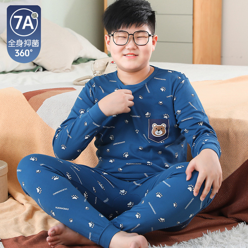 뚱뚱한 어린이 가을 옷과 긴 내복 세트 어린이 기본 순면 플러스 뚱뚱한 가을 겨울 소년 잠옷 및 가정복스토어 가기