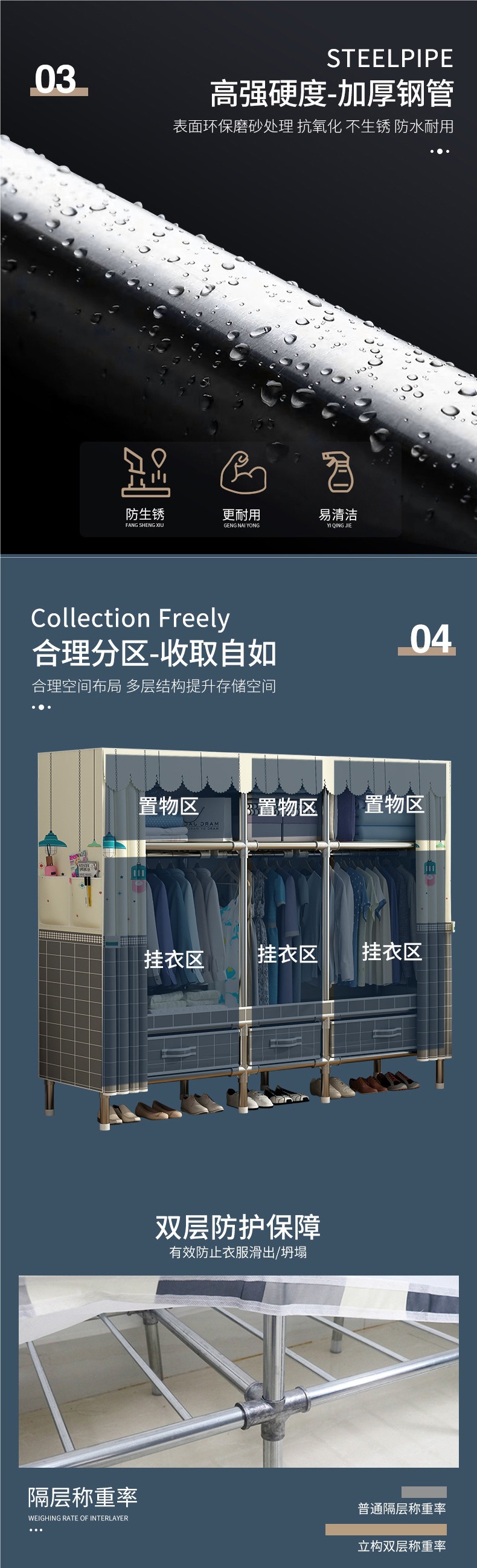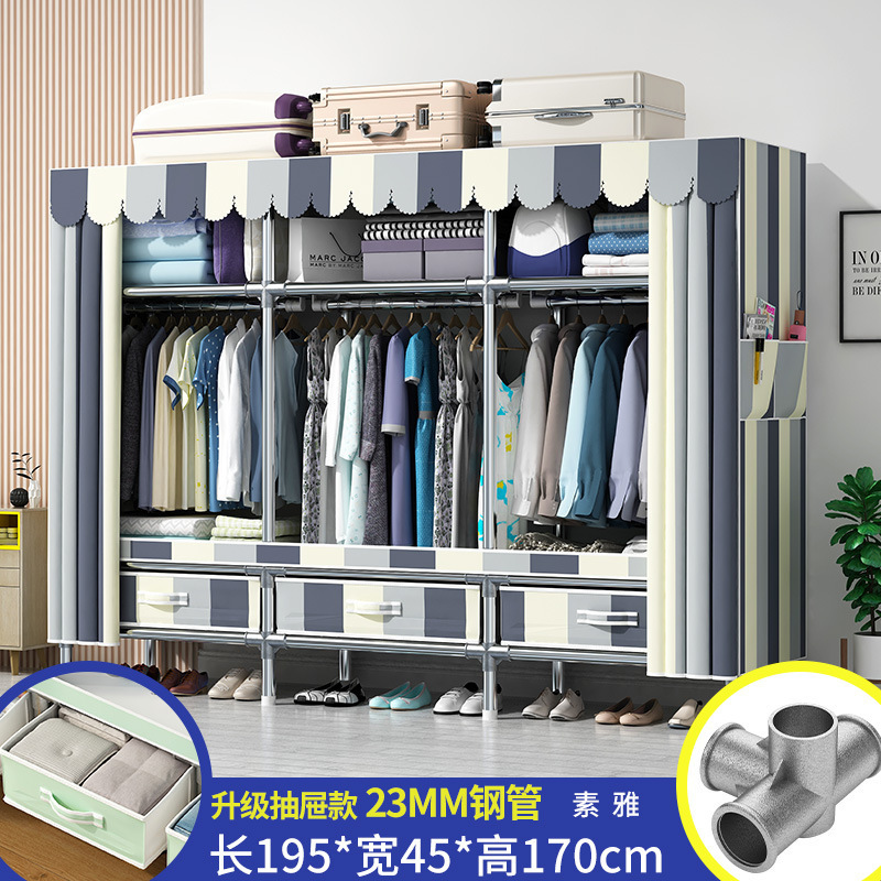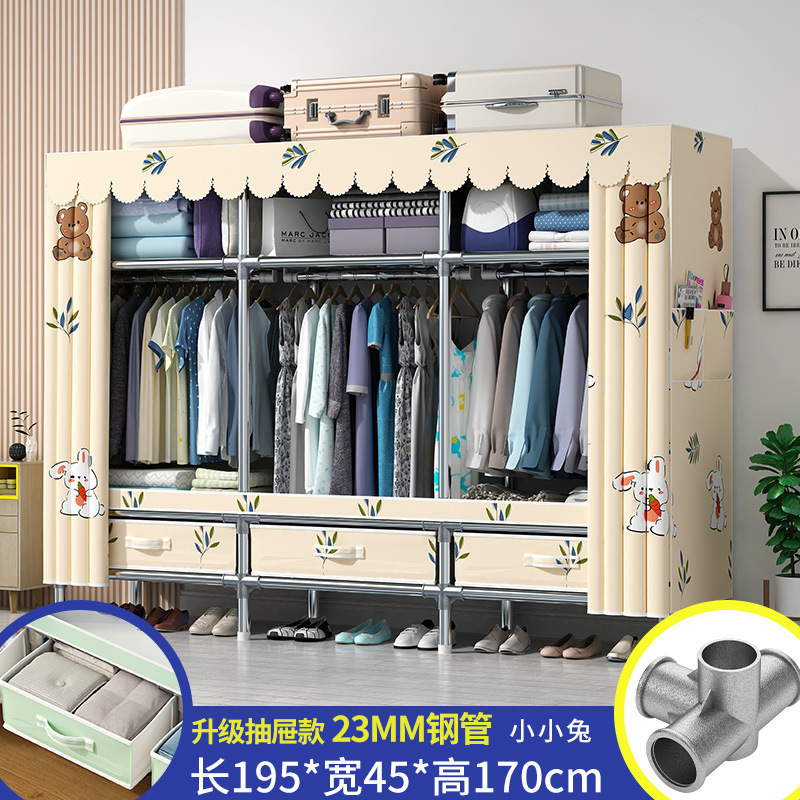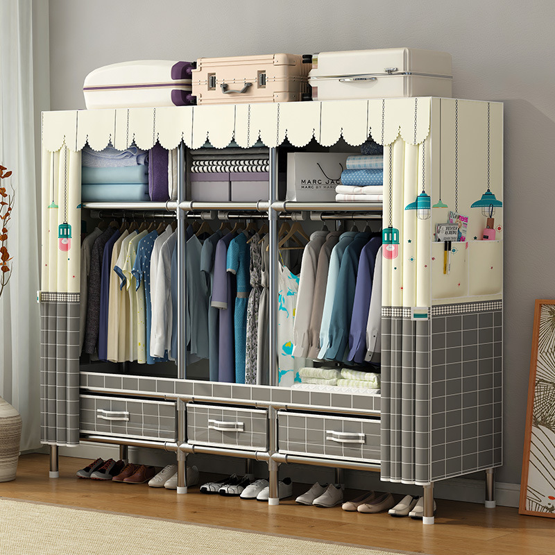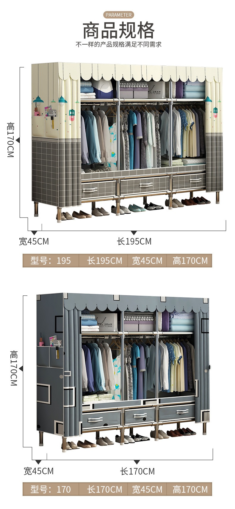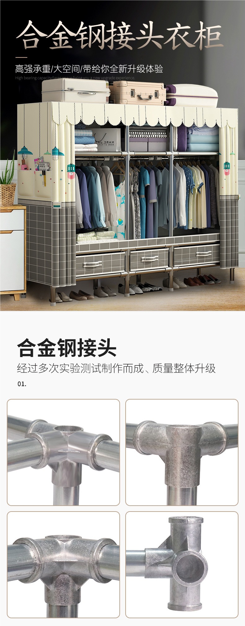 가정용 침실용 간단한 옷장, 임대용 천 옷장, 튼튼하고 내구성이 뛰어난 조립식 전체 강철 프레임, 두껍고 두꺼운 옷장스토어 가기