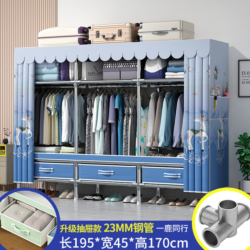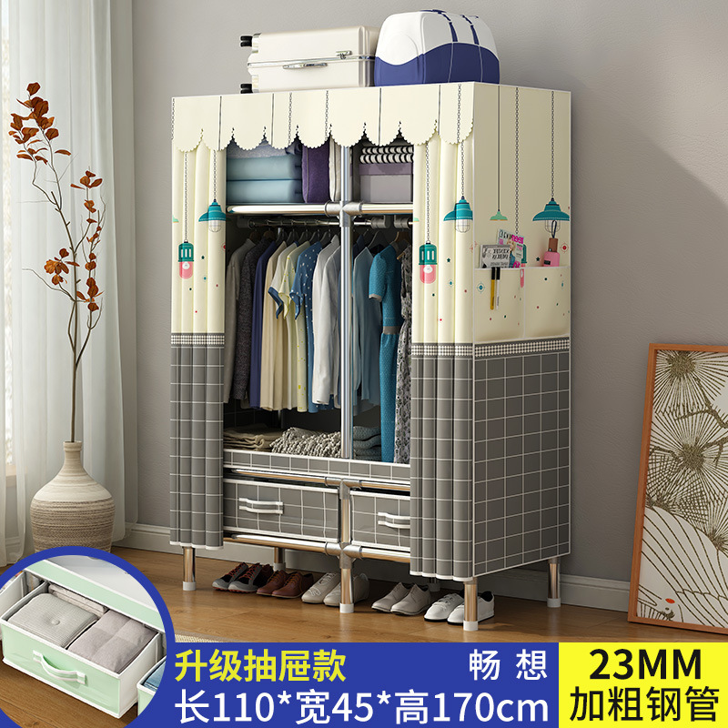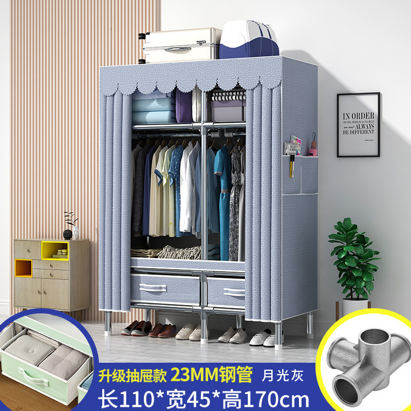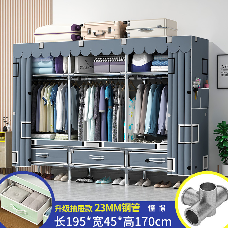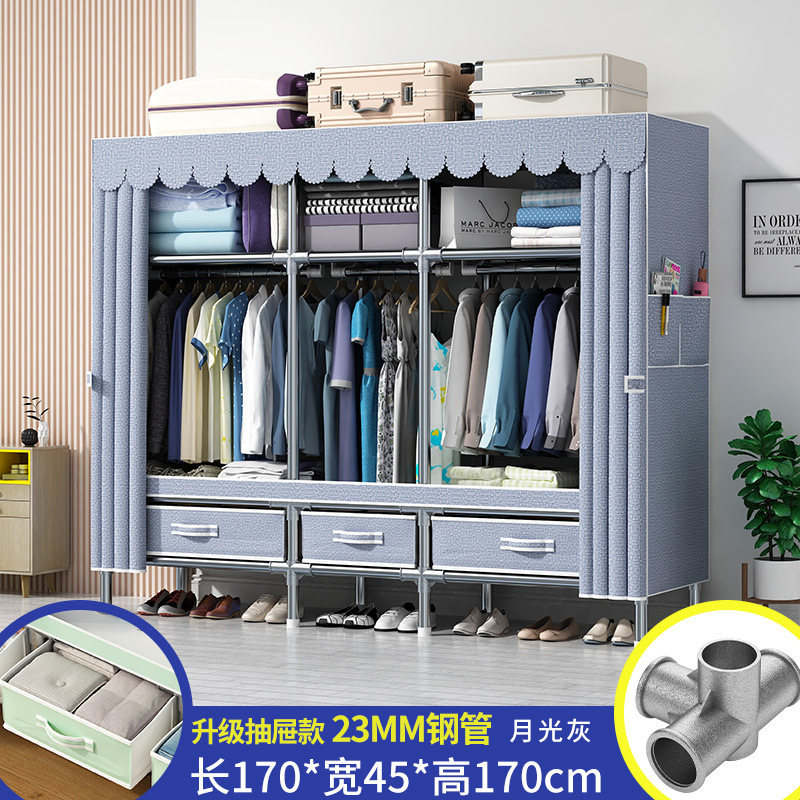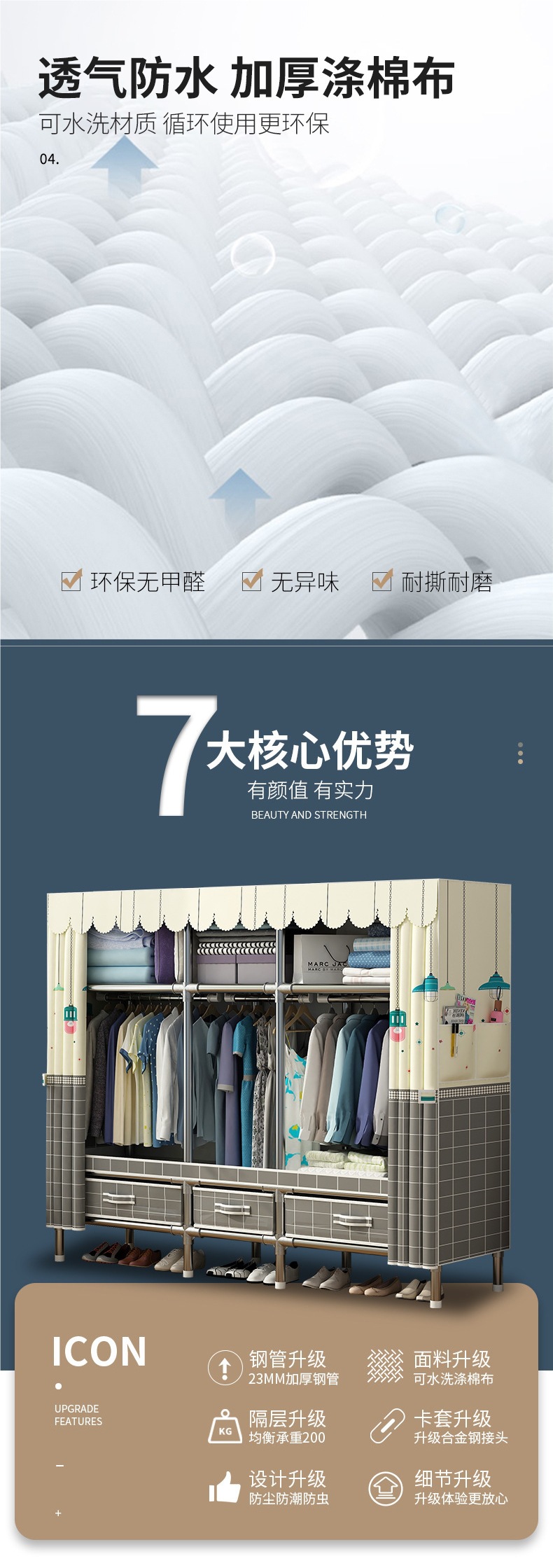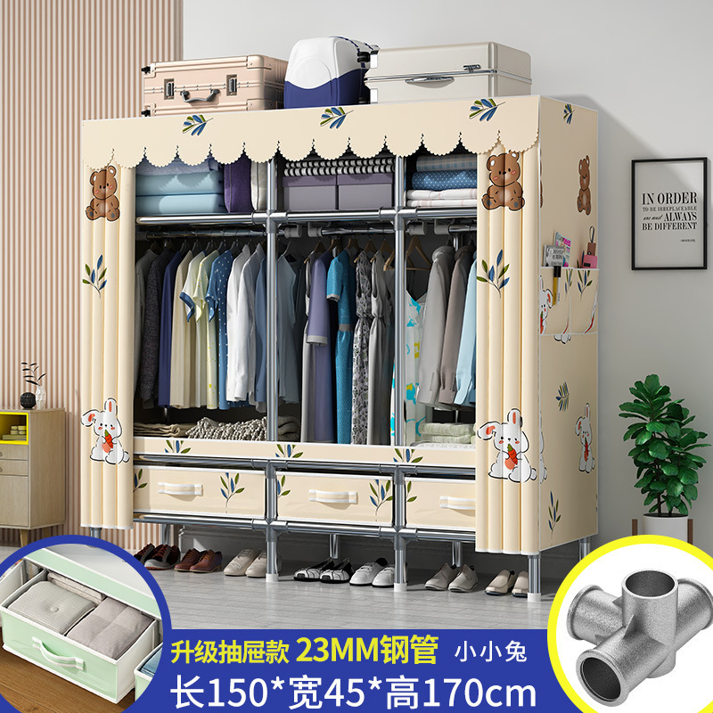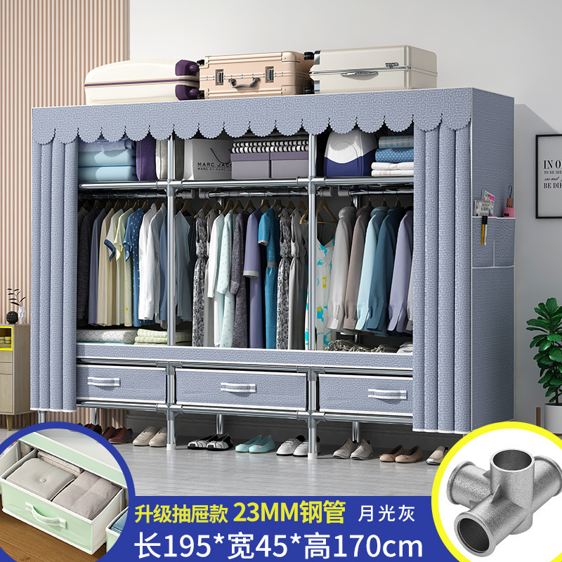 가정용 침실용 간단한 옷장, 임대용 천 옷장, 튼튼하고 내구성이 뛰어난 조립식 전체 강철 프레임, 두껍고 두꺼운 옷장스토어 가기