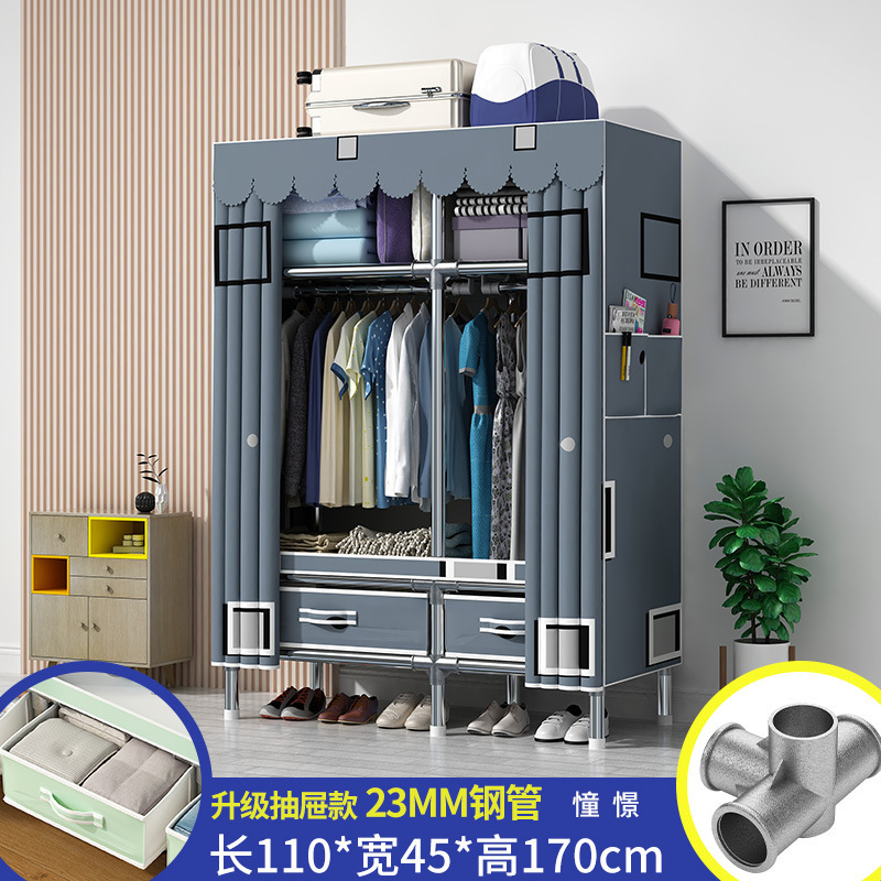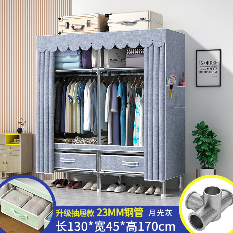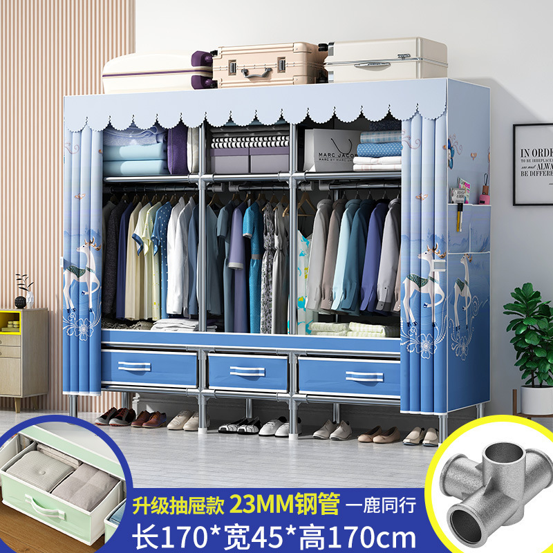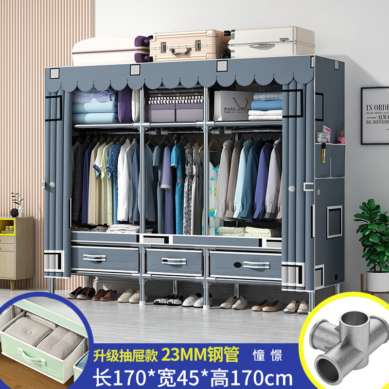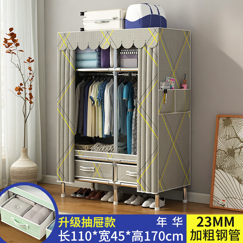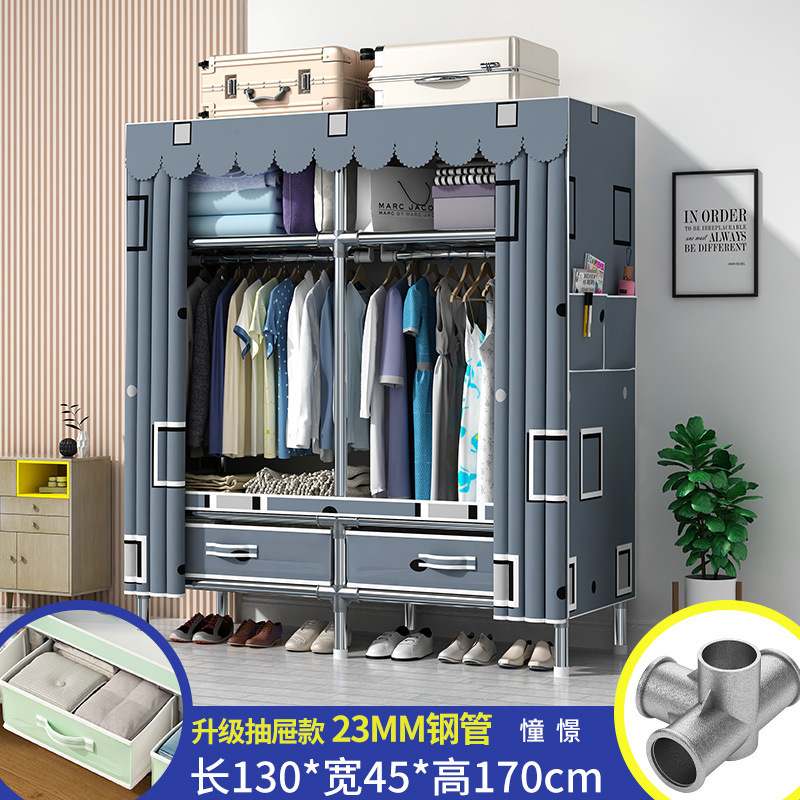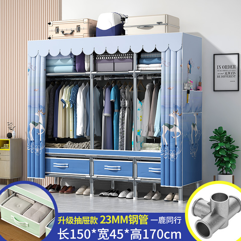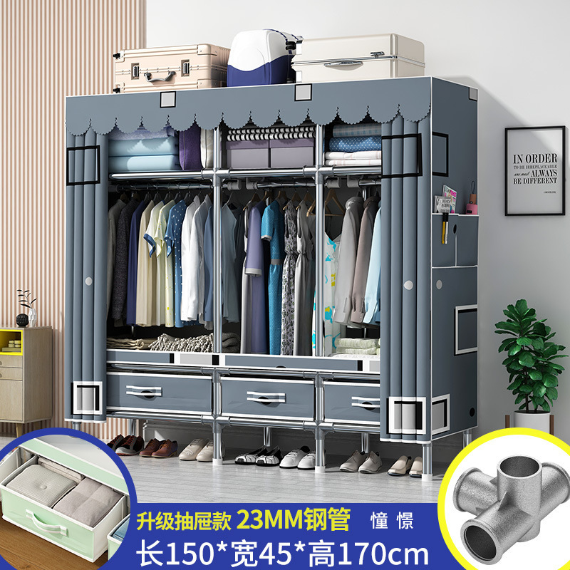 가정용 침실용 간단한 옷장, 임대용 천 옷장, 튼튼하고 내구성이 뛰어난 조립식 전체 강철 프레임, 두껍고 두꺼운 옷장스토어 가기