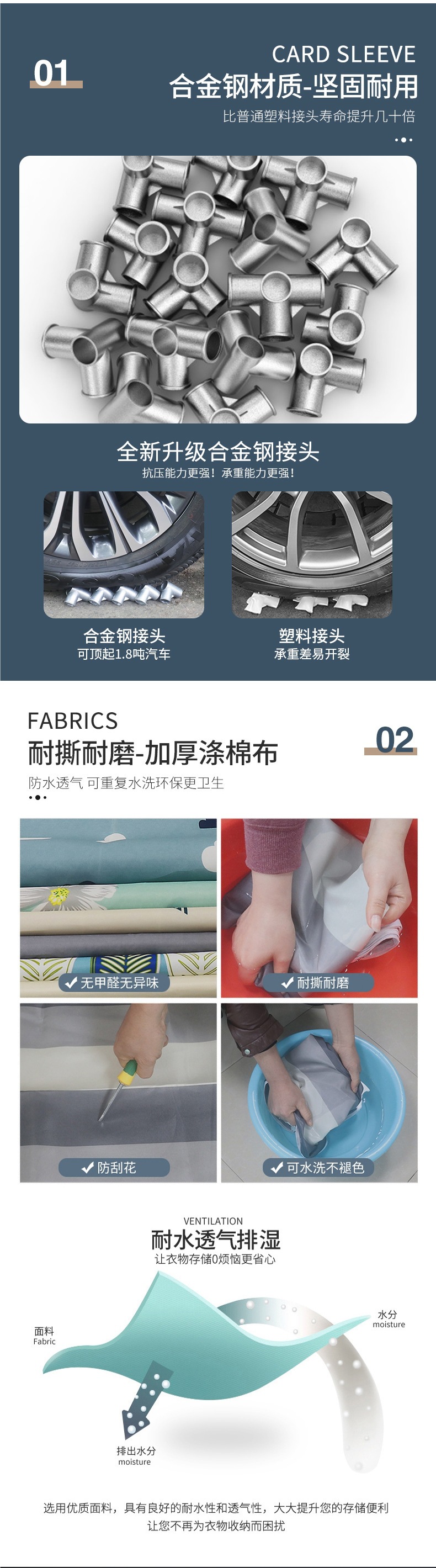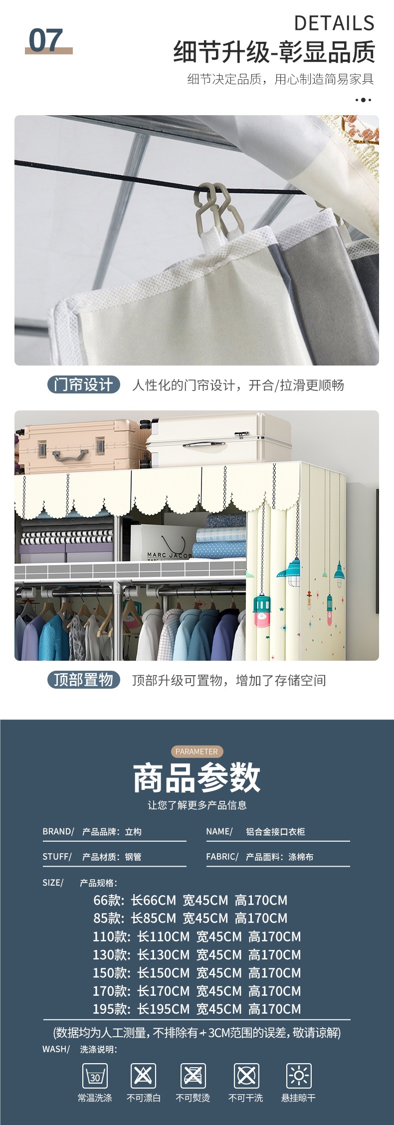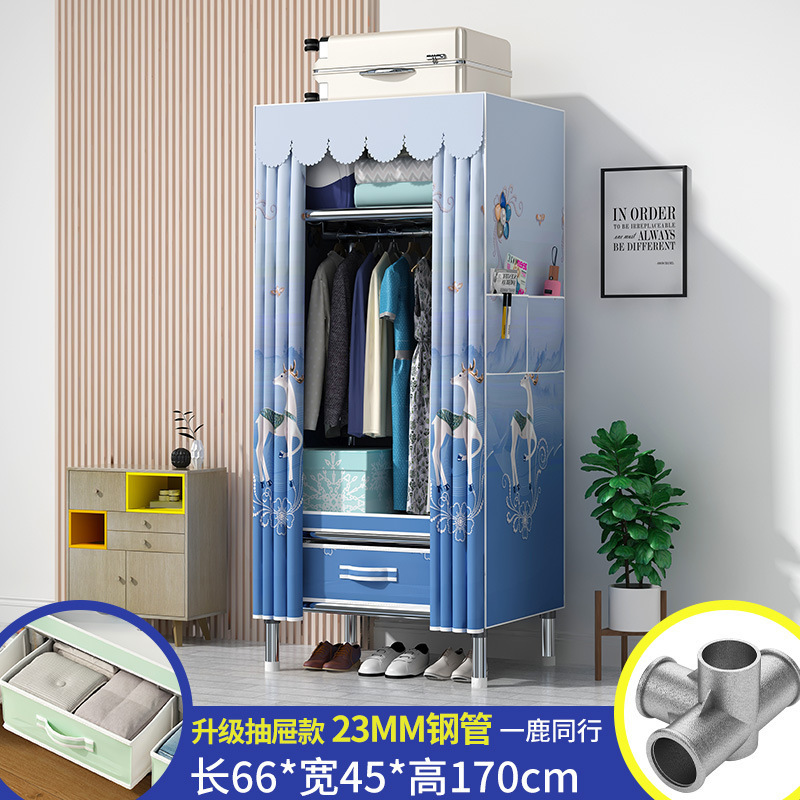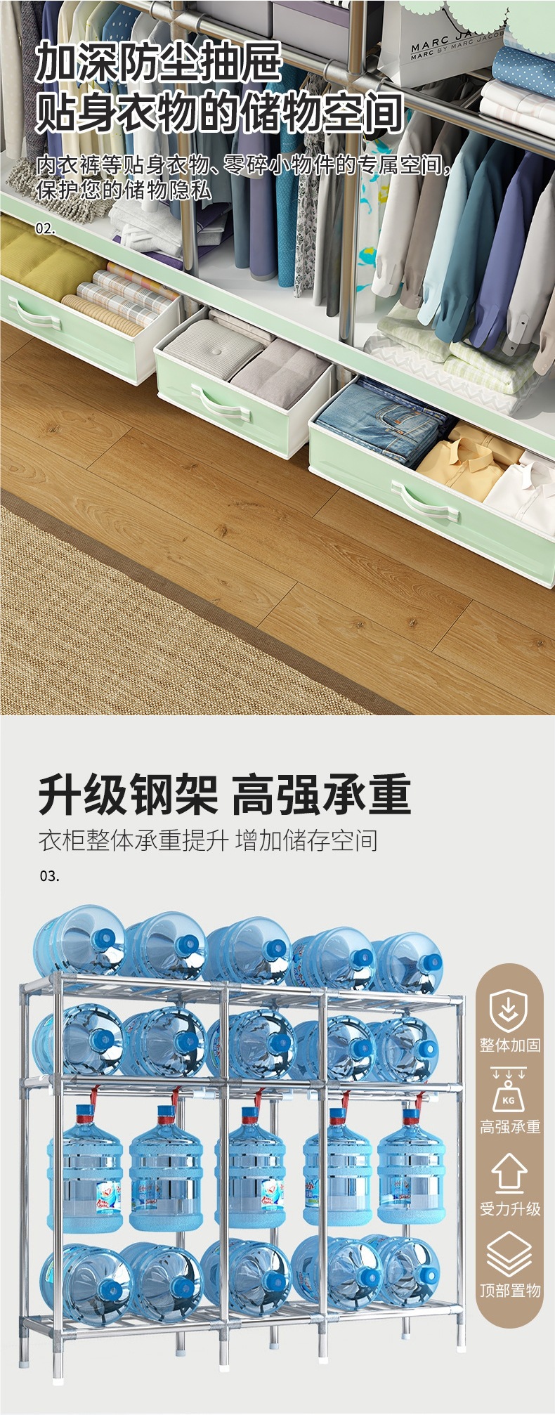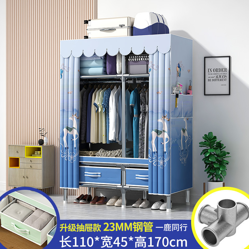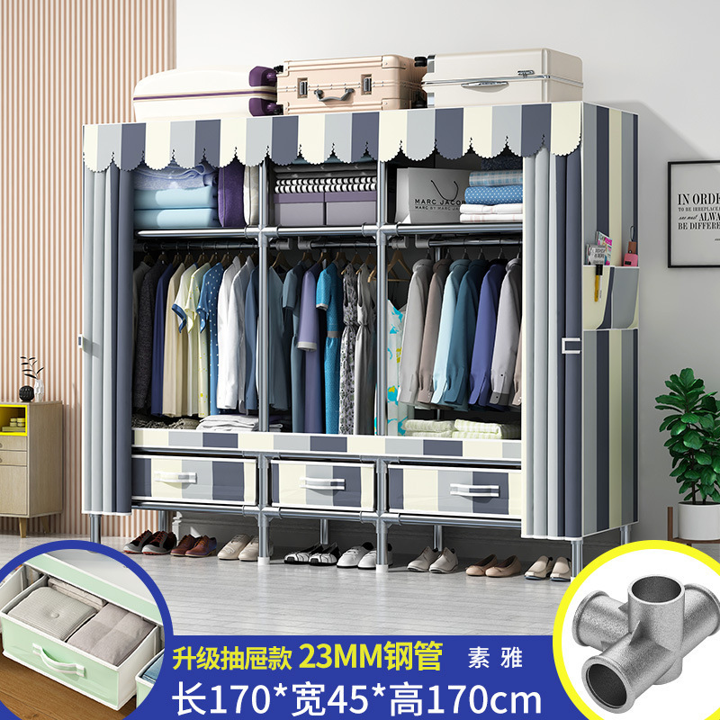 가정용 침실용 간단한 옷장, 임대용 천 옷장, 튼튼하고 내구성이 뛰어난 조립식 전체 강철 프레임, 두껍고 두꺼운 옷장스토어 가기