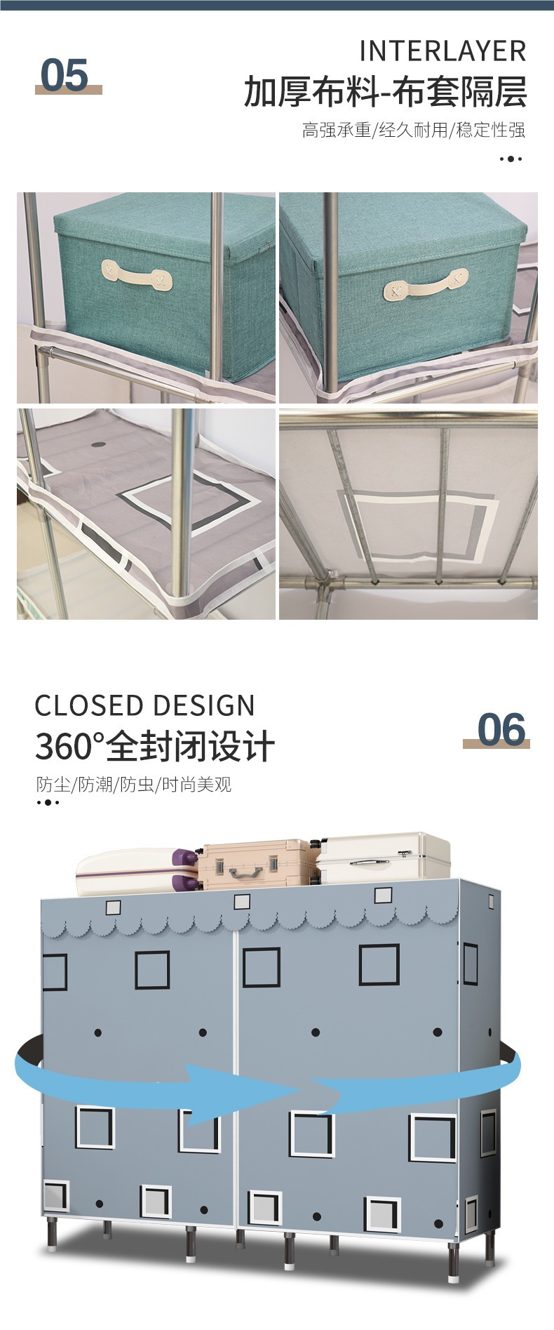 가정용 침실용 간단한 옷장, 임대용 천 옷장, 튼튼하고 내구성이 뛰어난 조립식 전체 강철 프레임, 두껍고 두꺼운 옷장