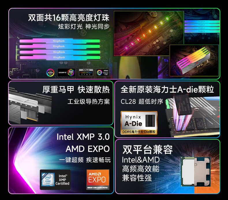 Jinbaida 블랙 블레이드 RGB 라이트 스트립 32/64GB 세트 DDR5 데스크탑 컴퓨터 메모리 모듈 하이닉스 과립스토어 가기