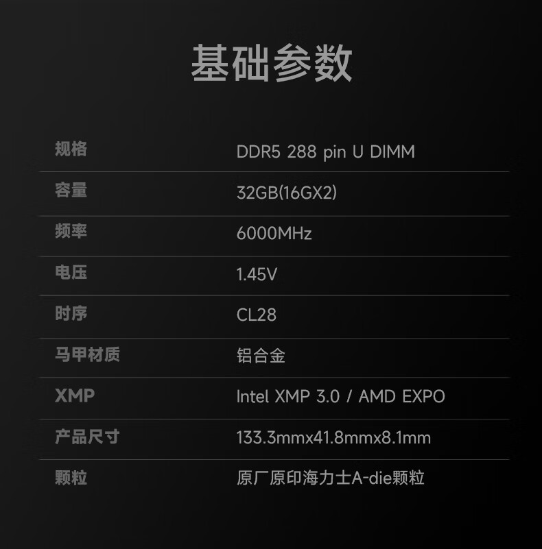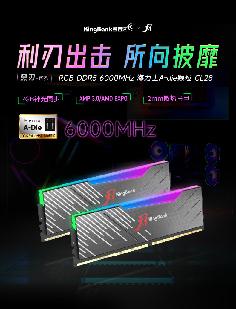 • DDR5-32G6000 라이트 스트립 블랙 블레이드 단일 스트립(C36 M-die)