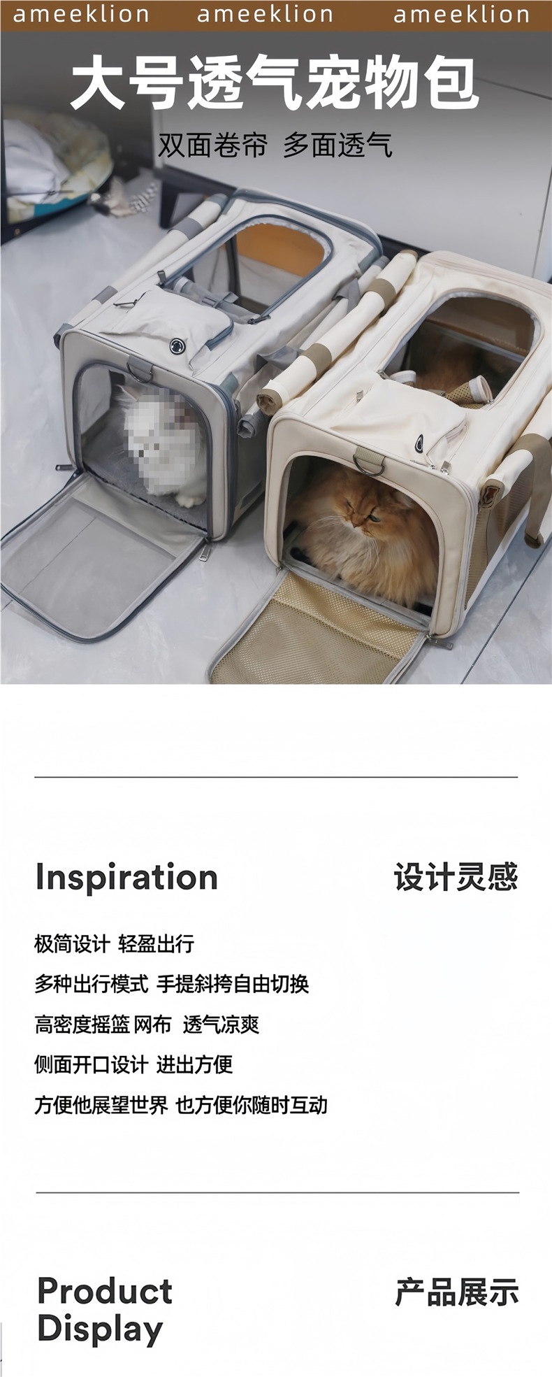 고양이 가방은 두 마리의 고양이를 가지고 나갈 수 있습니다. 휴대용 대형 통기성 애완 동물 가방, 휴대용 대용량 고양이 및 개 케이지