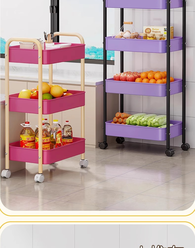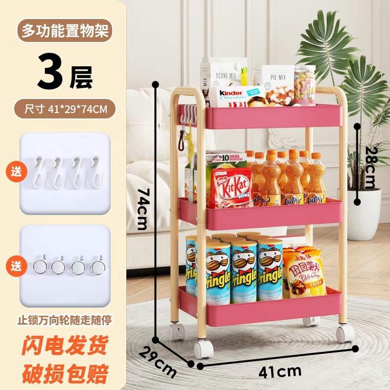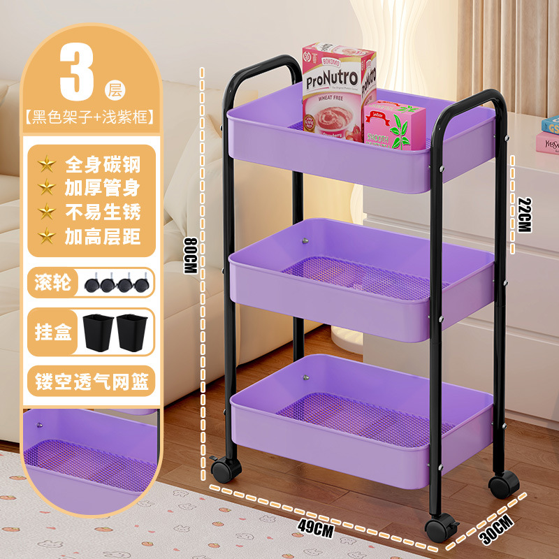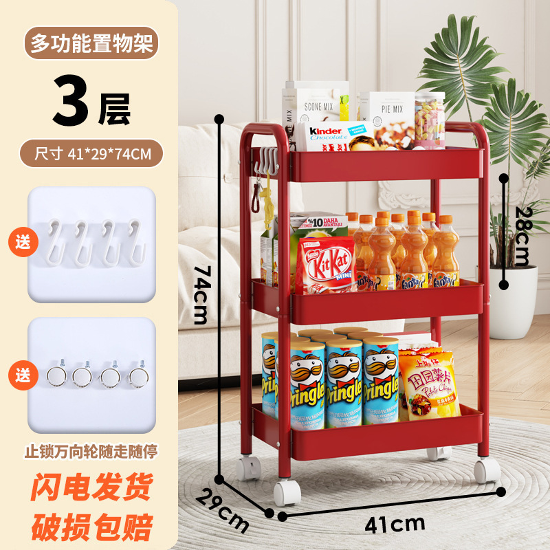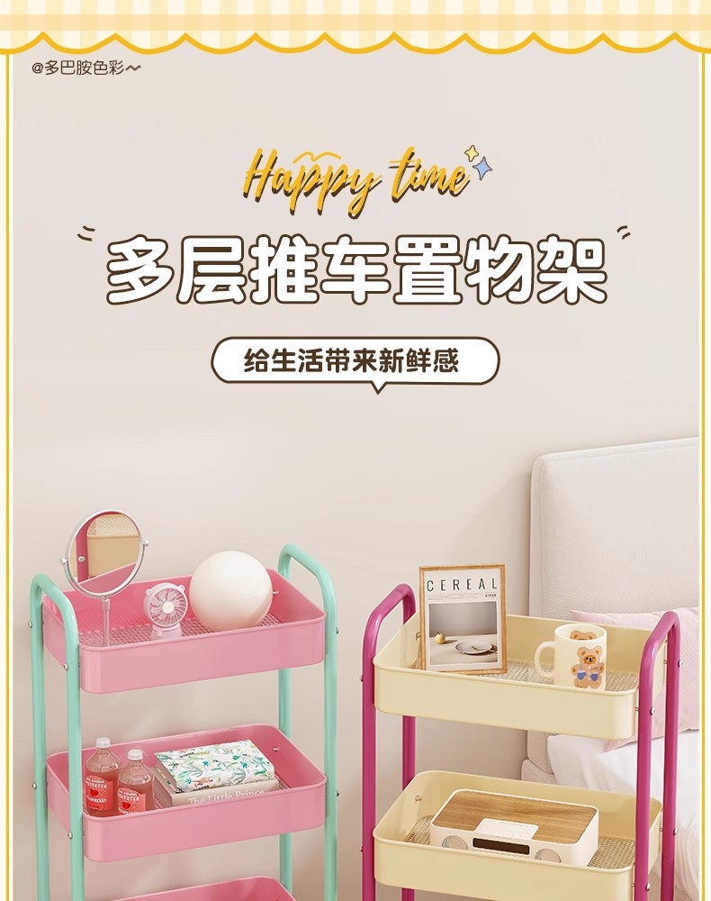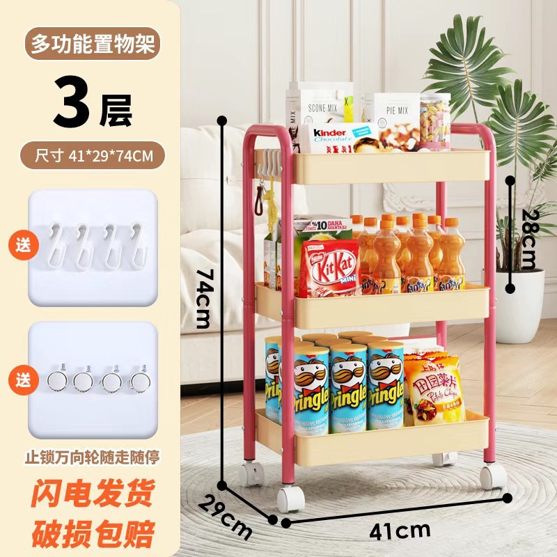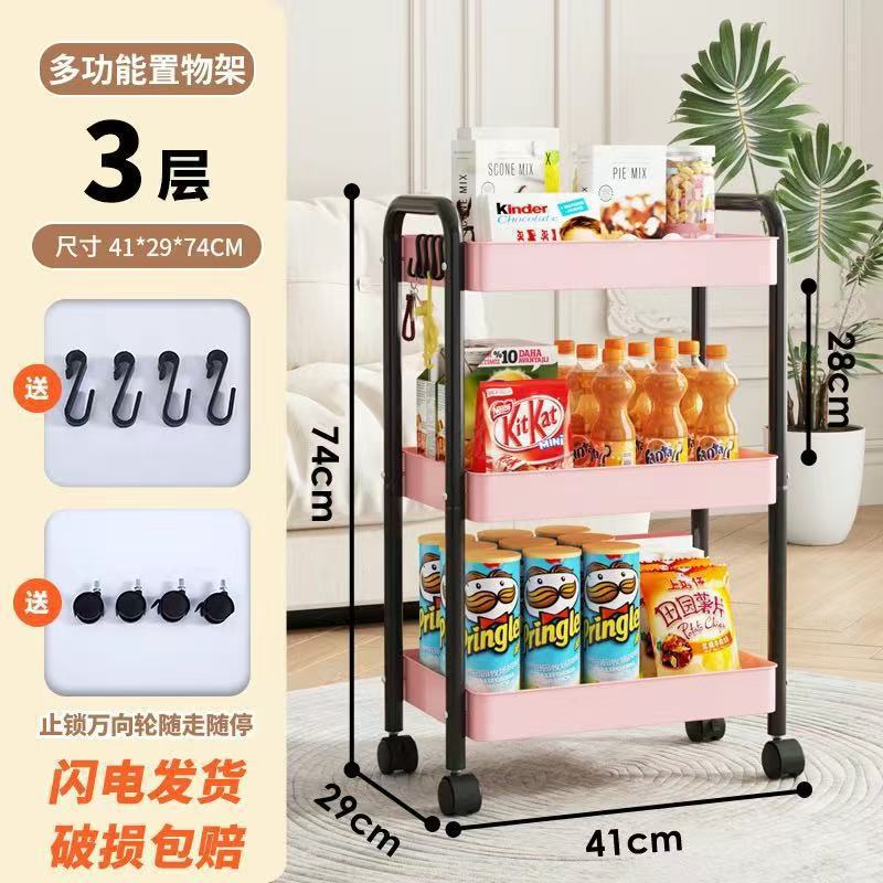 트롤리 보관 랙 탄소강 다층 이동식 도르래 가정용 스낵 뷰티 간단한 도파민 보관 랙