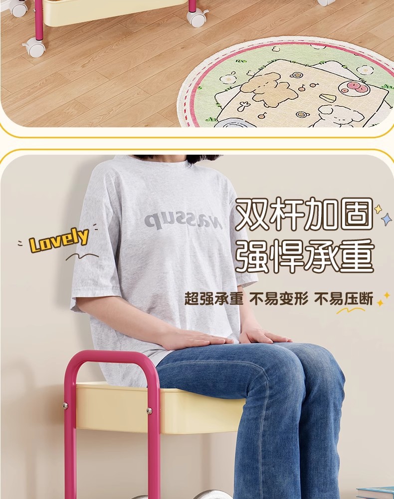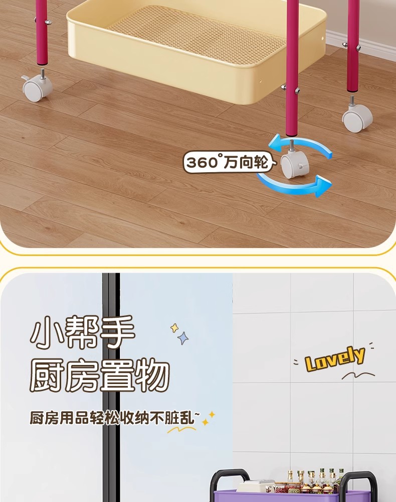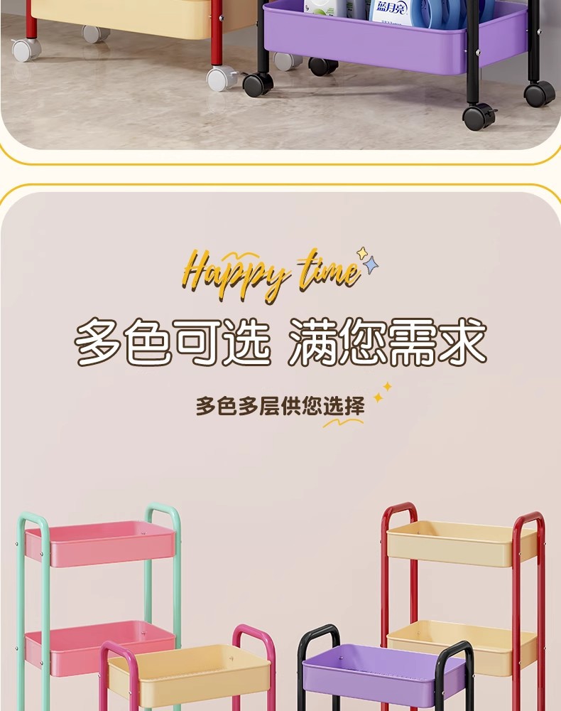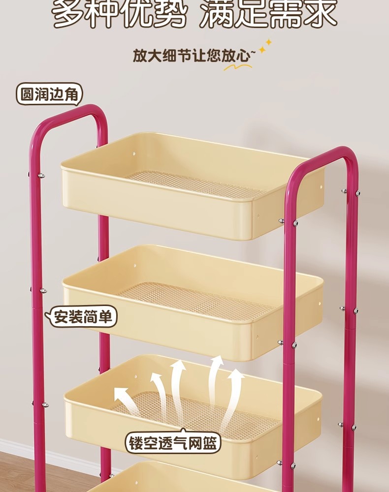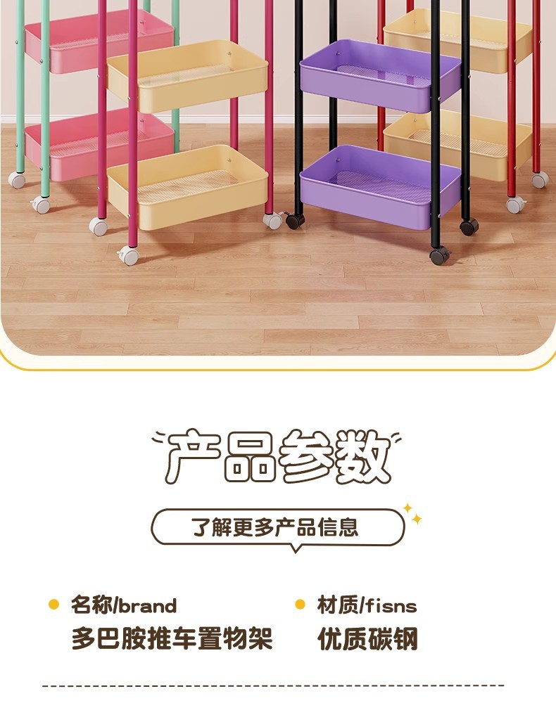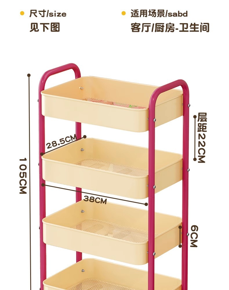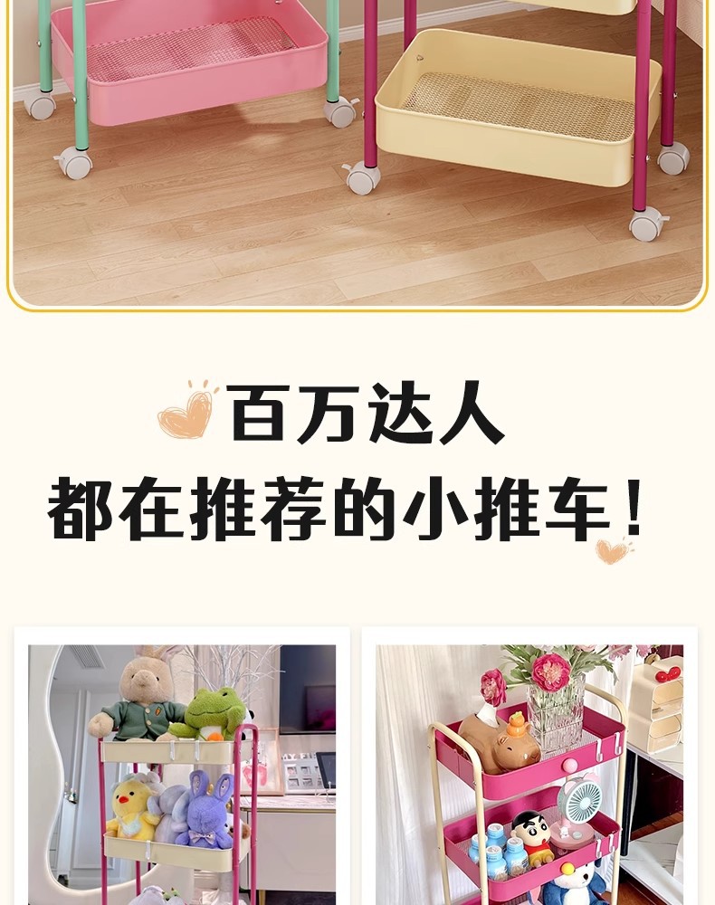 트롤리 보관 랙 탄소강 다층 이동식 도르래 가정용 스낵 뷰티 간단한 도파민 보관 랙