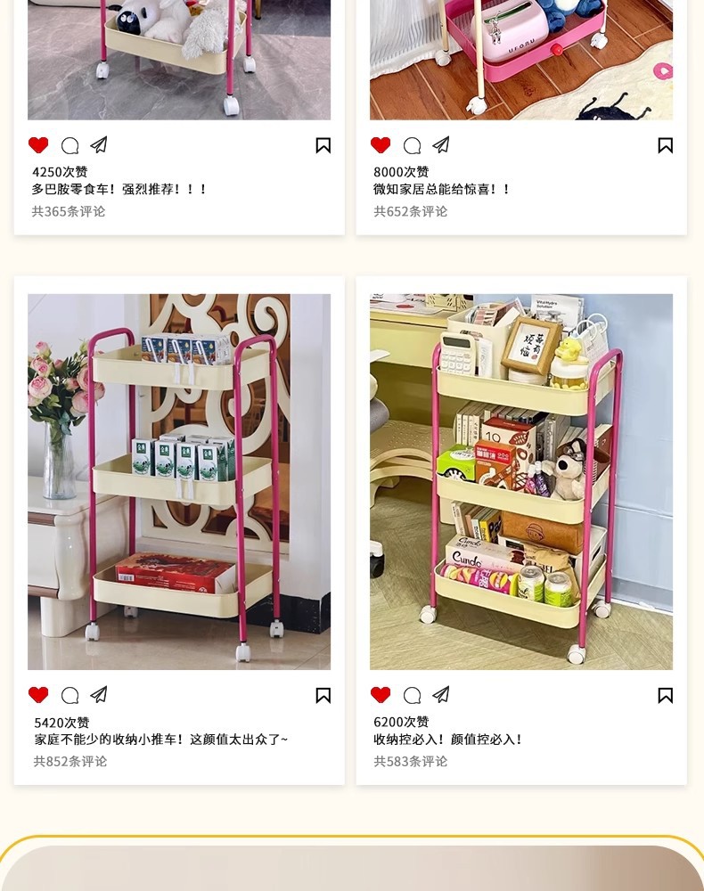트롤리 보관 랙 탄소강 다층 이동식 도르래 가정용 스낵 뷰티 간단한 도파민 보관 랙스토어 가기