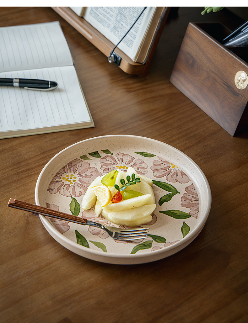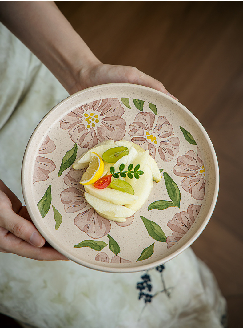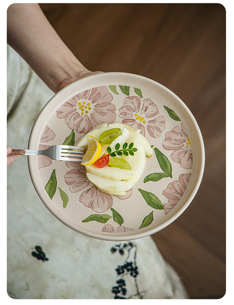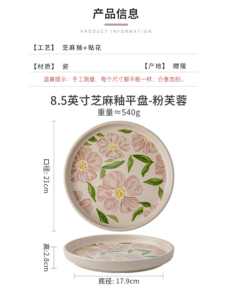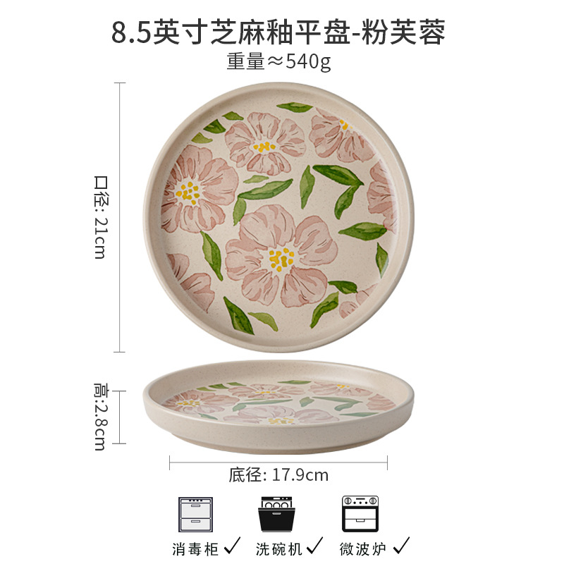 • 8.5inch 참깨유약평판-핑크히비스커스