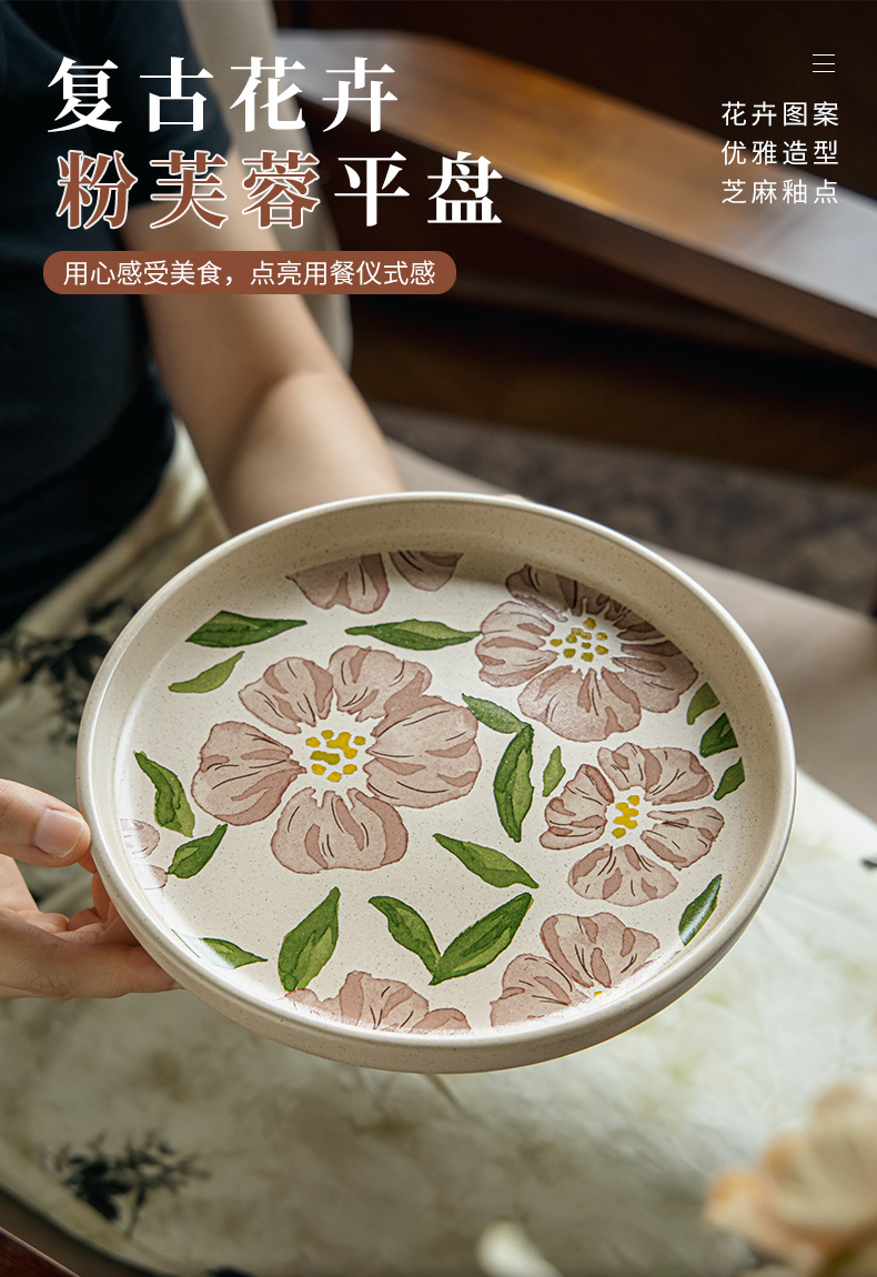 중국풍 꽃무늬 식기, 고급스러운 접시, 도자기 평접시, 정교한 양식 스테이크 접시의 해외 수출스토어 가기