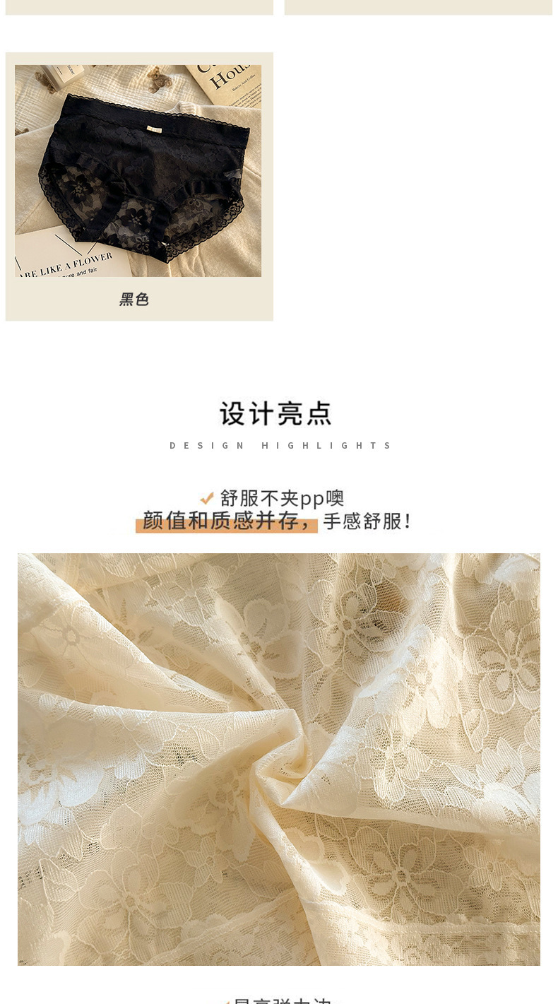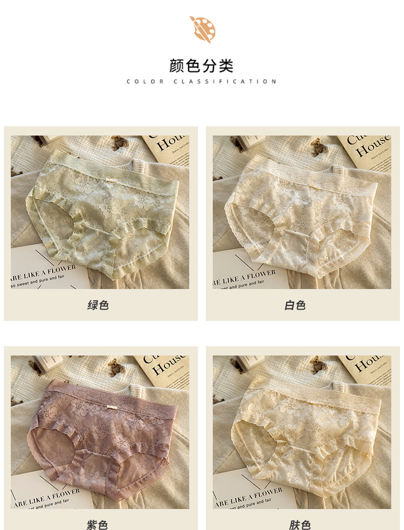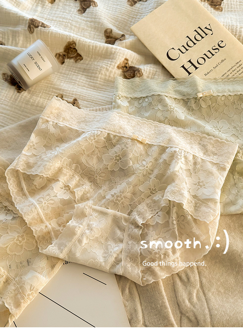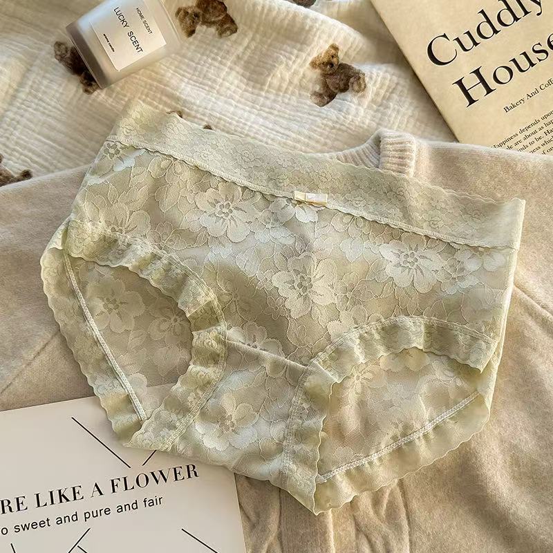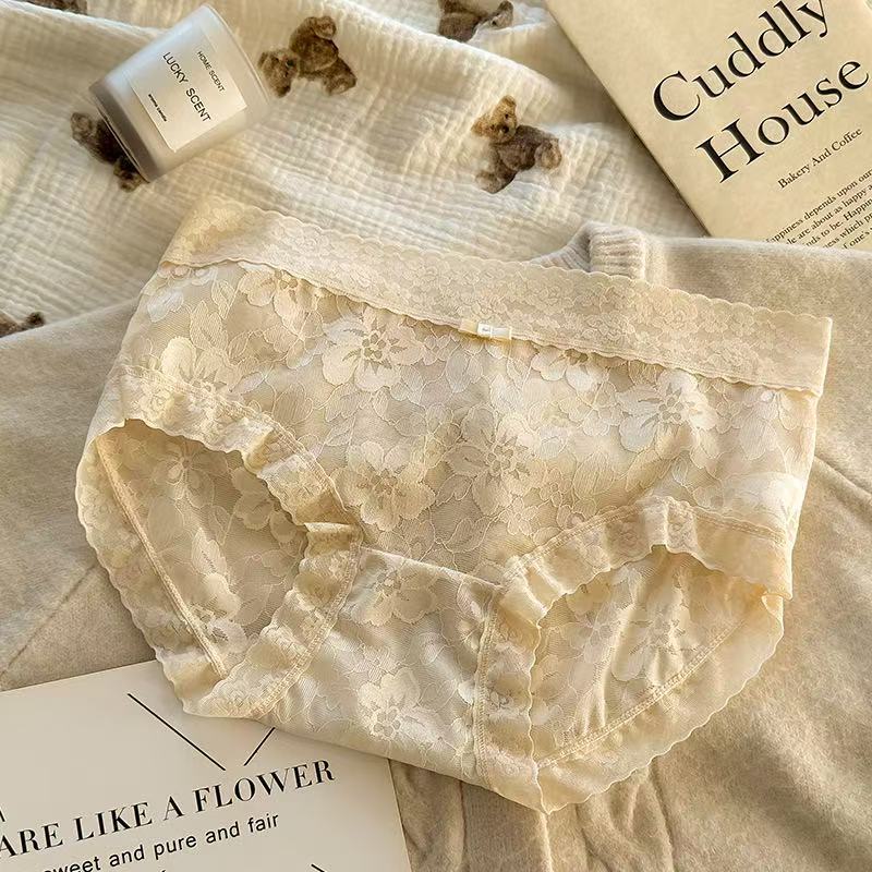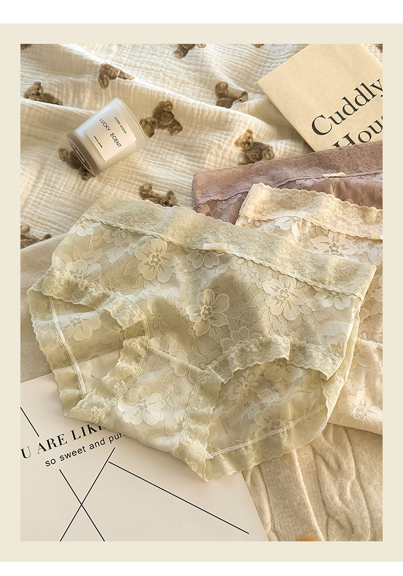 여성용 프렌치 레이스 팬티, 무봉제 요정, 얇고 피부 친화적인 중간 허리 여름 통기성 섹시한 여성용 팬티스토어 가기