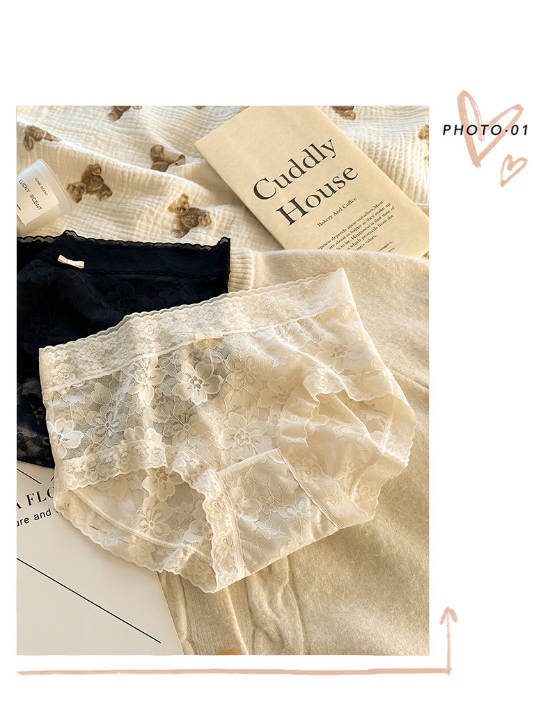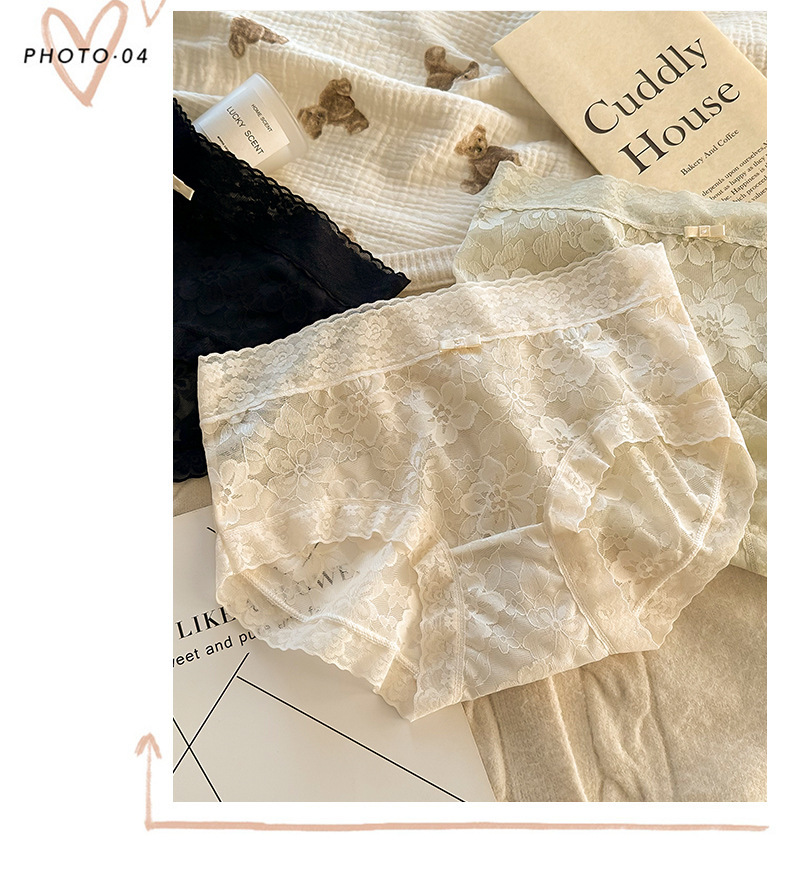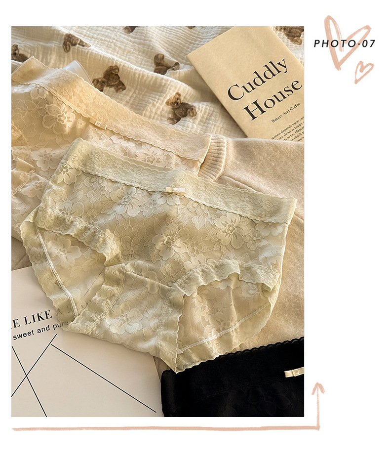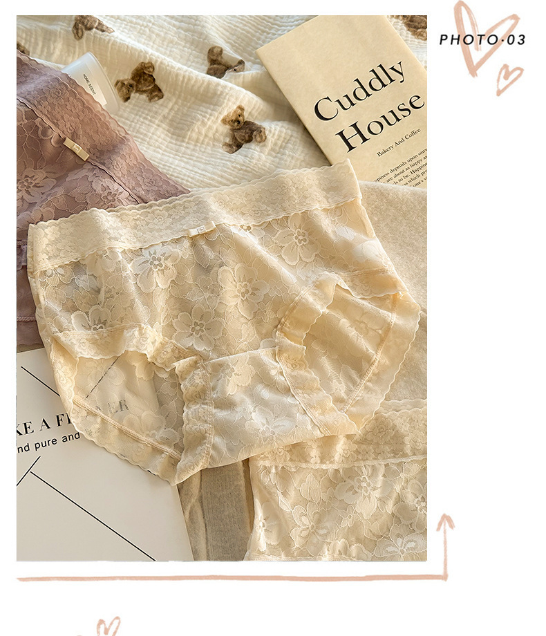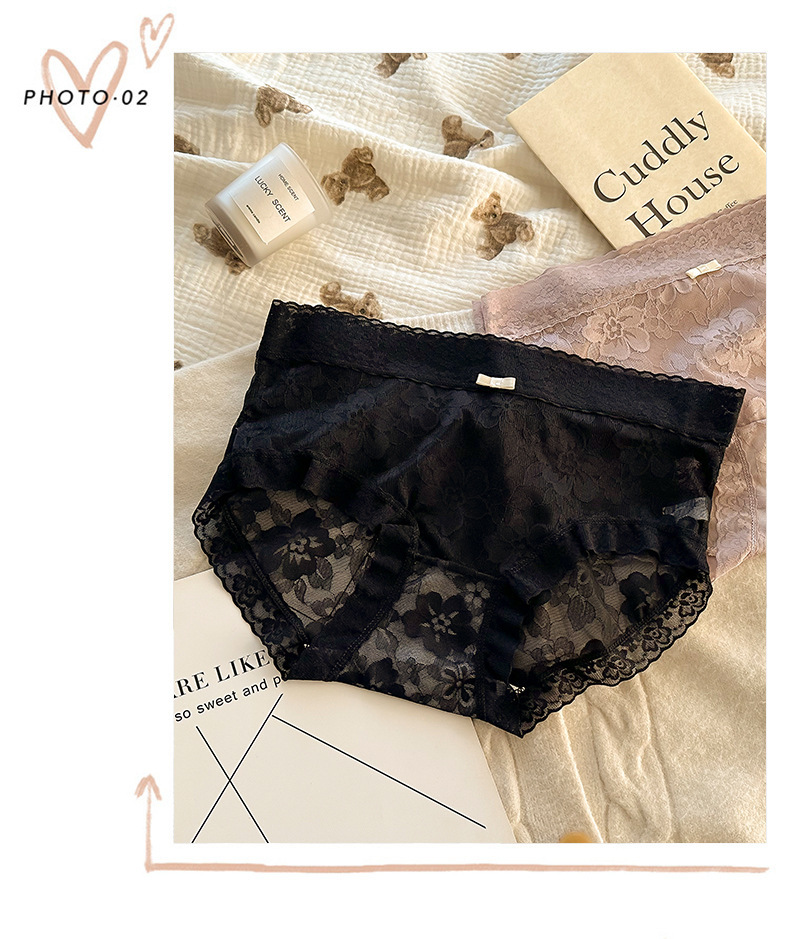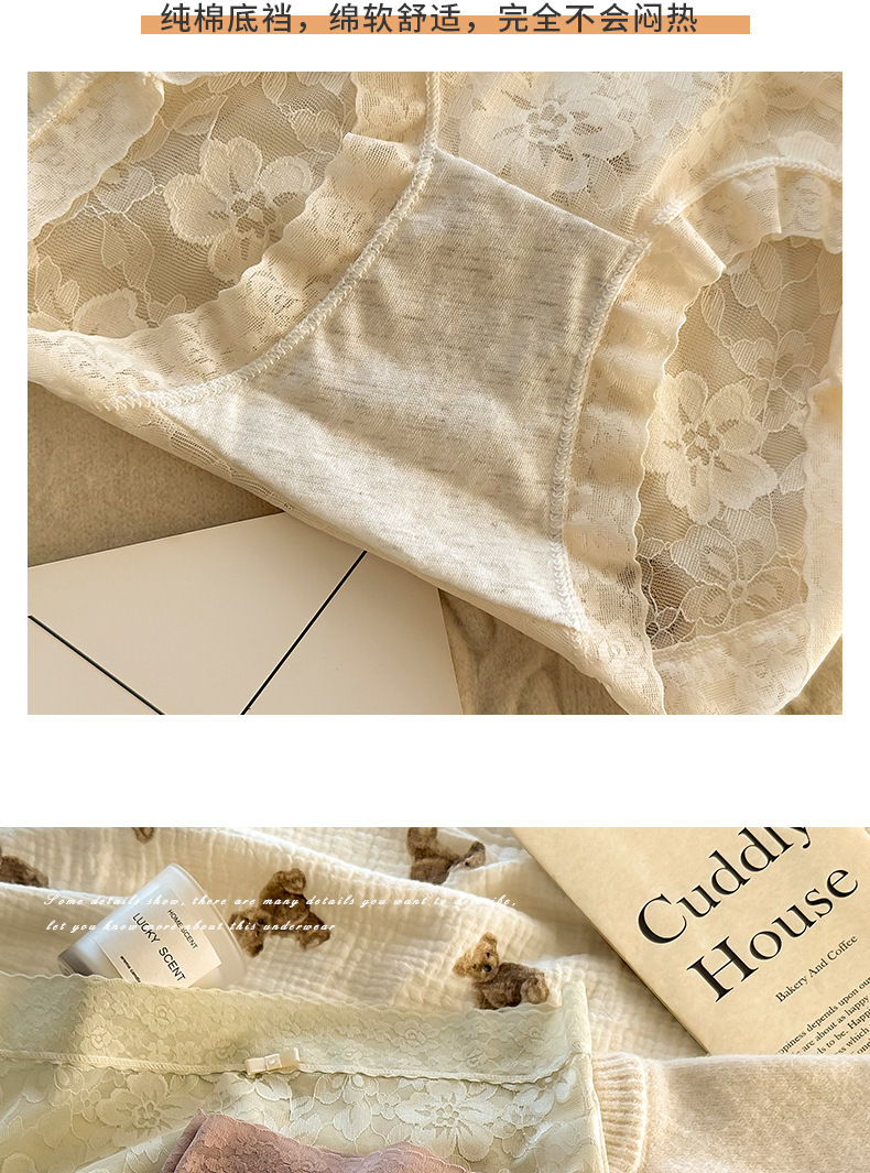 여성용 프렌치 레이스 팬티, 무봉제 요정, 얇고 피부 친화적인 중간 허리 여름 통기성 섹시한 여성용 팬티스토어 가기