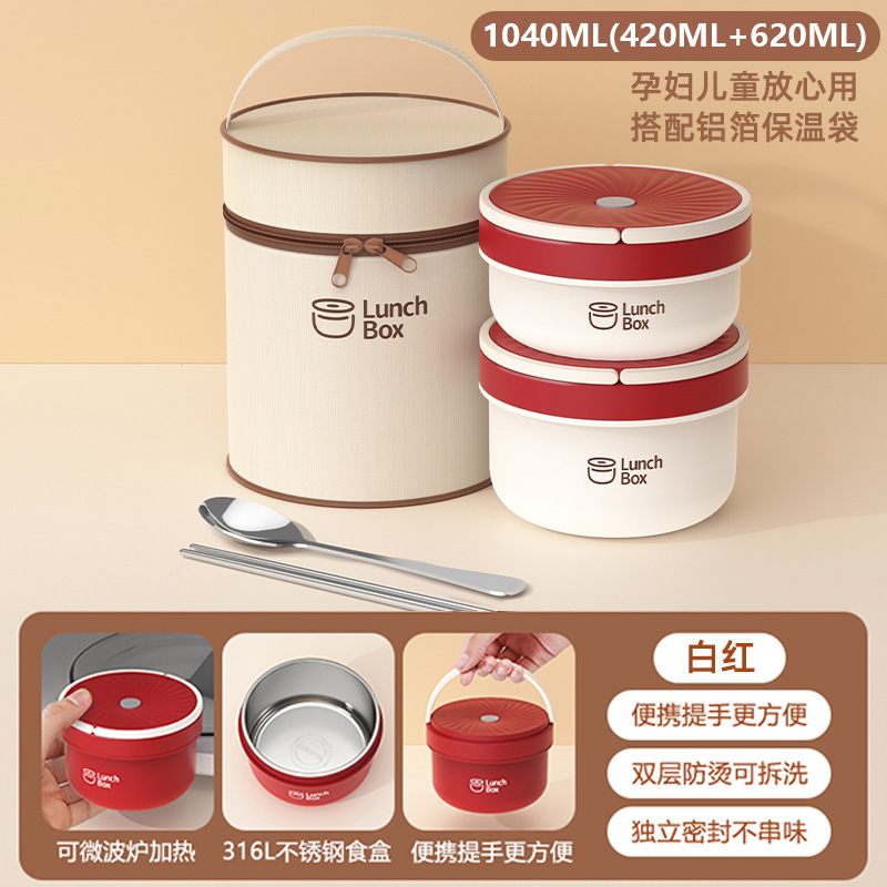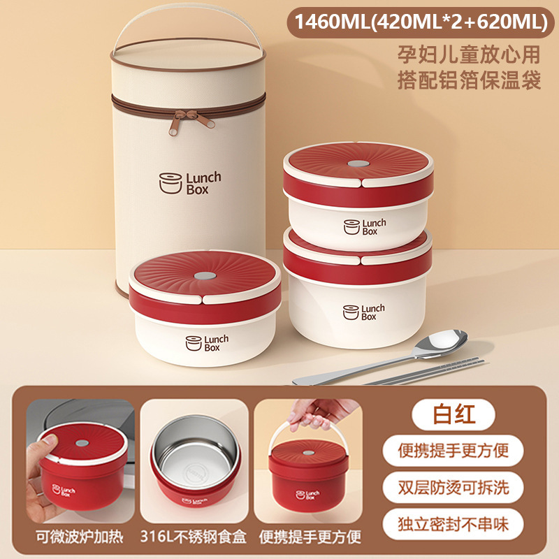 • 316-전자레인지 스타일 흰색과 빨간색(대형 2개, 소형 2개) [무료 업그레이드 - 보온 가방 + 식기 + 12V 충전 헤드] ₩✦