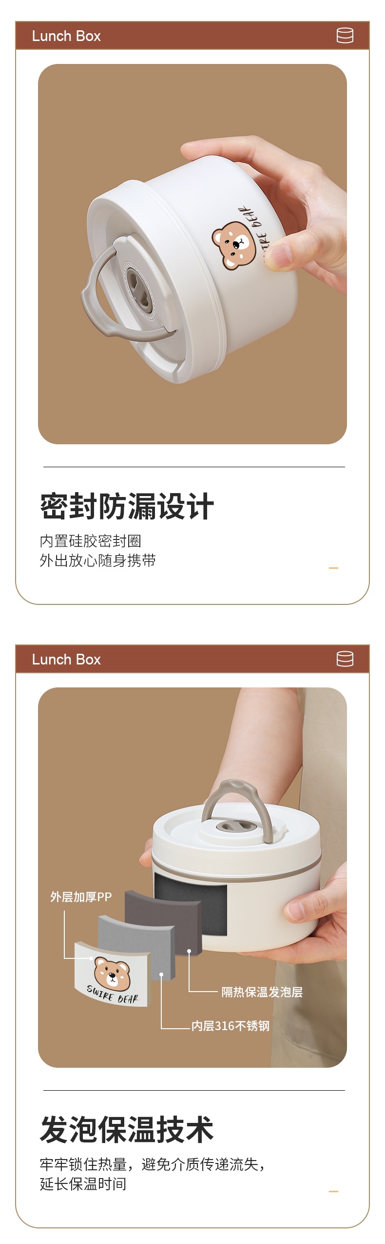 • 304 브라운 [대형 1개 + 소형 1개 + 식기류 + 보온가방] ₩✦
