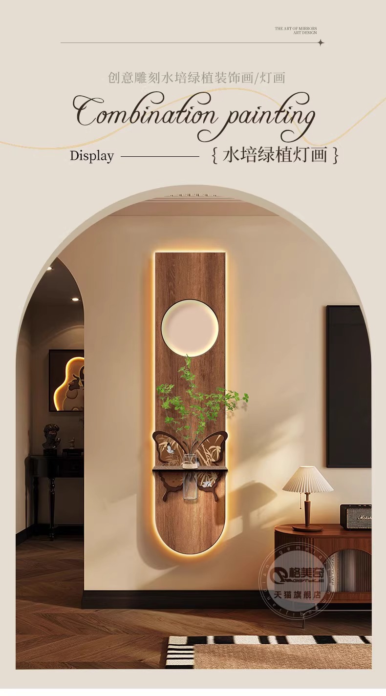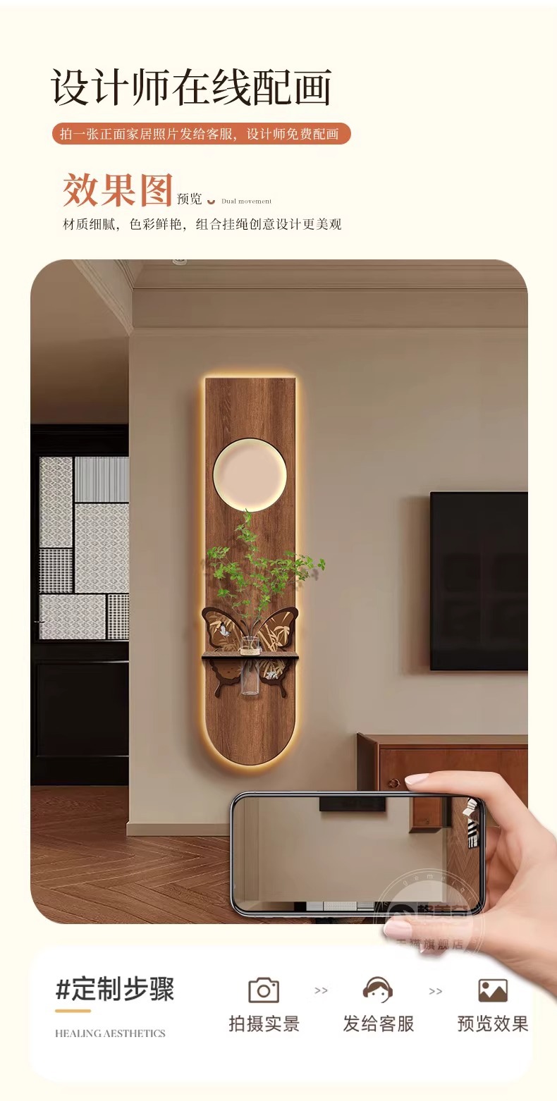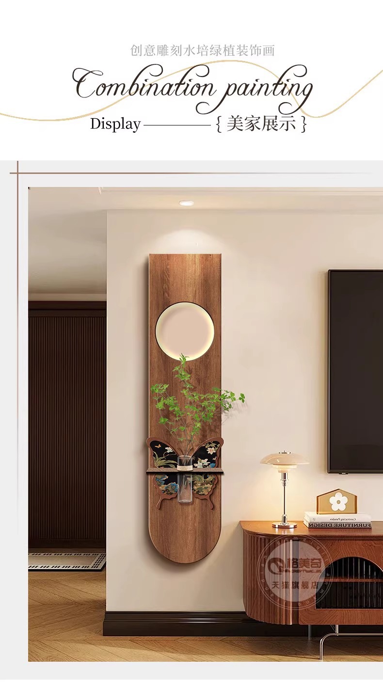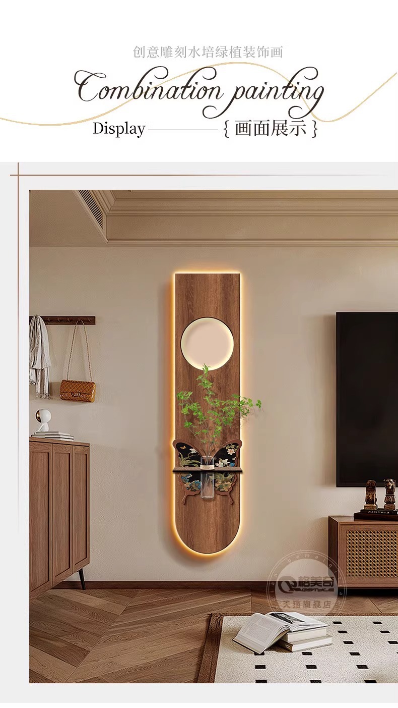 중세 스타일 TV 배경 벽 장식 그림 거실 벽 분위기 레이아웃 고급 수경 녹색 식물 입구 교수형 그림
