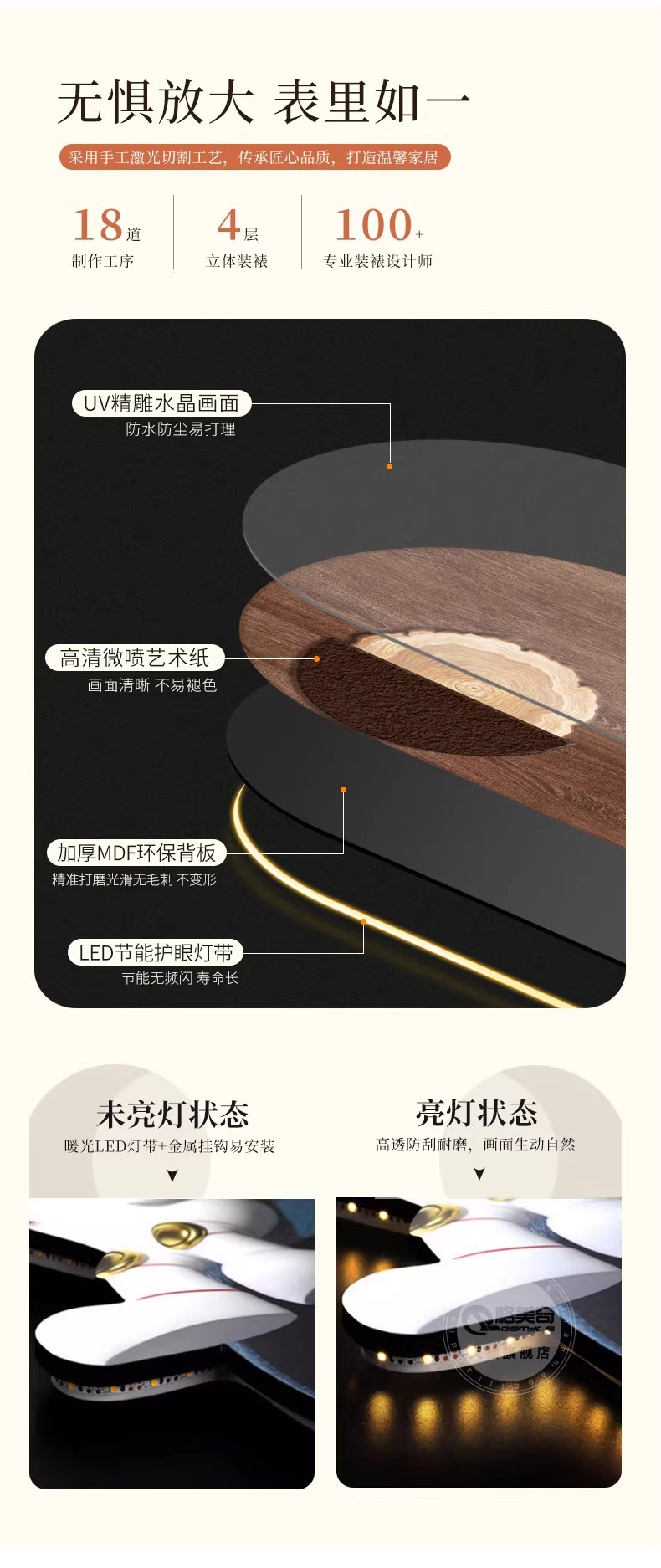 • 30*120+ 정교하게 조각된 창의적인 모델링 그림+ 유리 꽃병+ 시뮬레이션된 녹색 식물+ 조명이 있는 크리스탈 그림(플러그인 모델+리모컨)