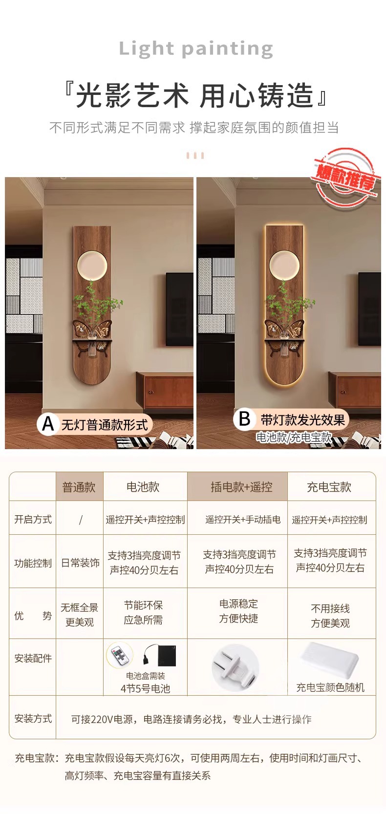 • 35*140+ 정교하게 조각된 창의적인 모양 그림+ 유리 꽃병+ 시뮬레이션된 녹색 식물+ 조명이 있는 크리스탈 그림(전원 은행 모델+리모컨+음성 제어)