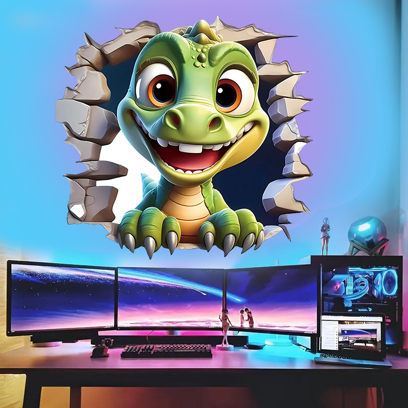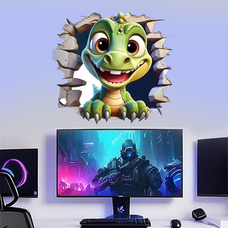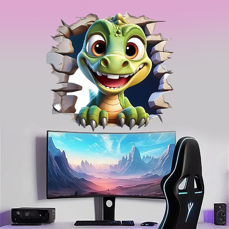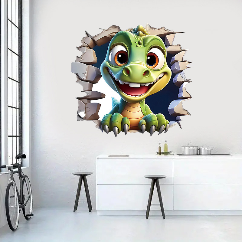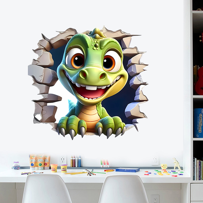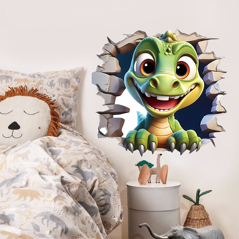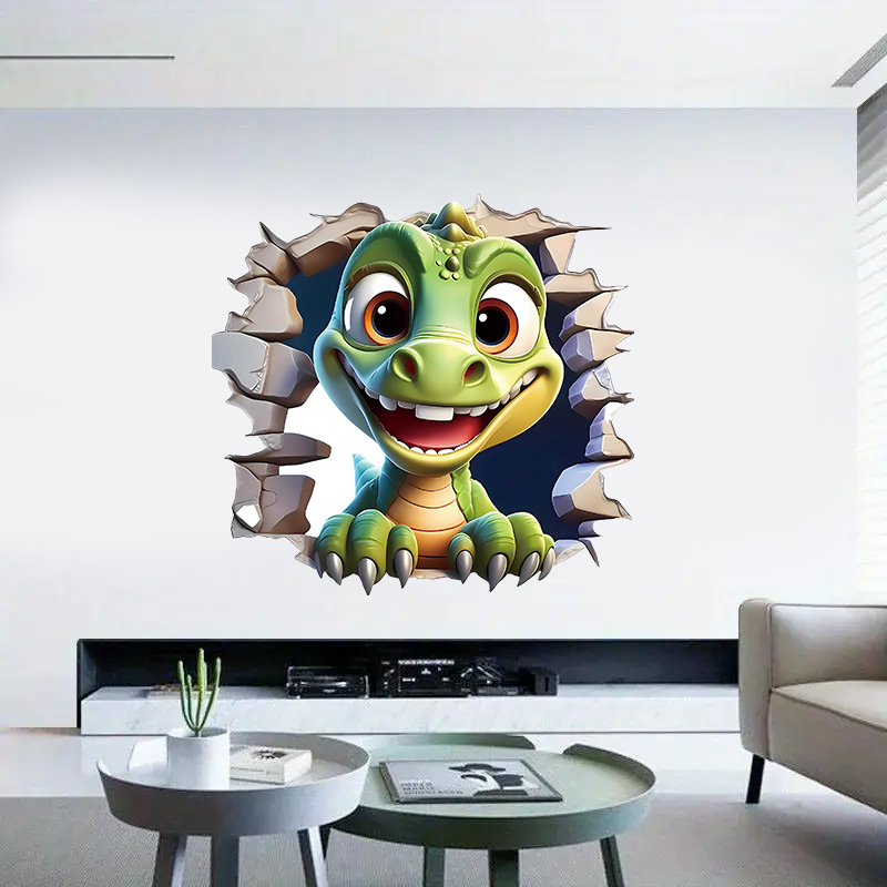 국경 간 대외 무역 3D 귀여운 벽을 통과하는 공룡 벽 스티커 어린이 방 침실 유치원 장식 스티커 크리 에이 티브 자체 접착스토어 가기