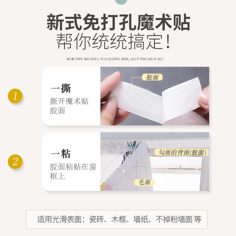 벨크로 커튼, 간단한 차광 천, 펀치 없이 설치, 차양 창, 침실 자외선 차단, 자체 접착식, 무료 배송