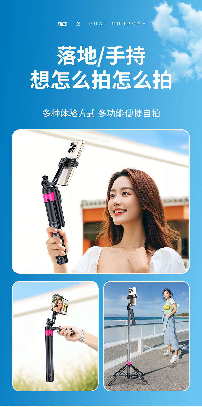 크로스보더 사진 촬영, 비디오 녹화, 사진 촬영, 라이브 방송용 스탠드, 셀카봉, 삼각대, 야외 촬영용, 바닥에 세우는 휴대폰 거치대스토어 가기