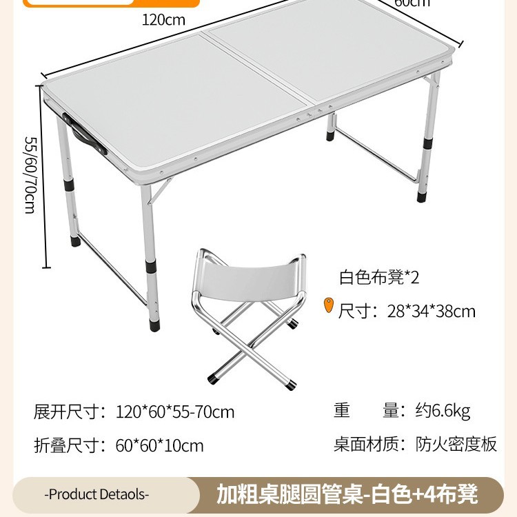 • [업그레이드 된 알루미늄 합금 사각 튜브] 120*60cm 흰색 + 천 의자 4개