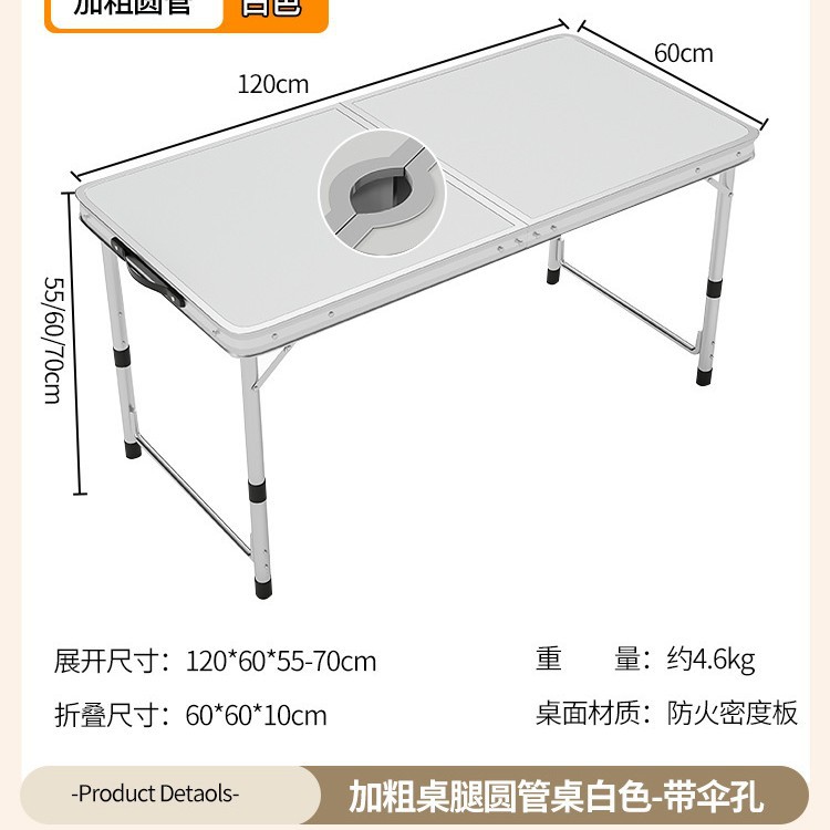 • [알루미늄 합금 원형 튜브] 120*60cm 흰색 우산 구멍 + 천 의자 4개