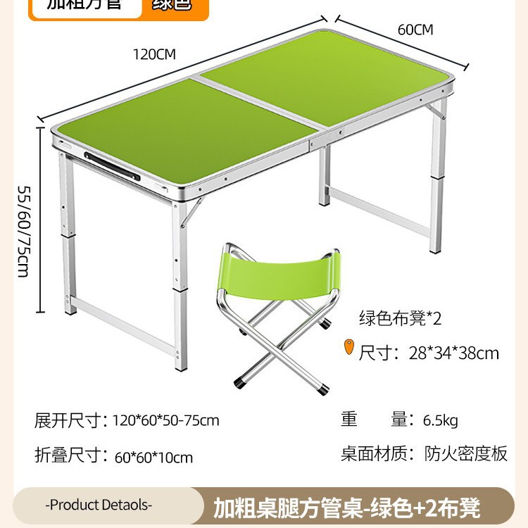 • [업그레이드 된 알루미늄 합금 사각 튜브] 120*60cm 녹색 + 알루미늄 의자 2개