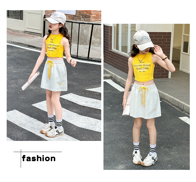 여자 니트 치마 여름 드레스 2025 새로운 어린이 얇은 캐주얼 스커트 어린 소녀 스포츠 스커트 스커트스토어 가기