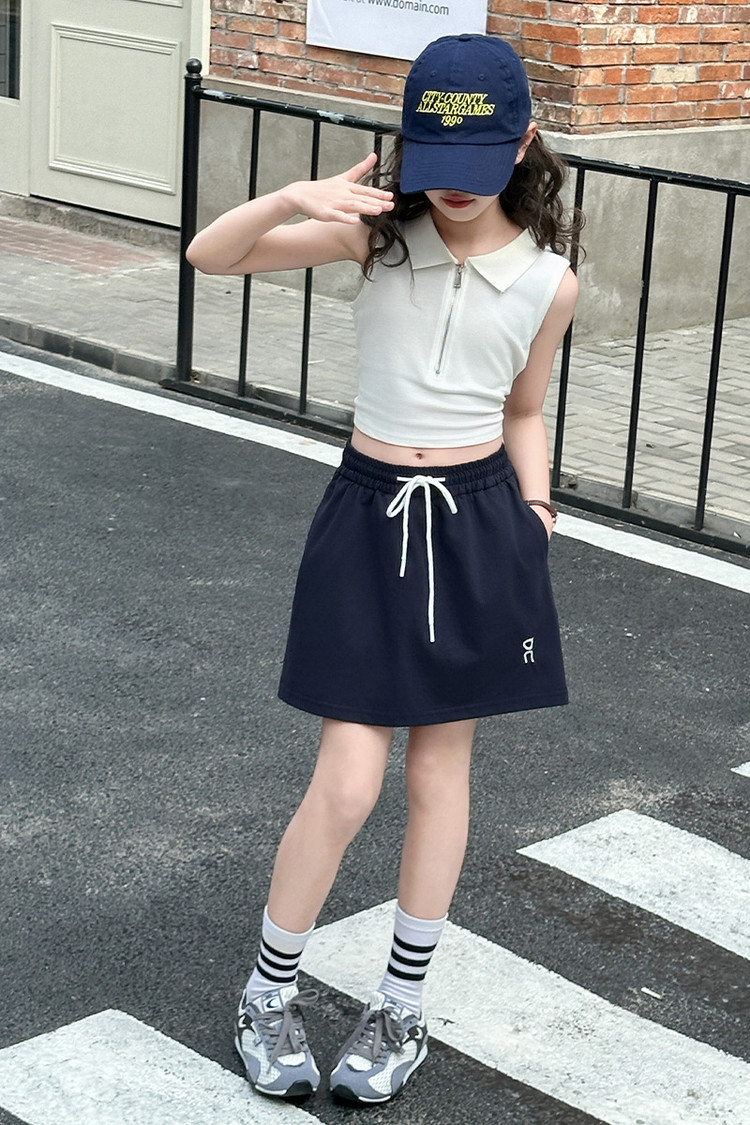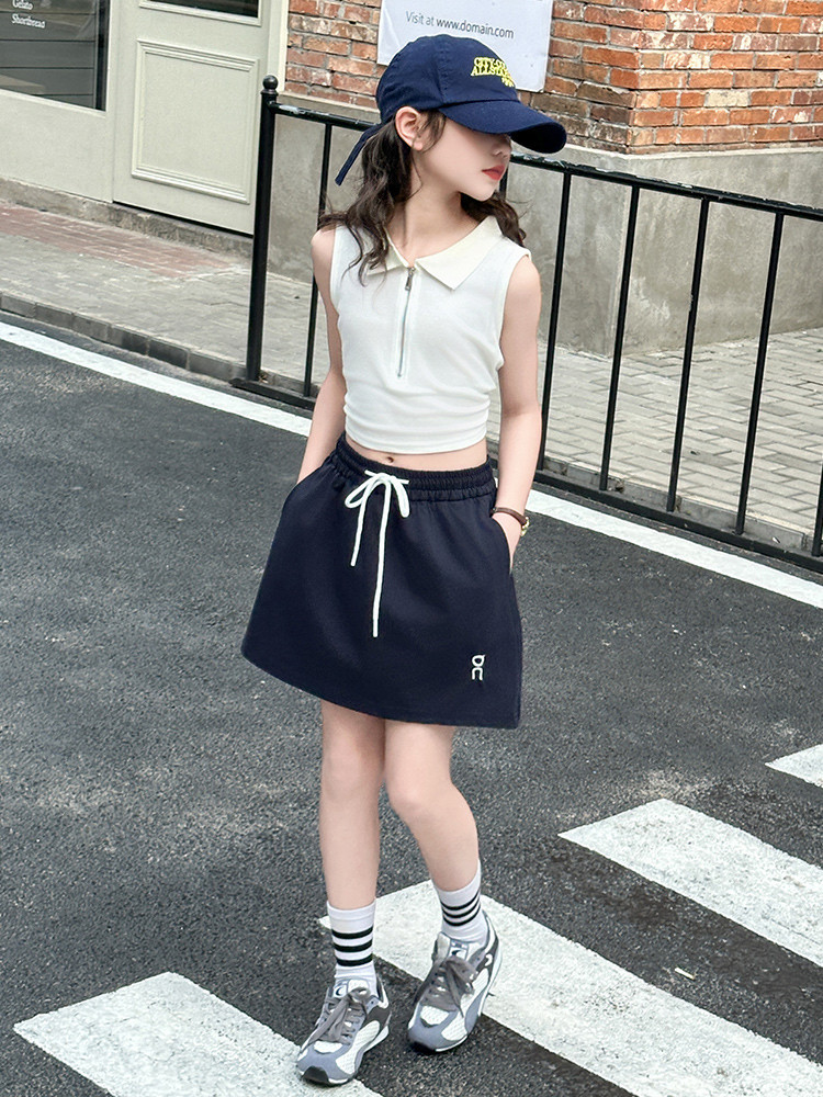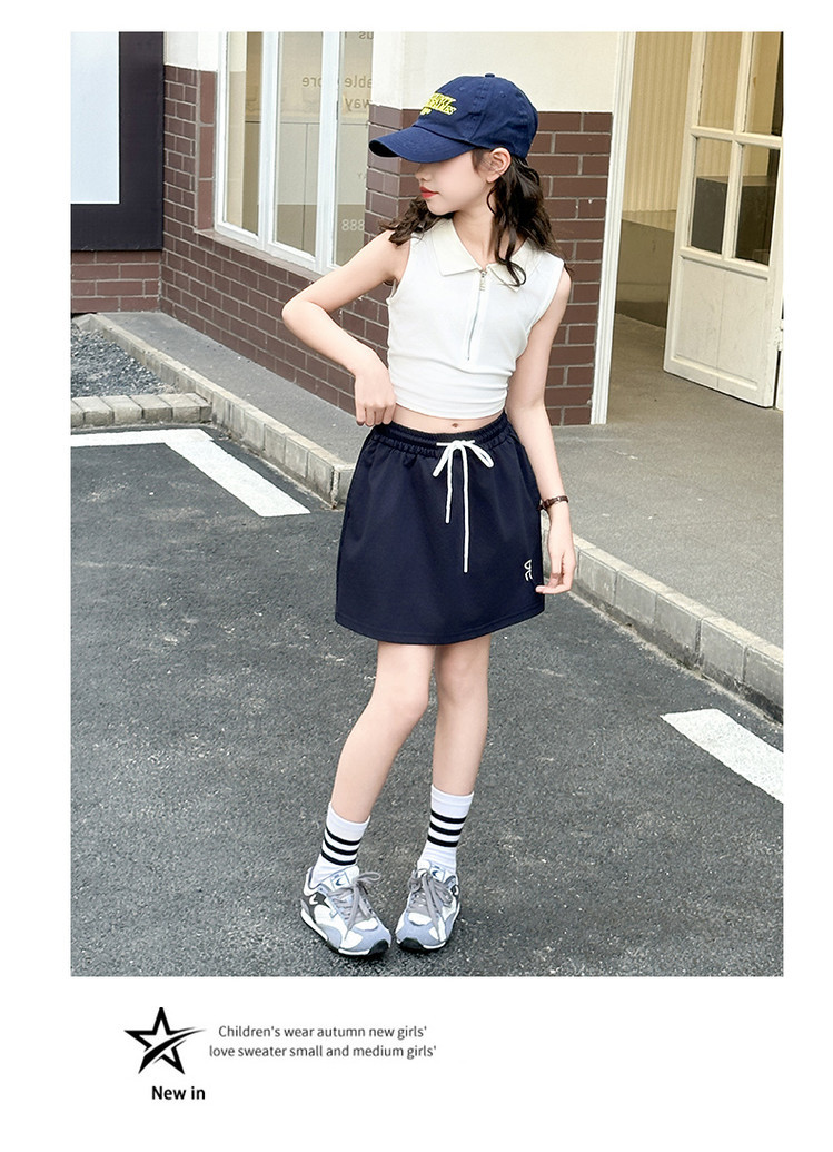 여자 니트 치마 여름 드레스 2025 새로운 어린이 얇은 캐주얼 스커트 어린 소녀 스포츠 스커트 스커트