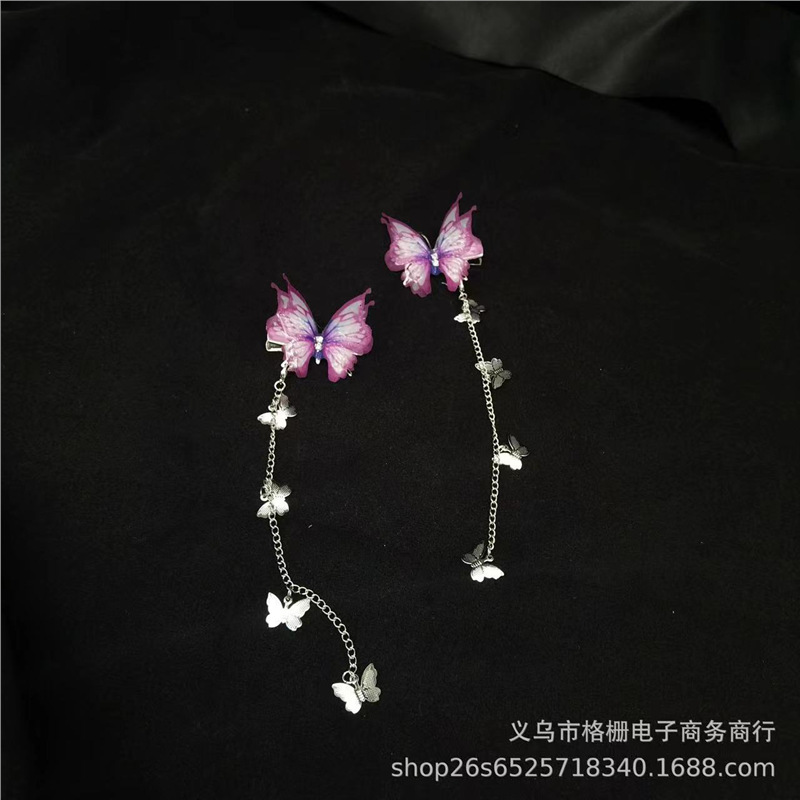 태슬 나비 머리 장식, 요정 숲 스타일 슈퍼 요정 머리핀 펜던트 사이드 클립 소녀 한국 패브릭 앞머리 클립 머리핀스토어 가기