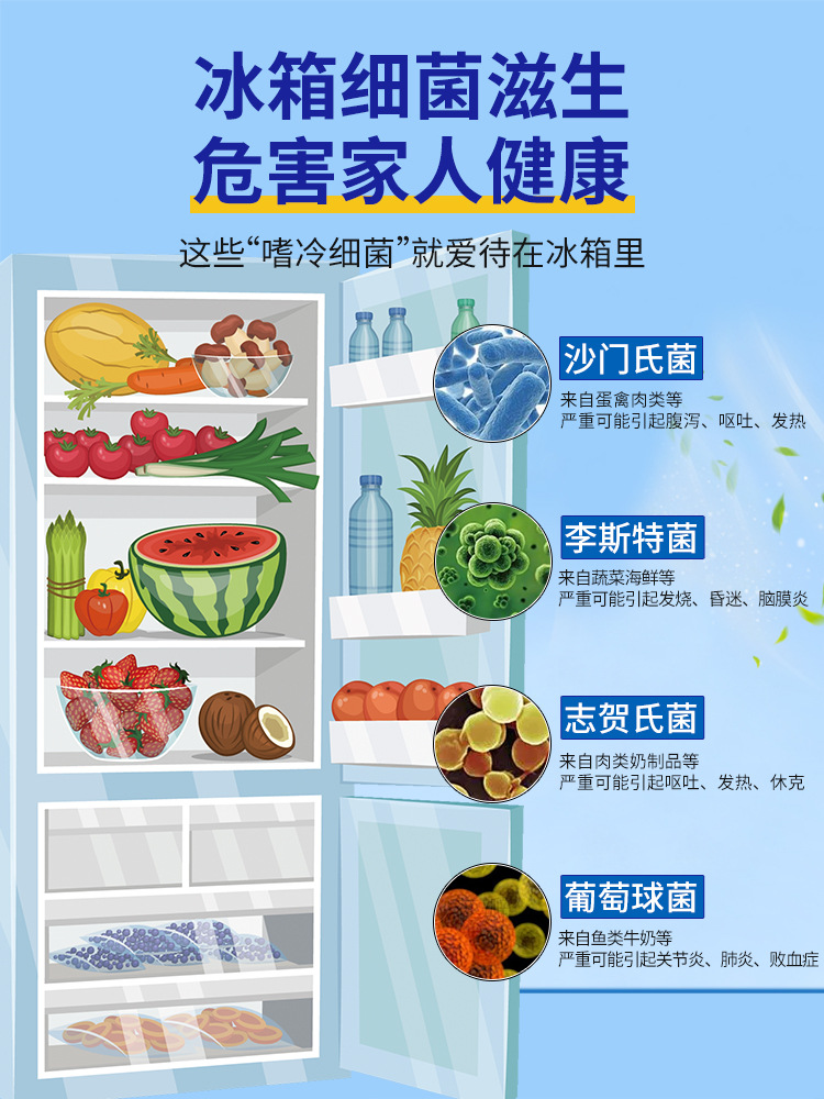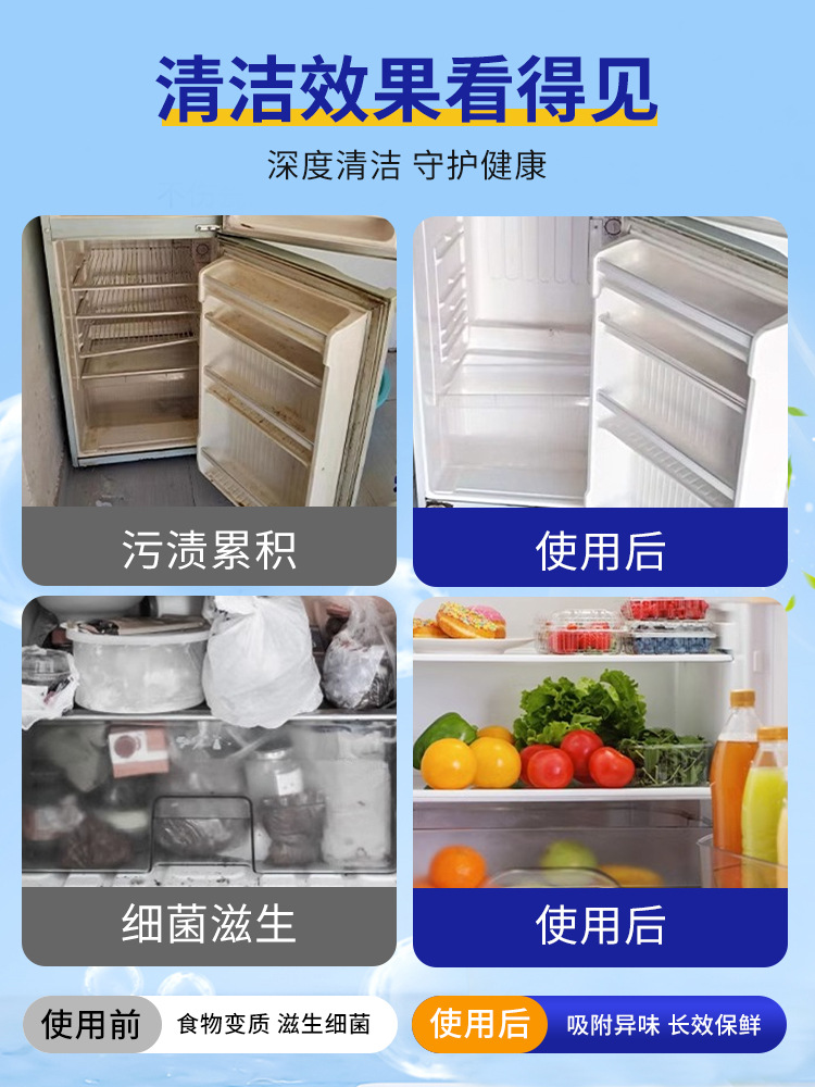 냄새 제거용 냉장고 특수세제, 가정용 청소, 소독, 세척, 디스케일링, 냉동고, 눈 녹이기, 얼음 제거, 냄새 제거, 리노베이션
