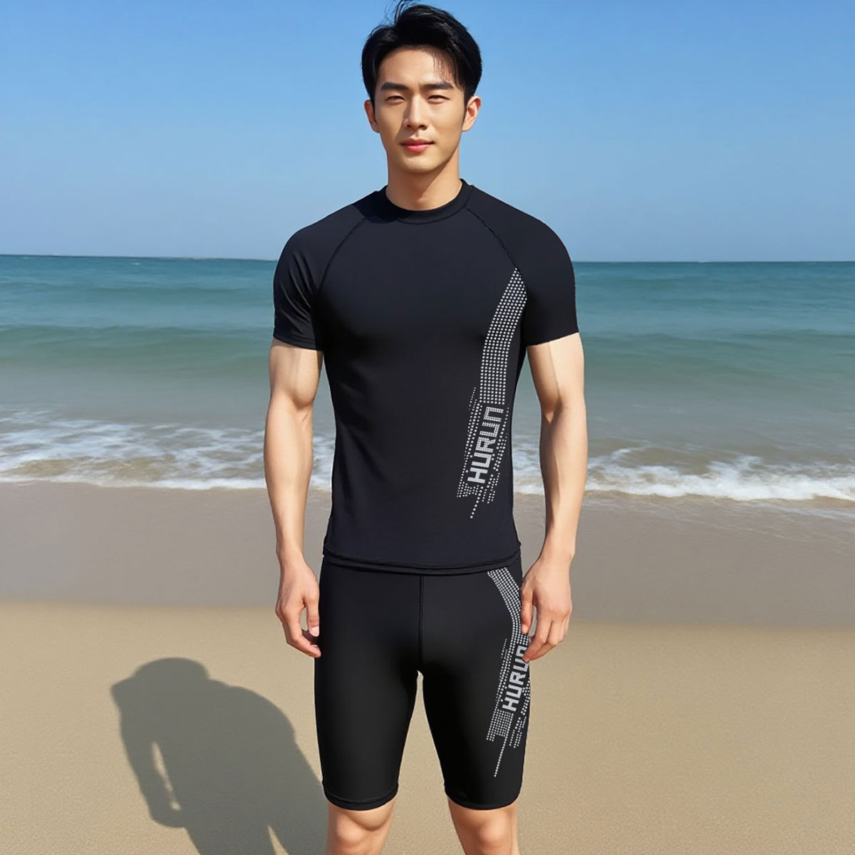 수영복 남자 정장 성인 수영 반팔 프린트 수영복 남자 스플릿 새로운 긴 수영 트렁크 청소년 대형스토어 가기
