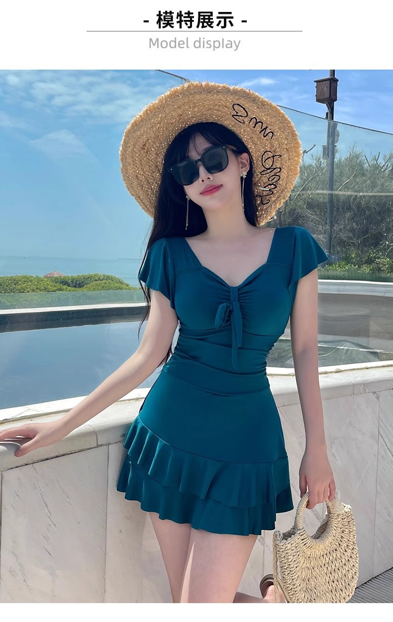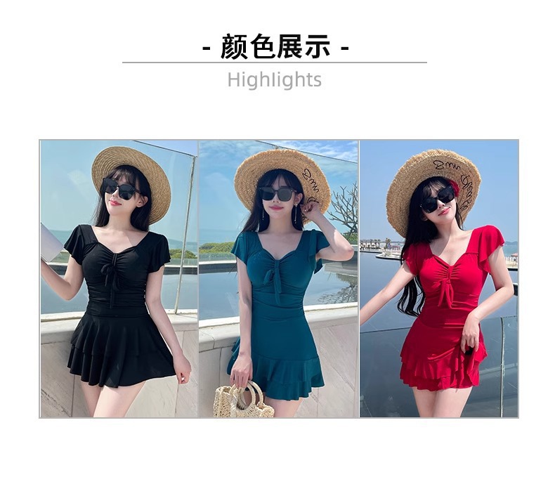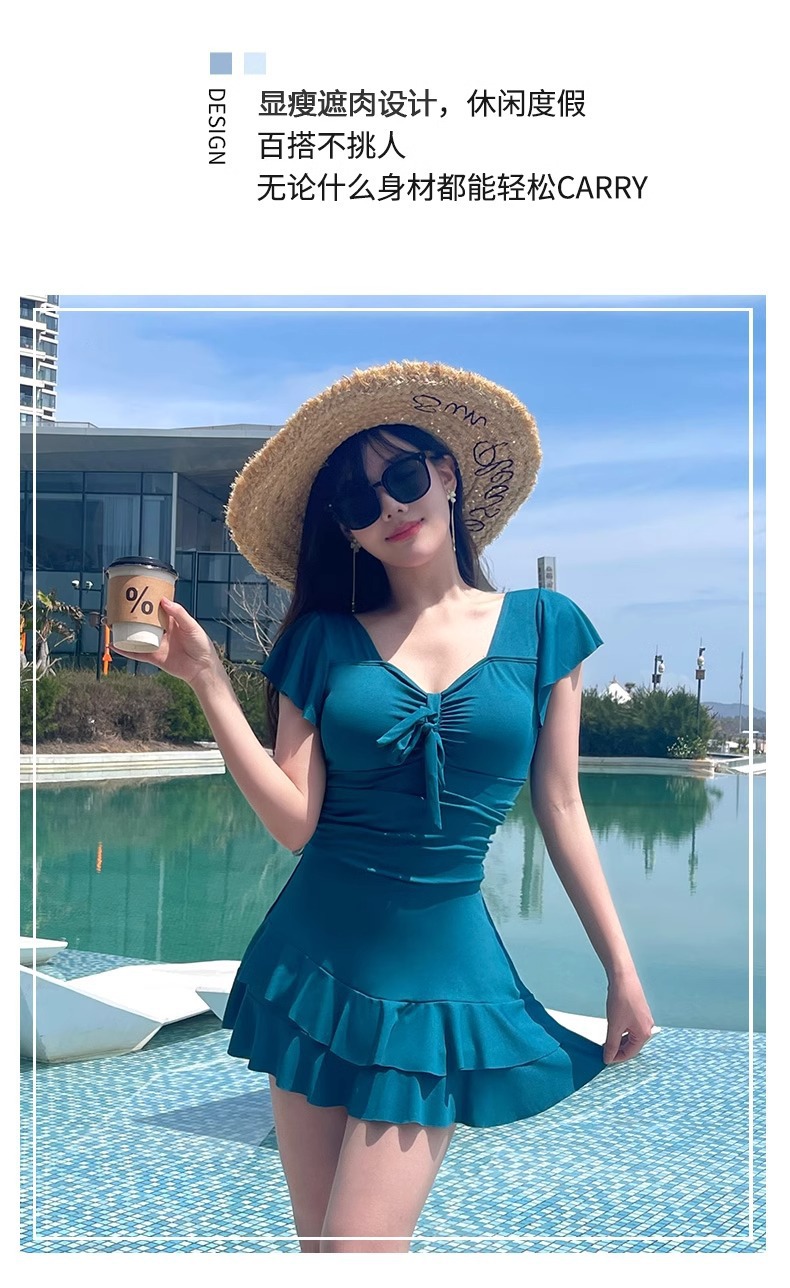 플러스 사이즈 원피스 수영복 여성용 배 가리기 슬림 효과 보수적 가슴 패드 포함 해변 휴가 온천 원피스 스타일 수영복스토어 가기