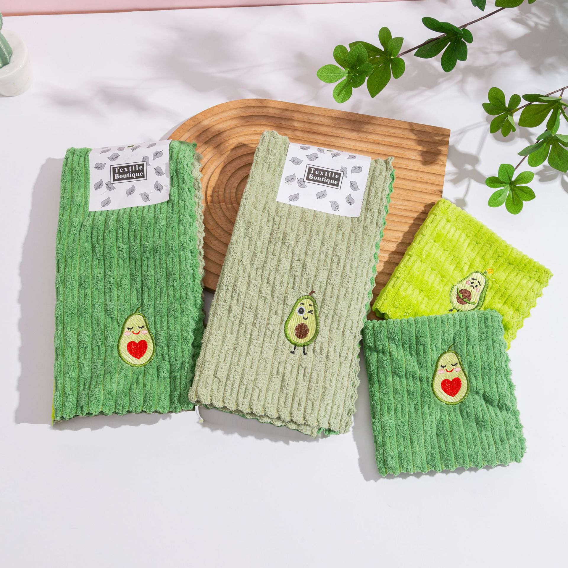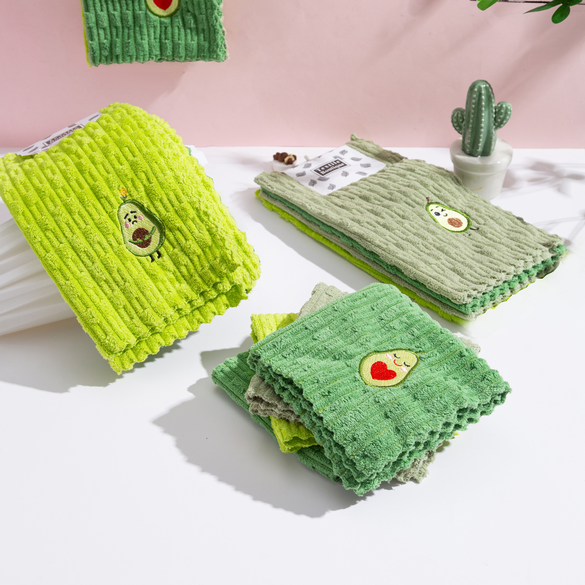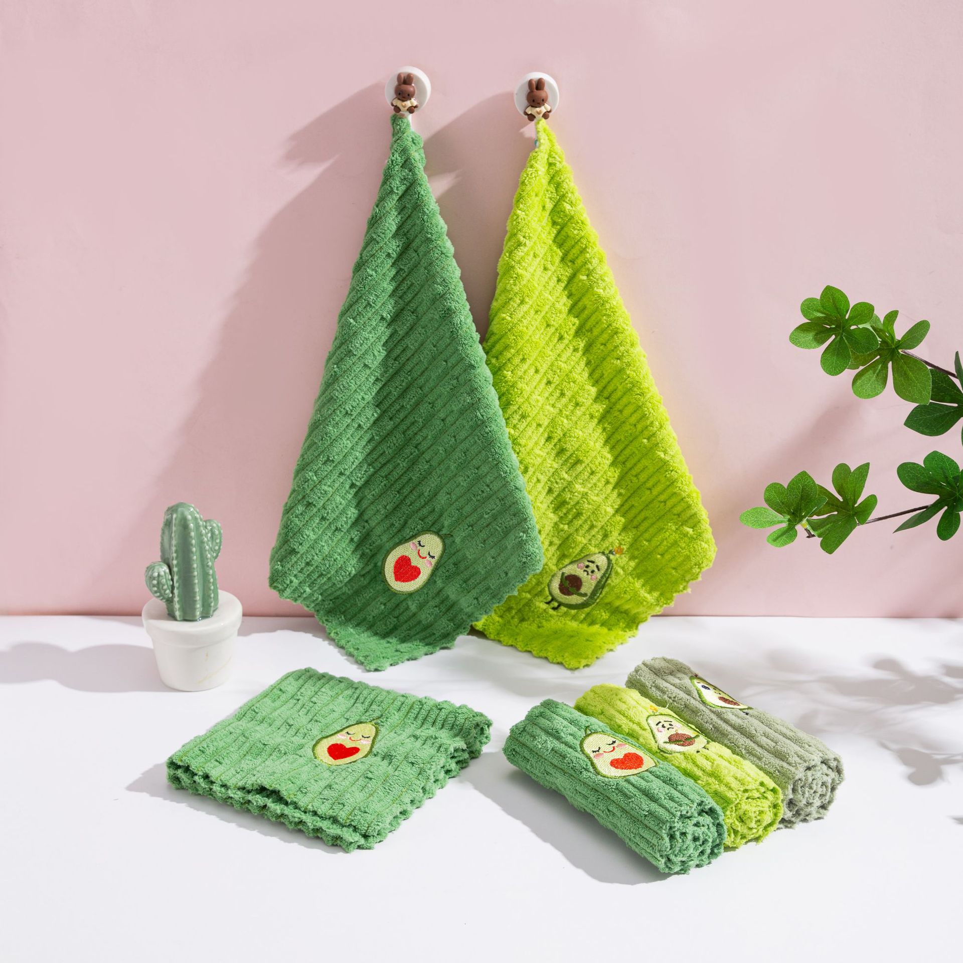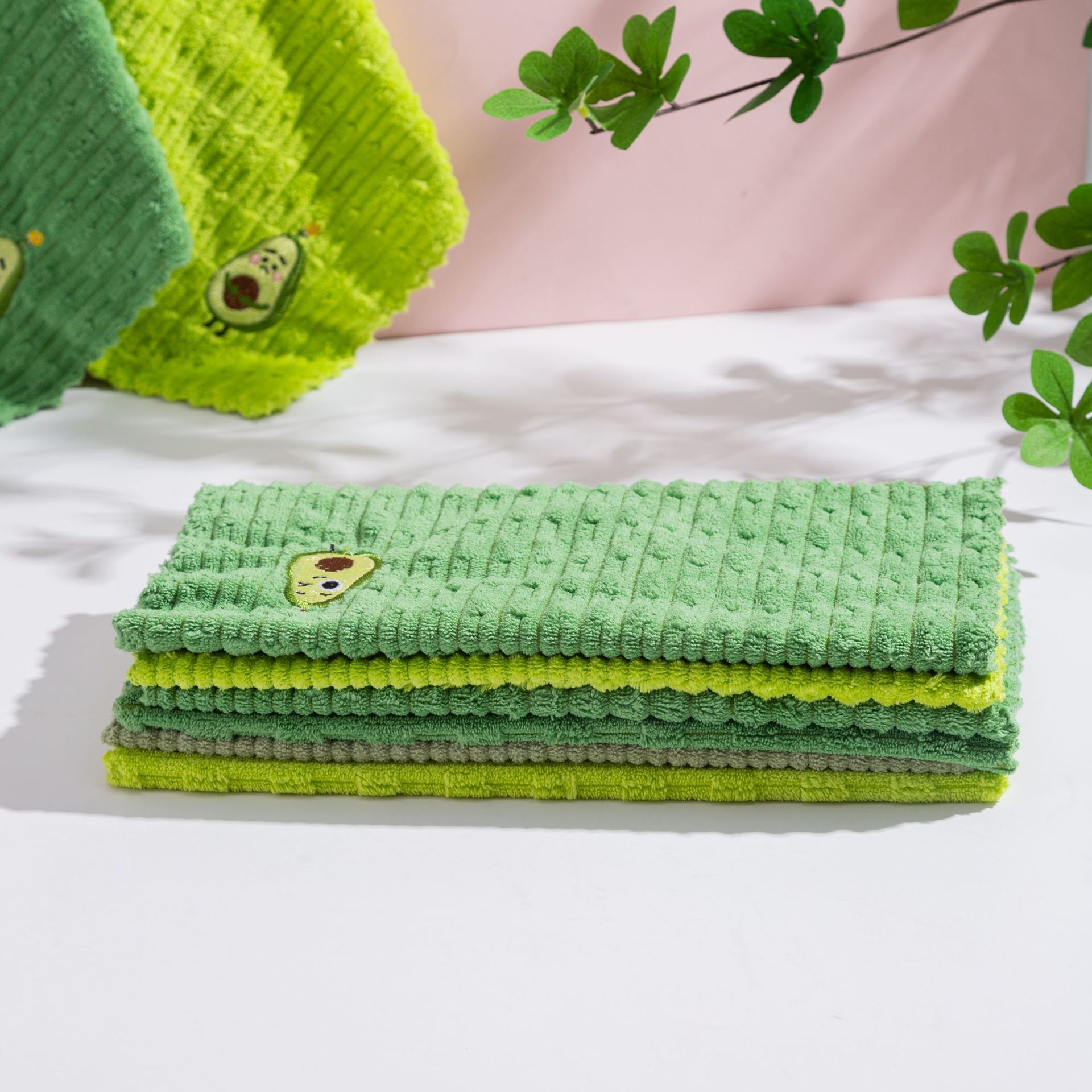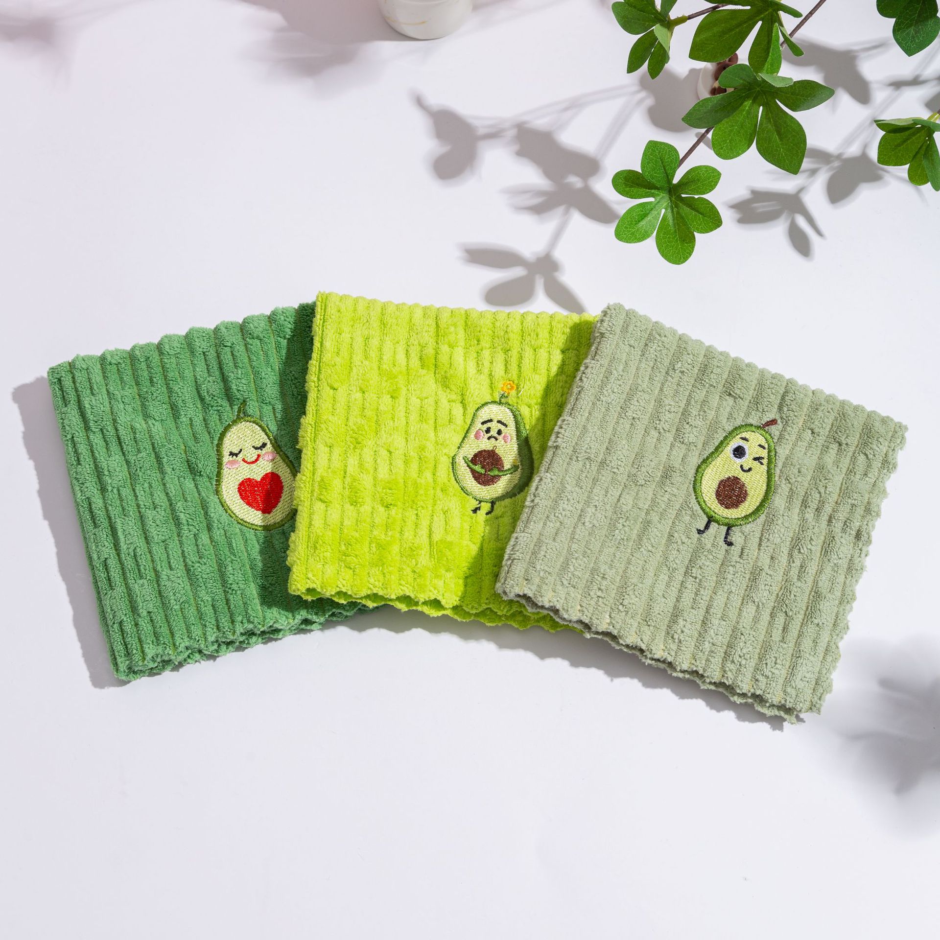 아보카도 사각 수건 새로운 산호 벨벳 걸레 수 놓은 핸드 타올 홈 주방 흡수성 식기 타월 청소 타월스토어 가기