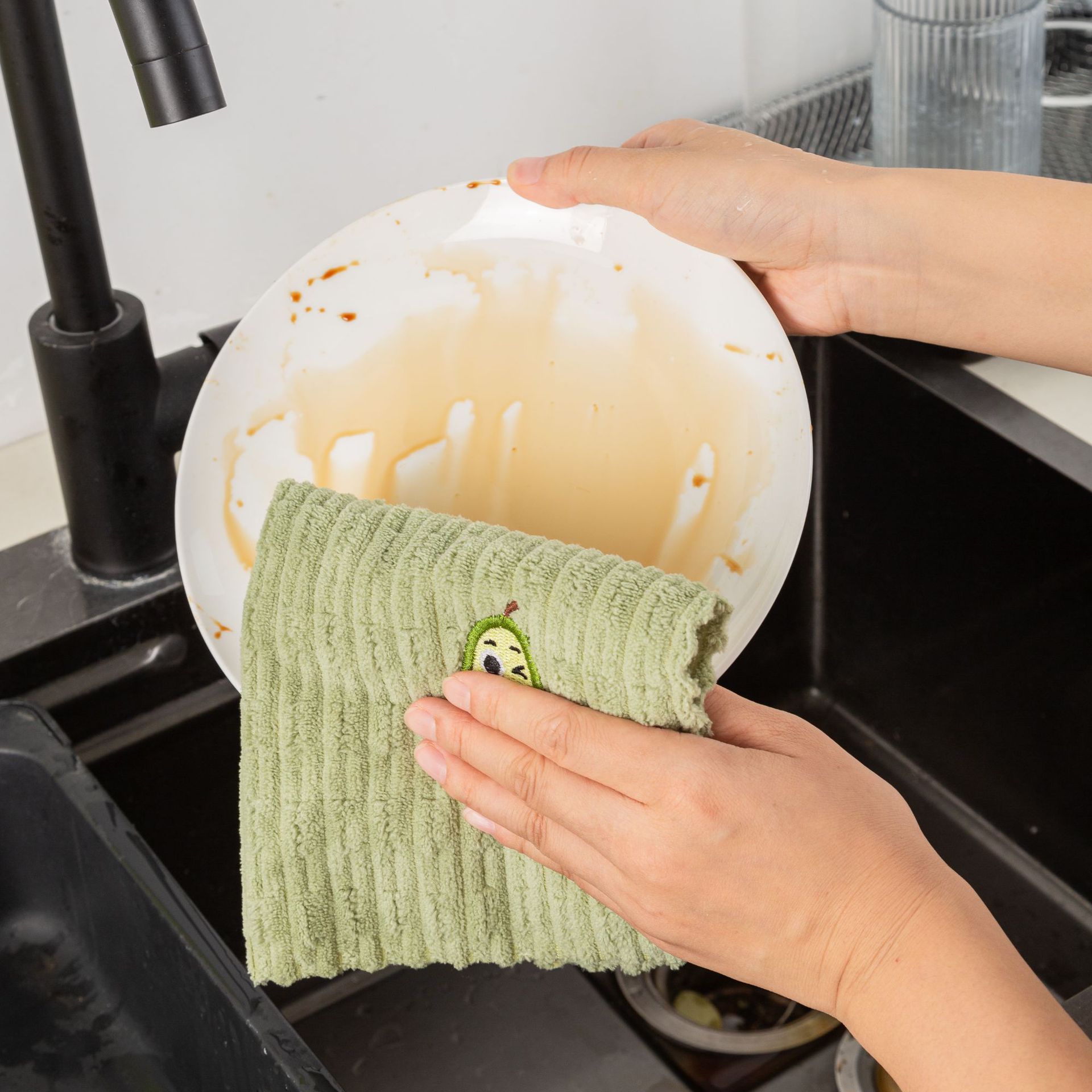 아보카도 사각 수건 새로운 산호 벨벳 걸레 수 놓은 핸드 타올 홈 주방 흡수성 식기 타월 청소 타월