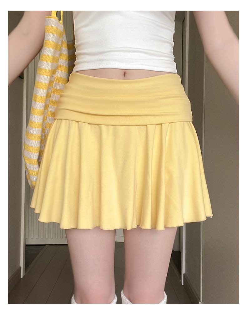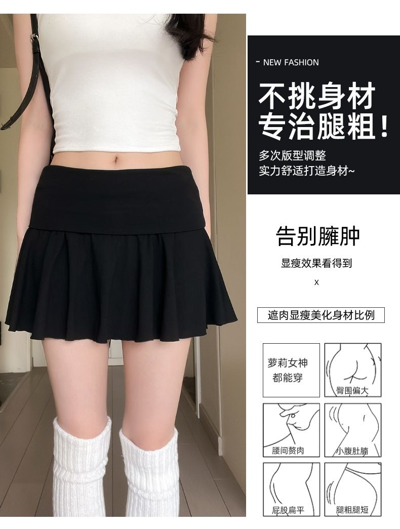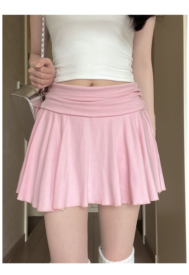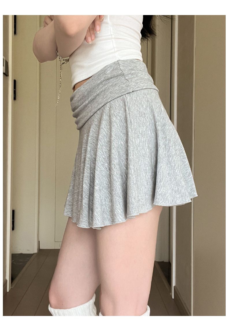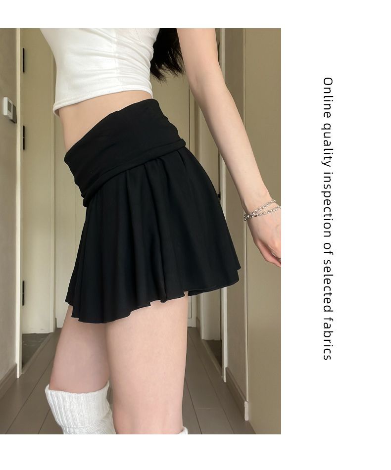 [광저우 원단 260g 1*1 레이온 셀프 커팅] 여성 여름 신작 올 매치 캐주얼 스포츠 플립 허리 스커트스토어 가기