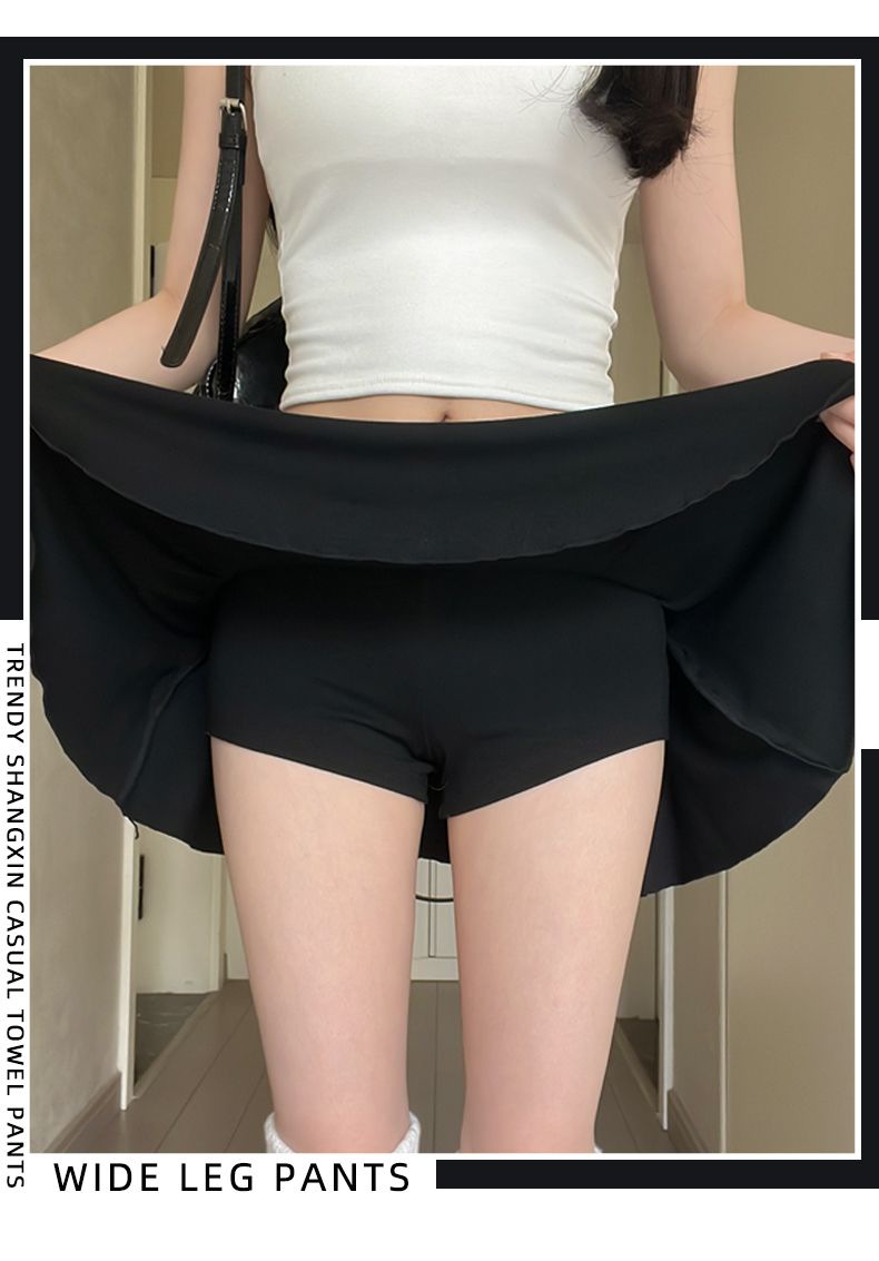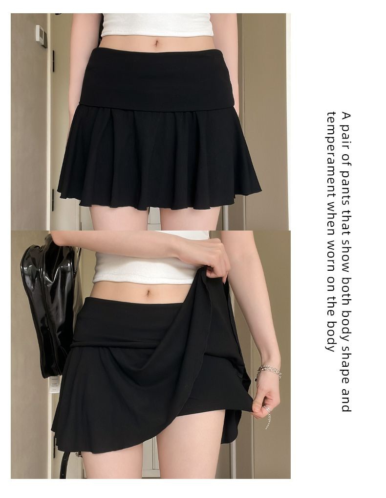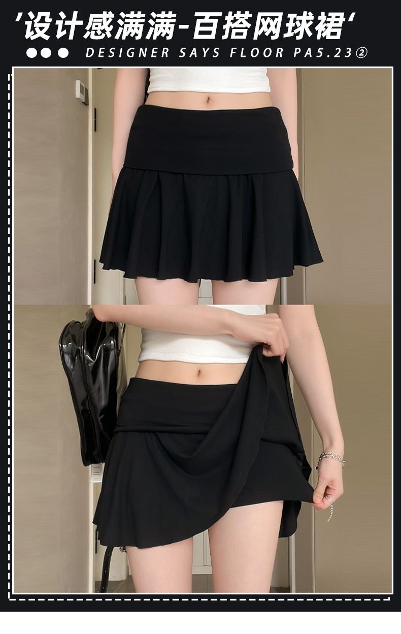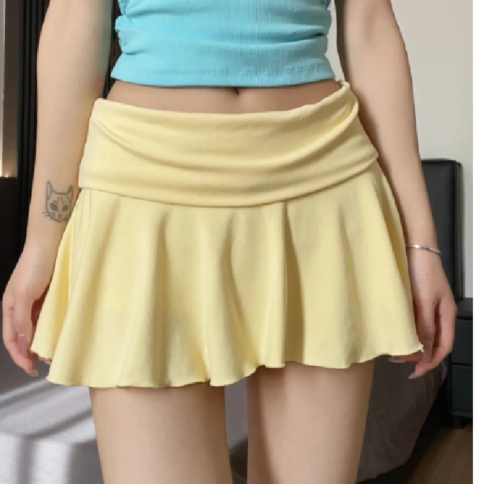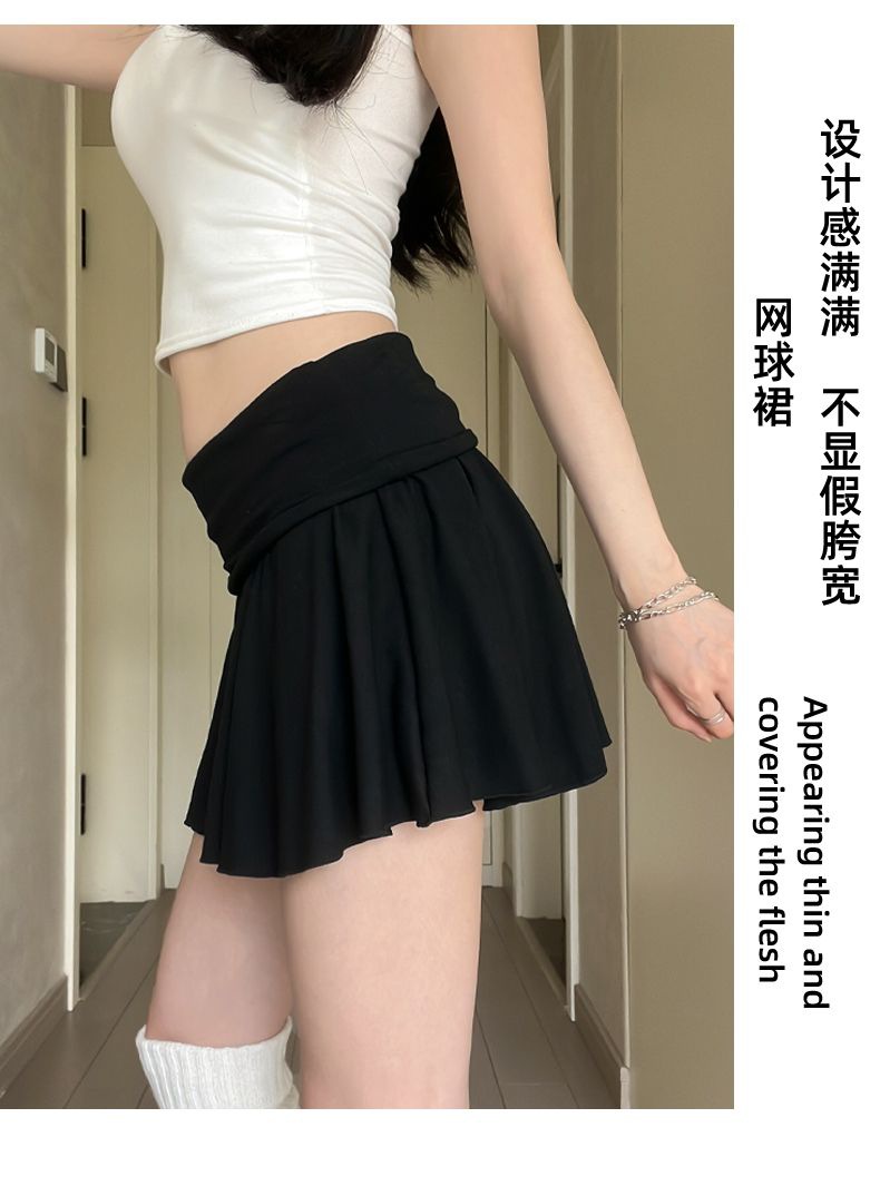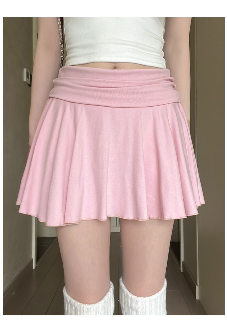 [광저우 원단 260g 1*1 레이온 셀프 커팅] 여성 여름 신작 올 매치 캐주얼 스포츠 플립 허리 스커트스토어 가기