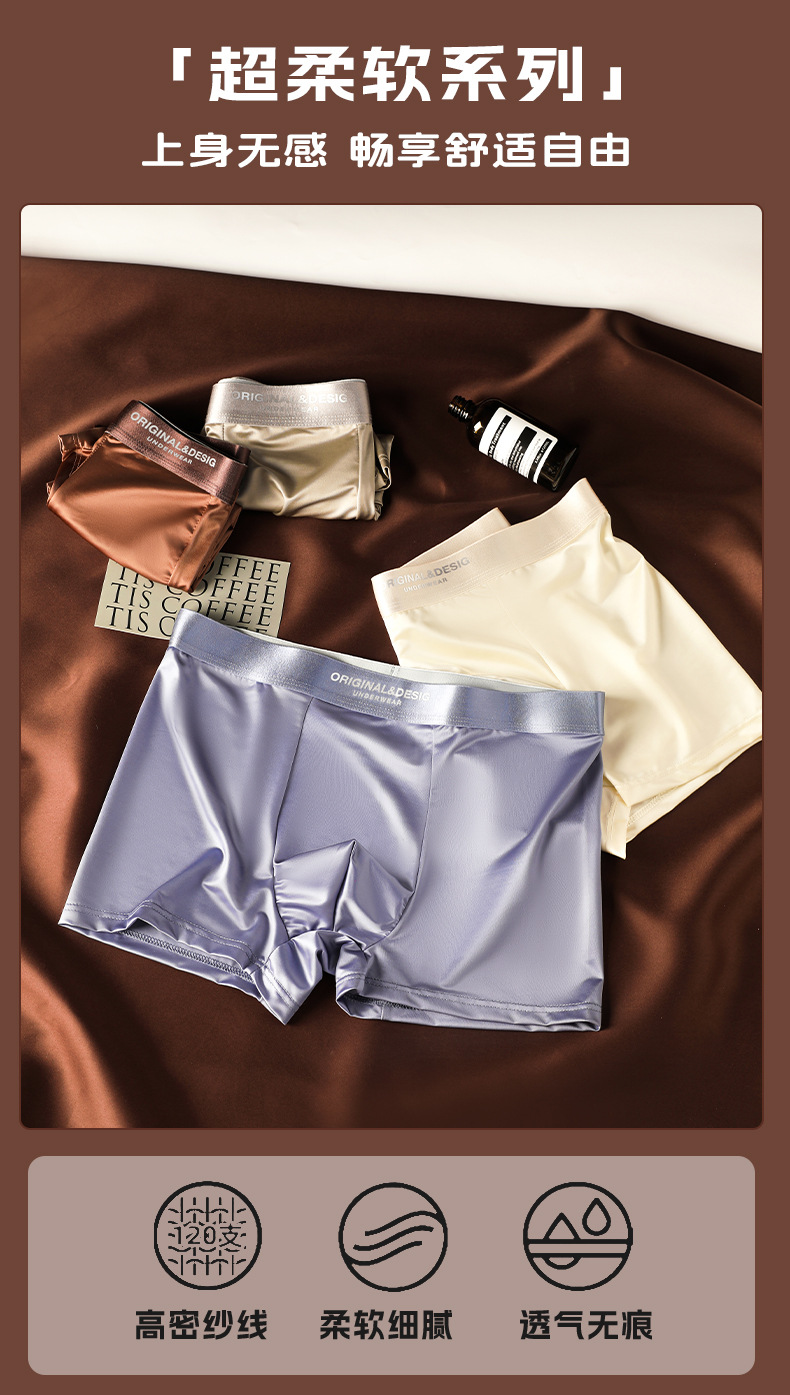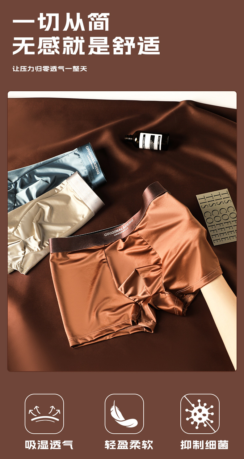 가벼운 고급 새틴 남성용 아이스 실크 속옷 통기성 뽕나무 실크 항균 가랑이 남성용 원활한 복서 반바지스토어 가기