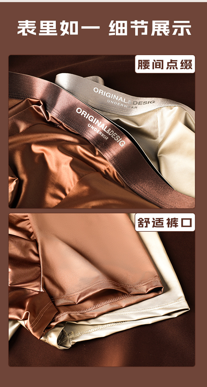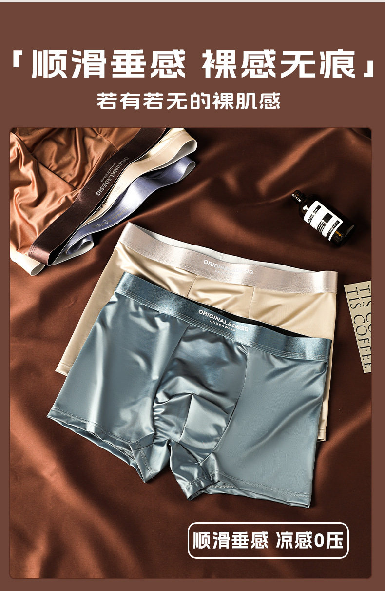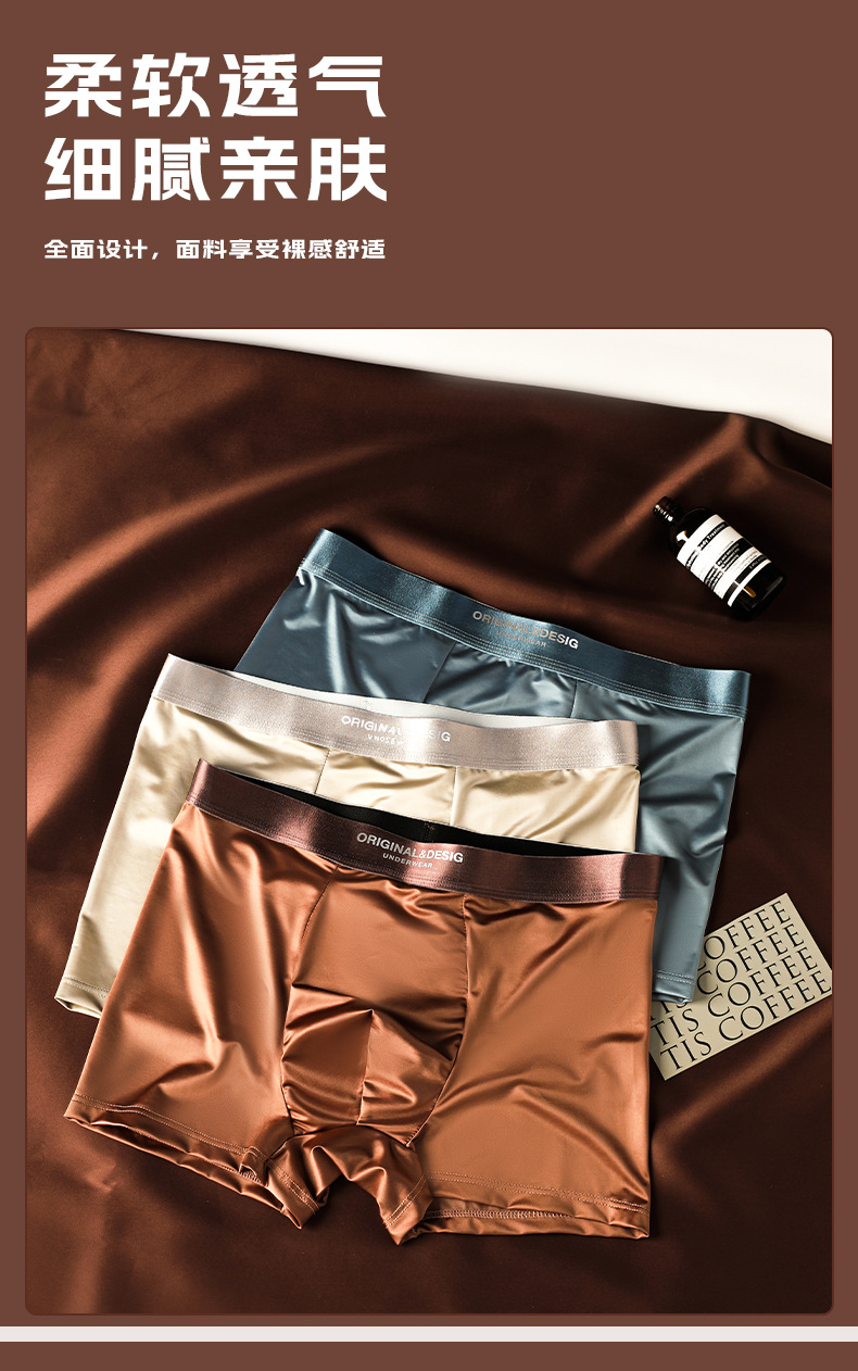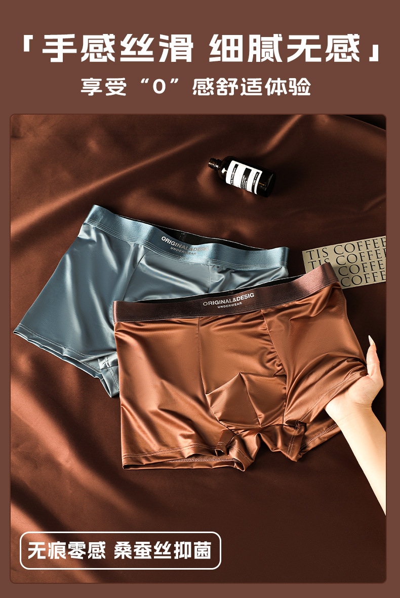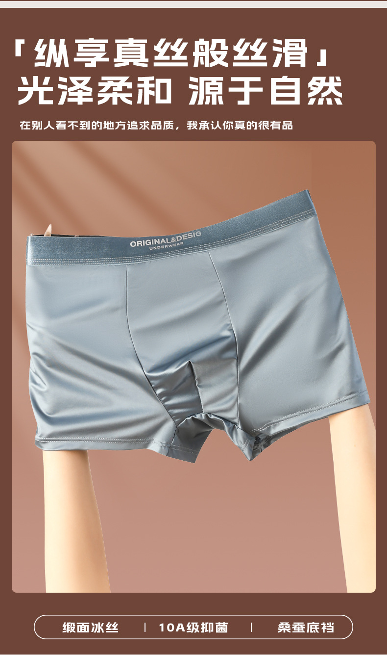 가벼운 고급 새틴 남성용 아이스 실크 속옷 통기성 뽕나무 실크 항균 가랑이 남성용 원활한 복서 반바지