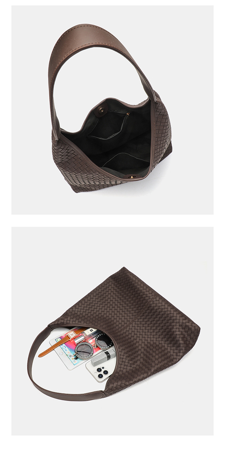 여성용 대용량 우븐 토트 백 2025 가을, 겨울 복고풍 가방 여성용 메일라드 스타일 통근 캐주얼 숄더백
