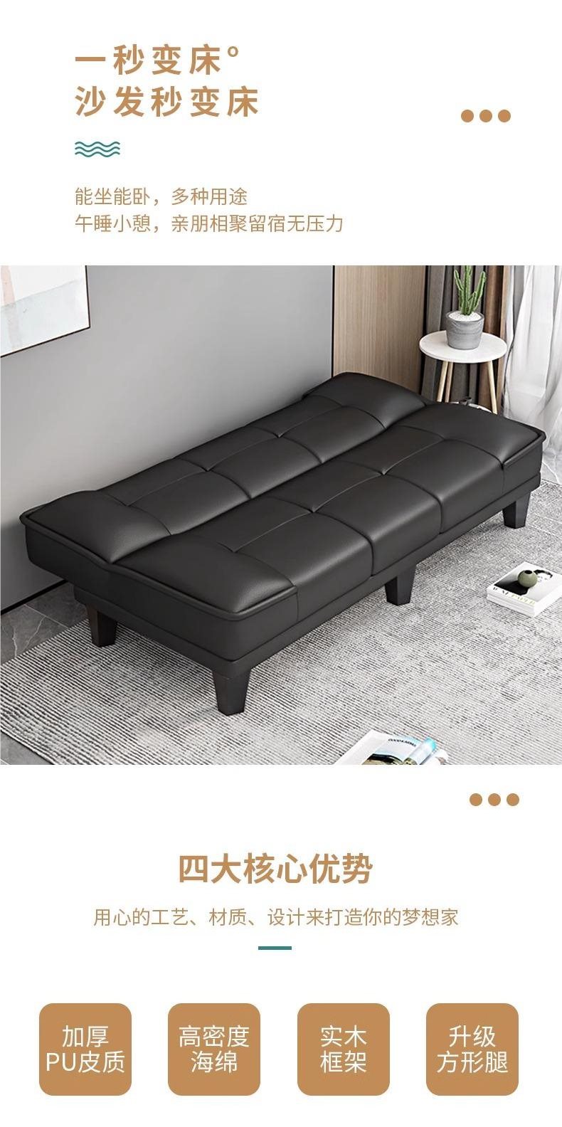 임대 주택 소파 고양이 발톱 가죽 간단한 소파 침대 일체형 이중 용도 작은 아파트 거실 침실 접이식 소파 아파트